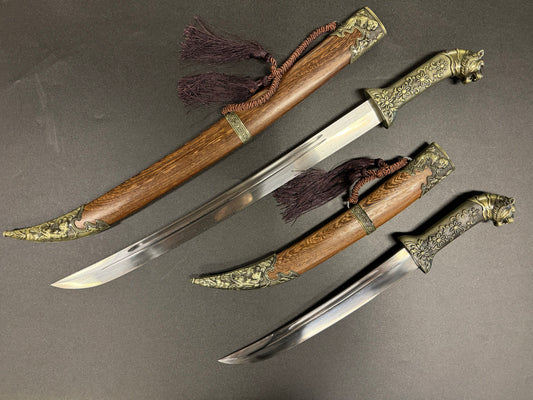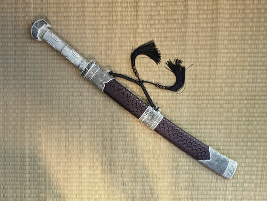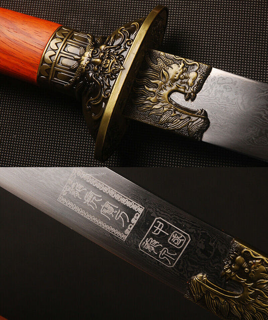 Short Song Dao, Damascus Steel, Dragon and Tigertheme
