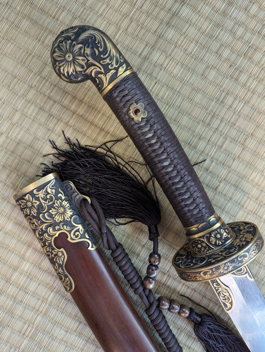 Ming Saber- Chrysanthemum Fittings, Damascus Steel