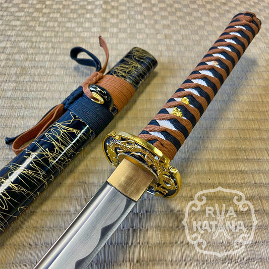 Dragonspring Katana - Black and Tan Dragon - 1060 Steel
