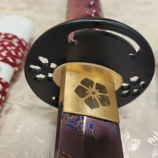 3-Sword Set- Blue & Red Rotary Damascus, Sakura Theme