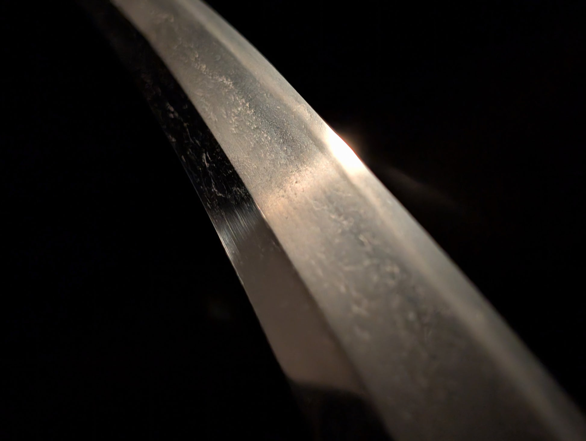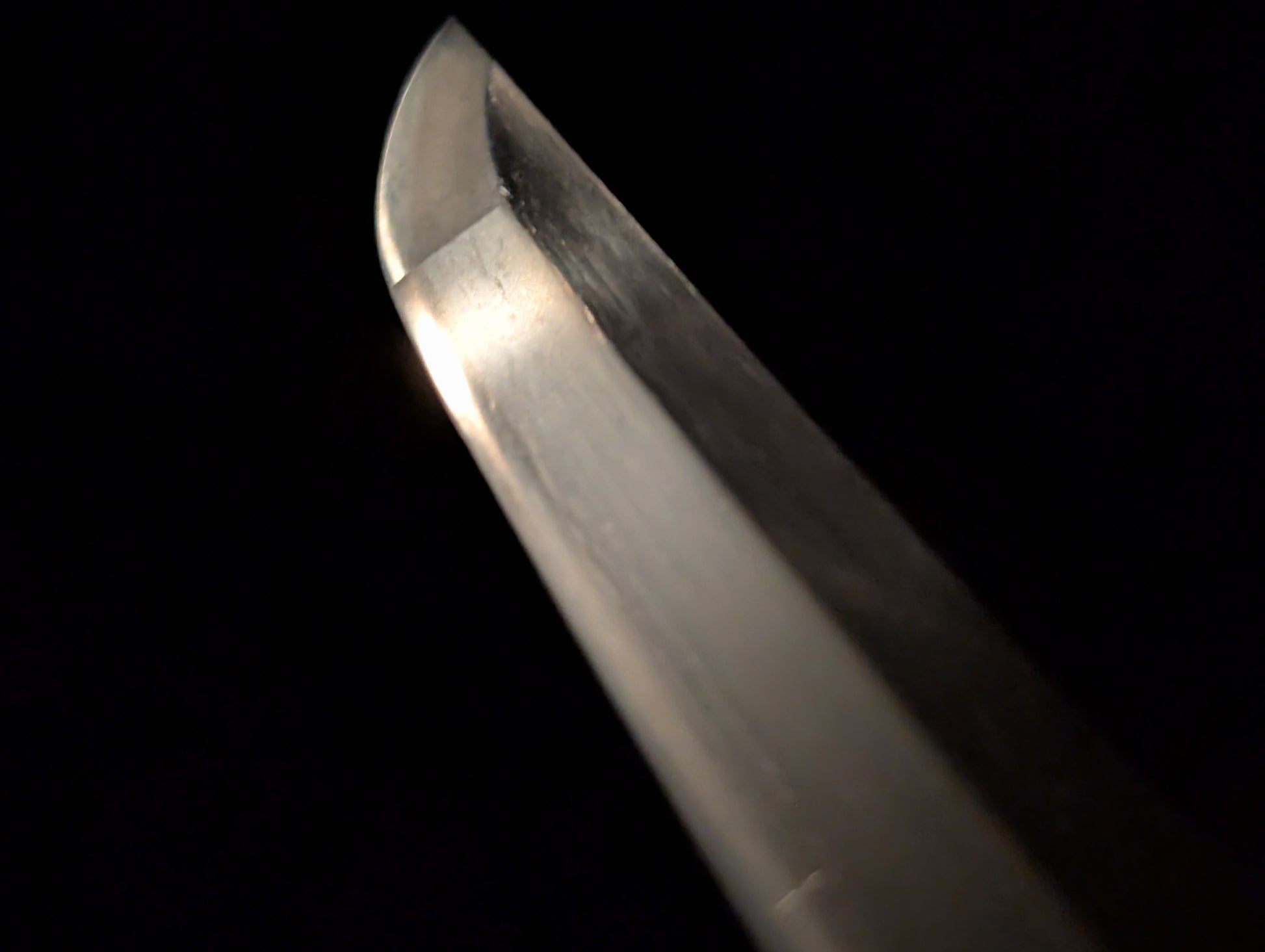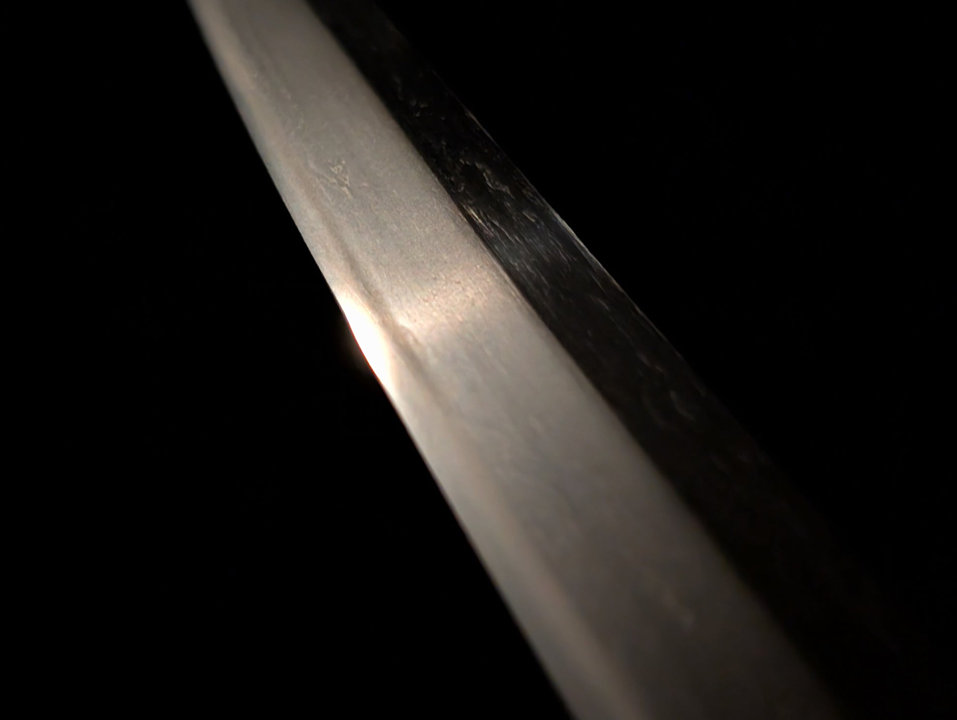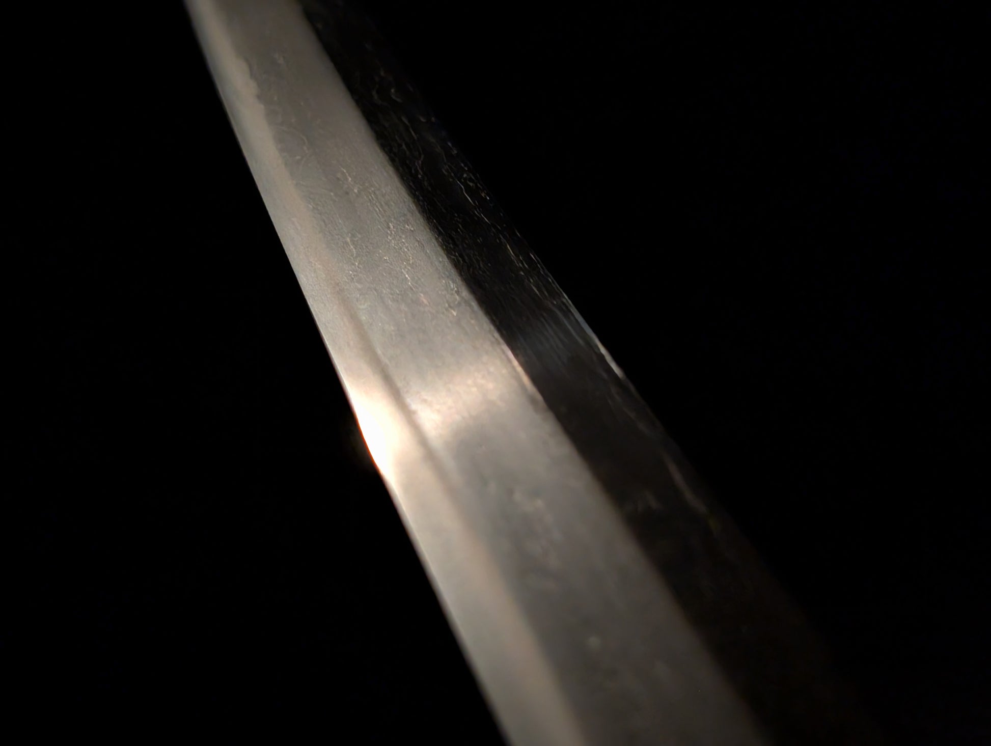 This particular sword was shortened from an event longer blades and has been polished several times, exposing several kitae ware. Still, at 84.1cm cutting edge and 3.1cm curve, it has an imposing or presence.
