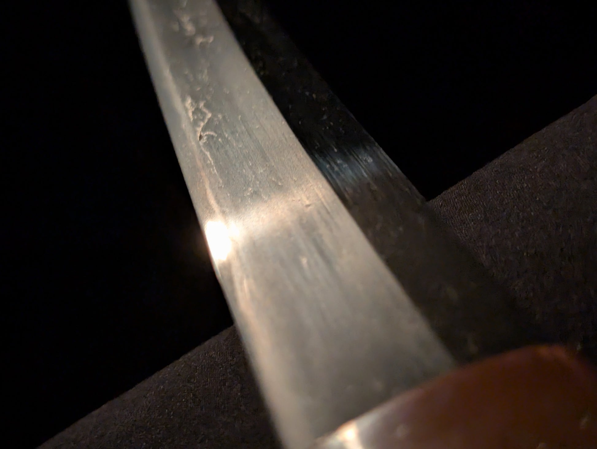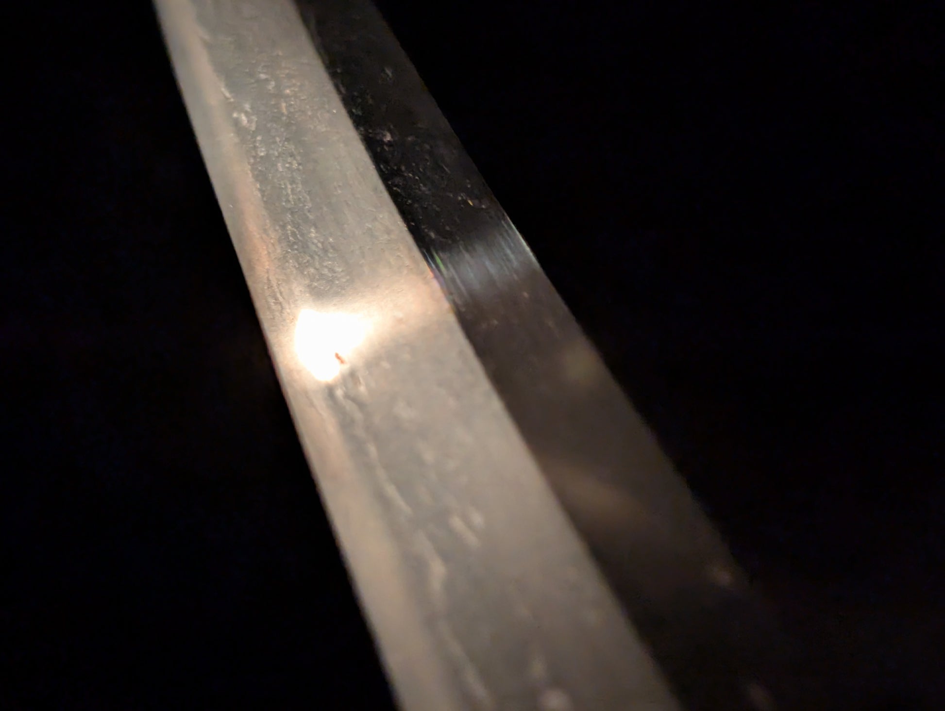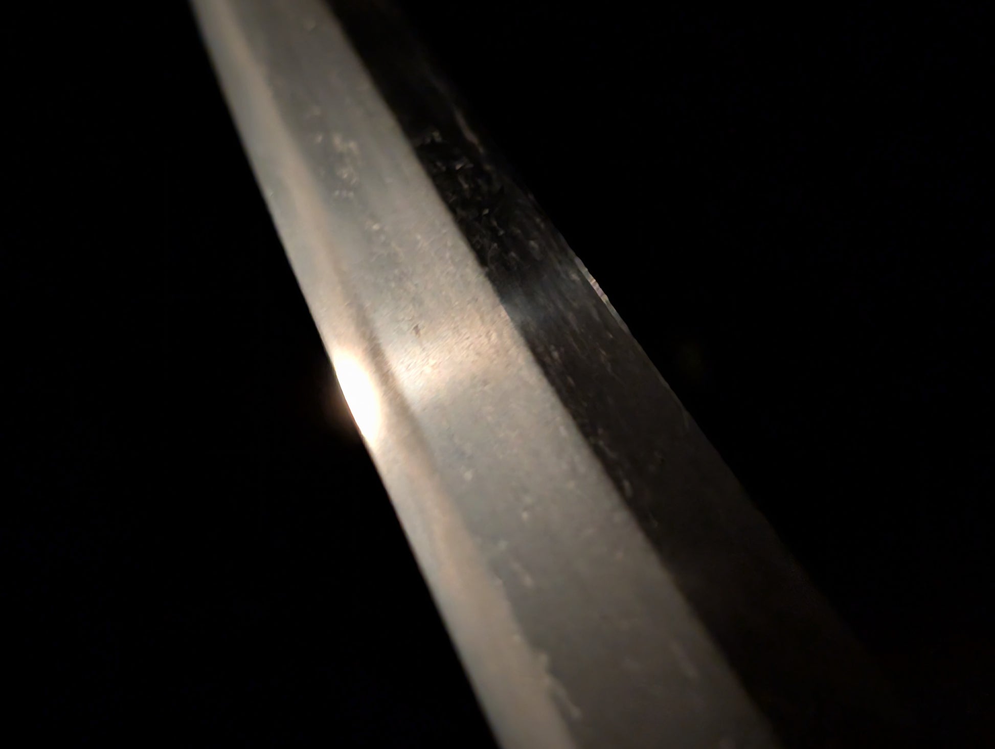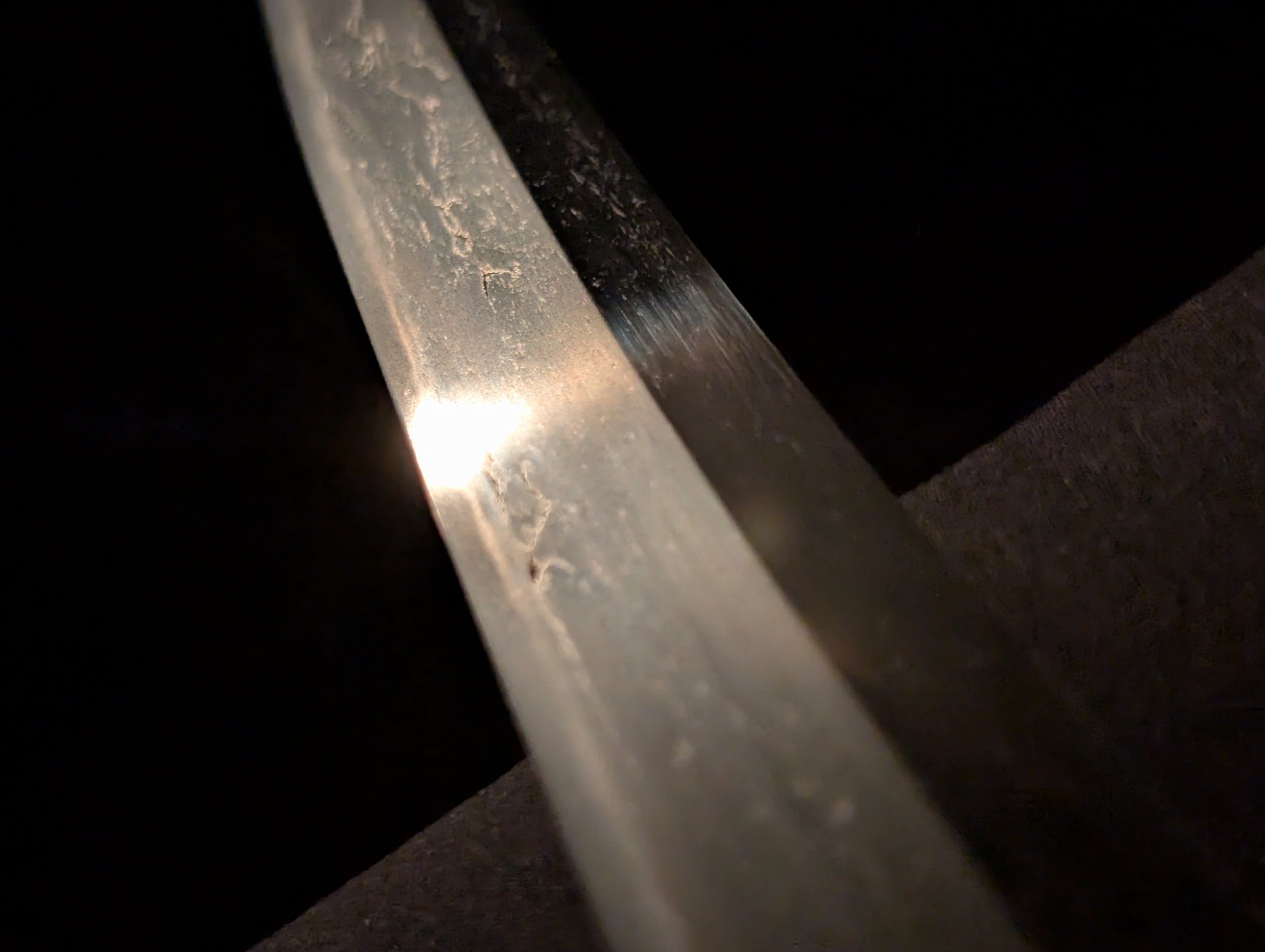 This particular sword was shortened from an event longer blades and has been polished several times, exposing several kitae ware. Still, at 84.1cm cutting edge and 3.1cm curve, it has an imposing or presence.