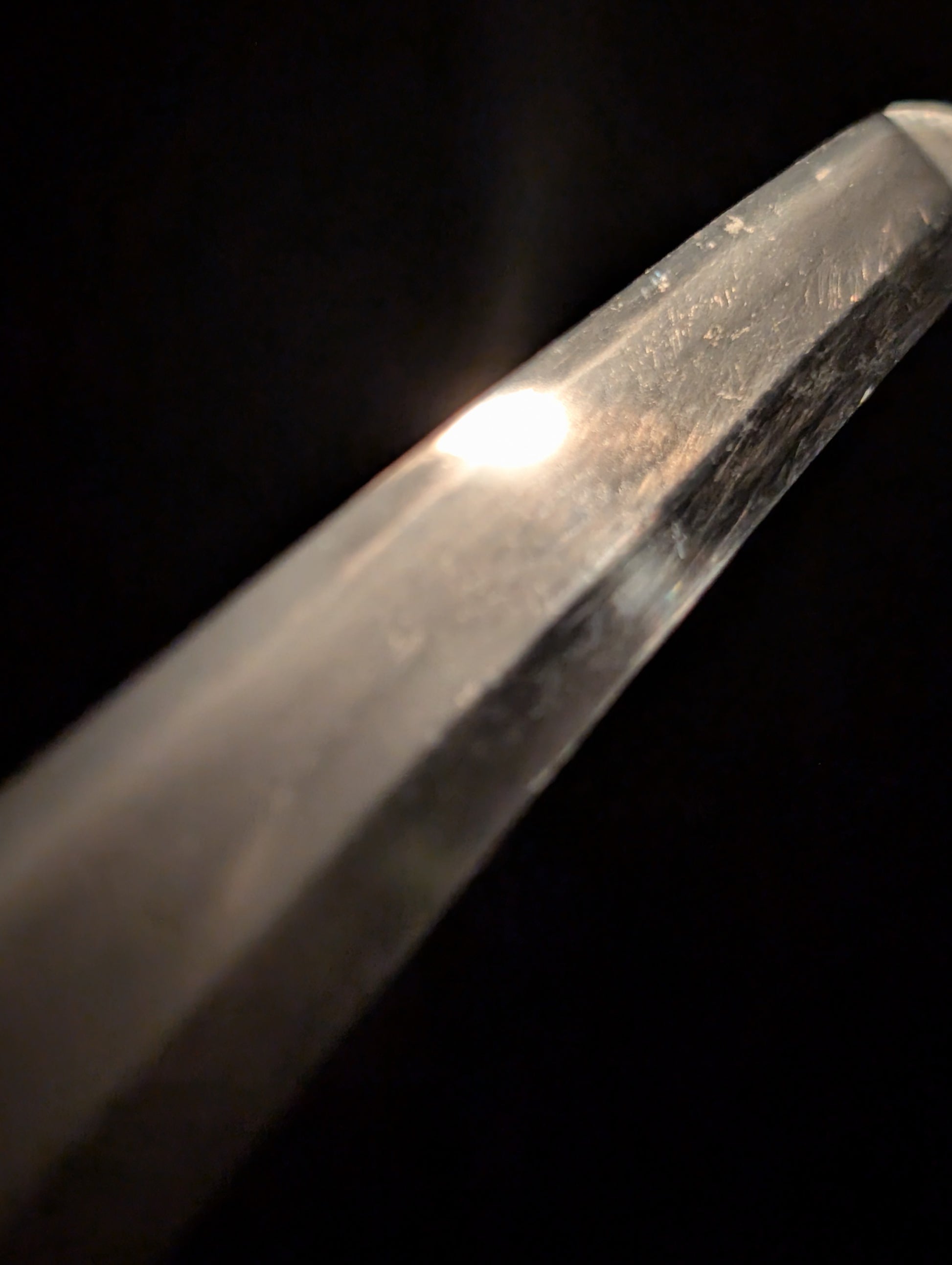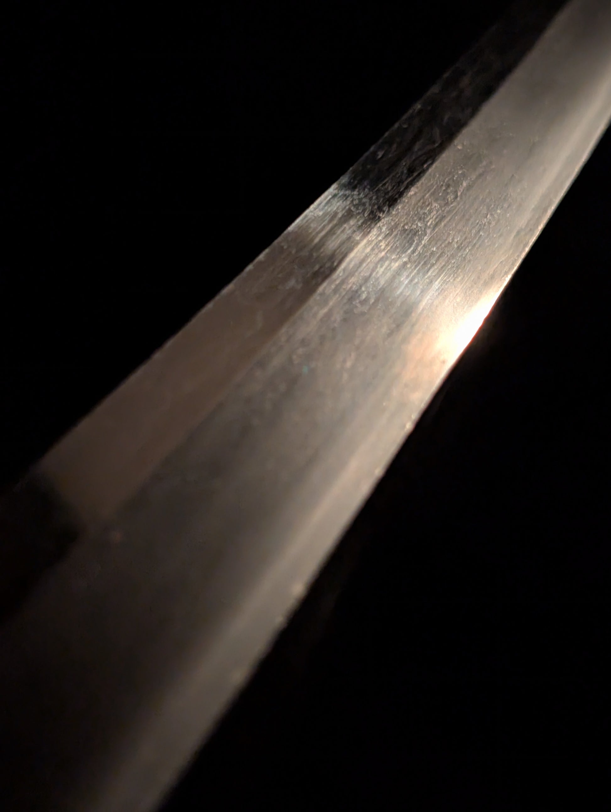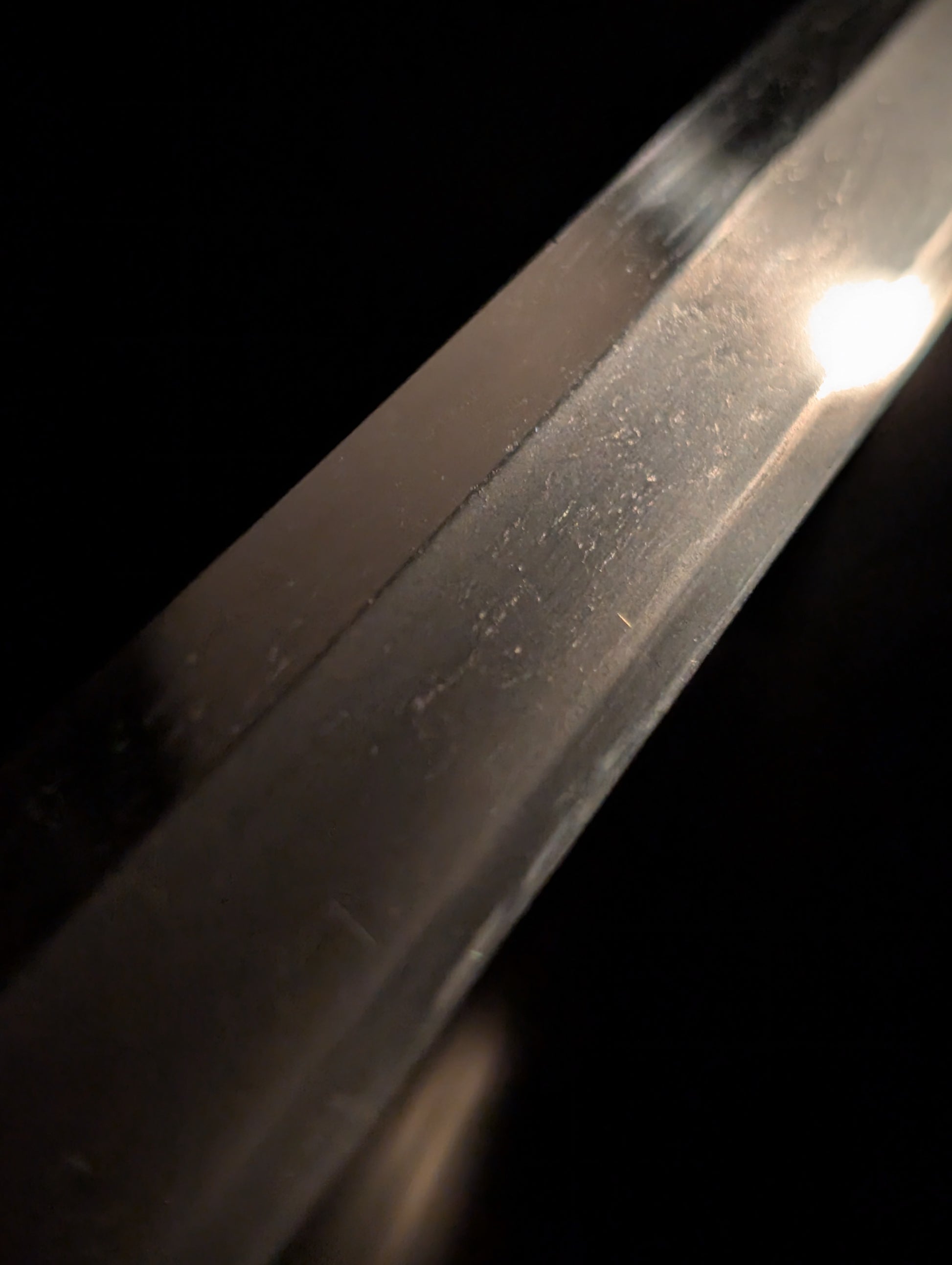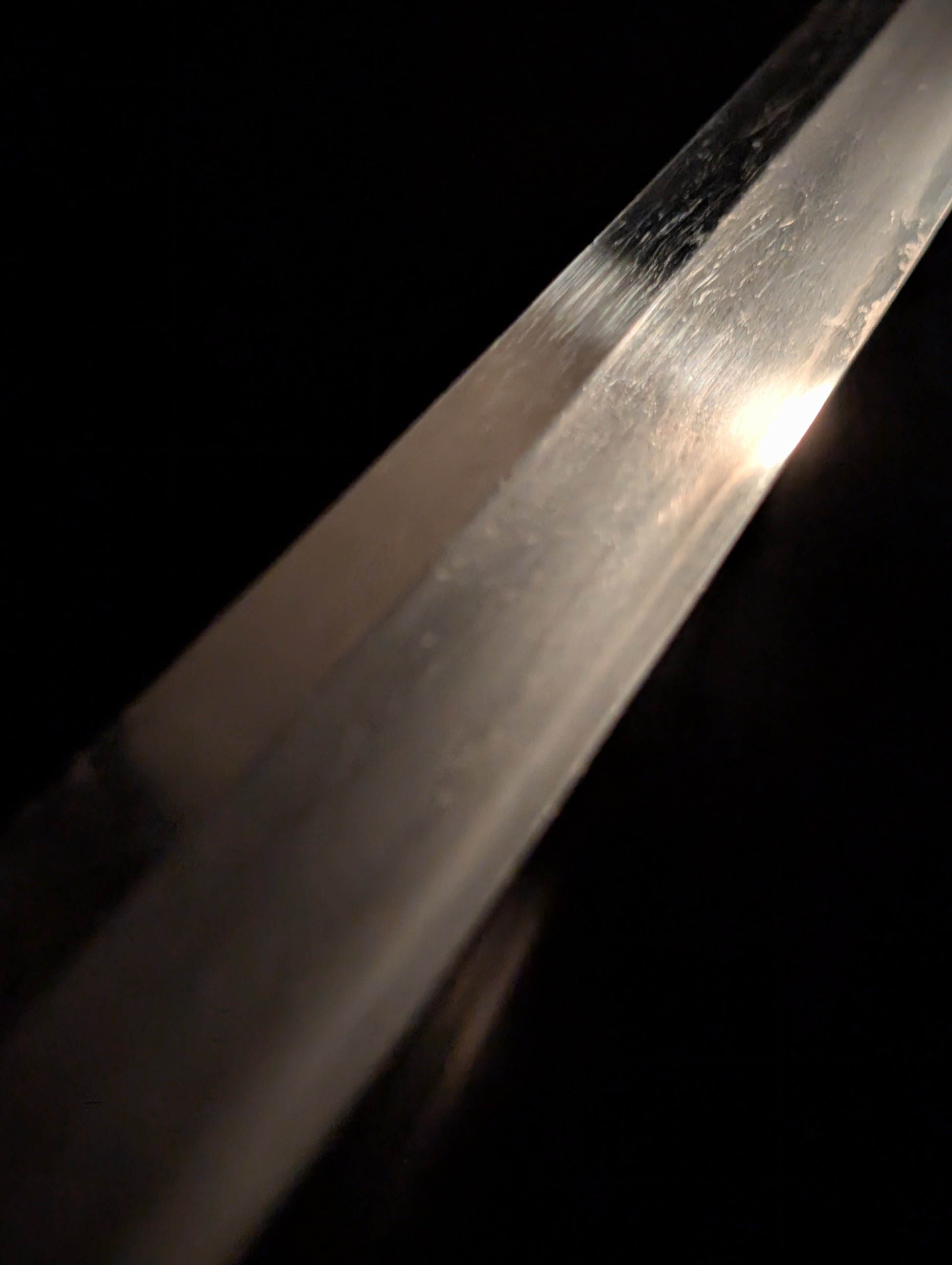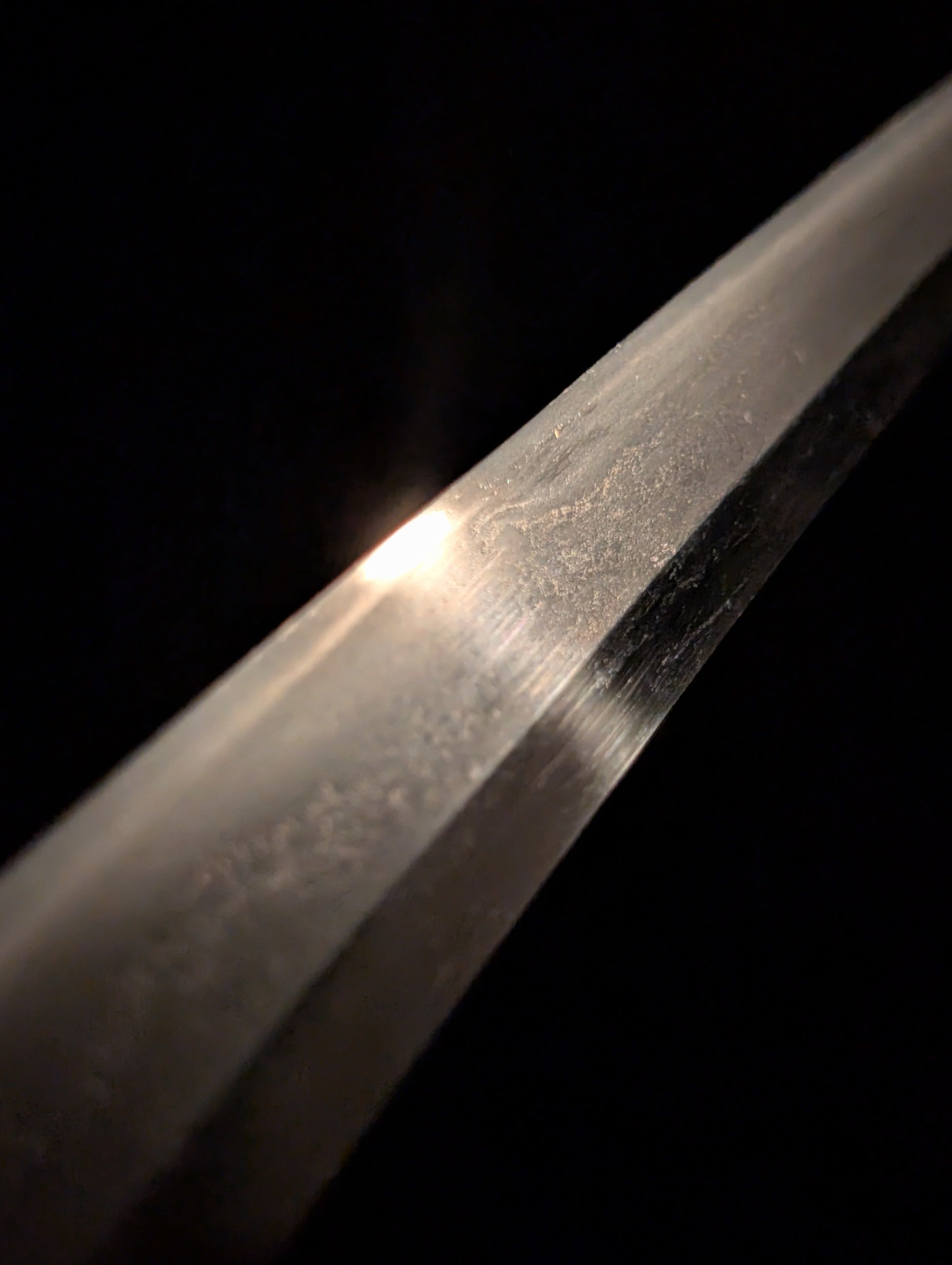 With five mekugi holes in the nakago, this late Muromachi katana has worn man different fittings ove its five centuries.