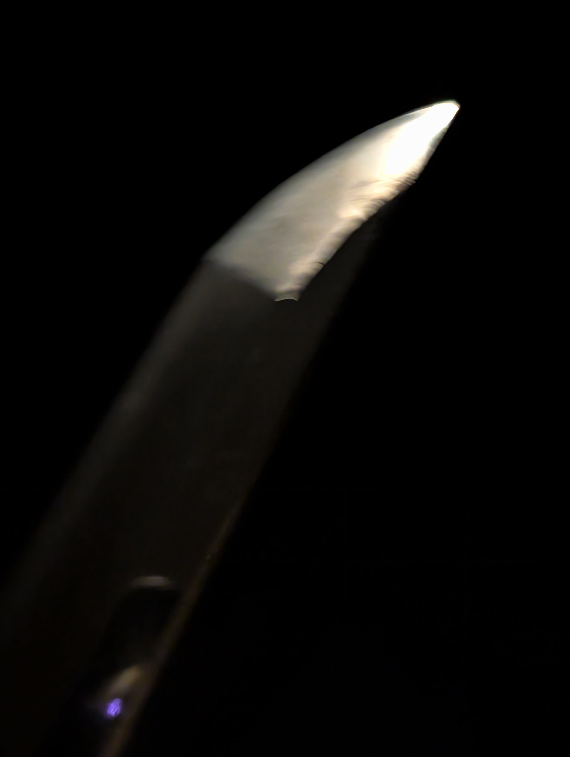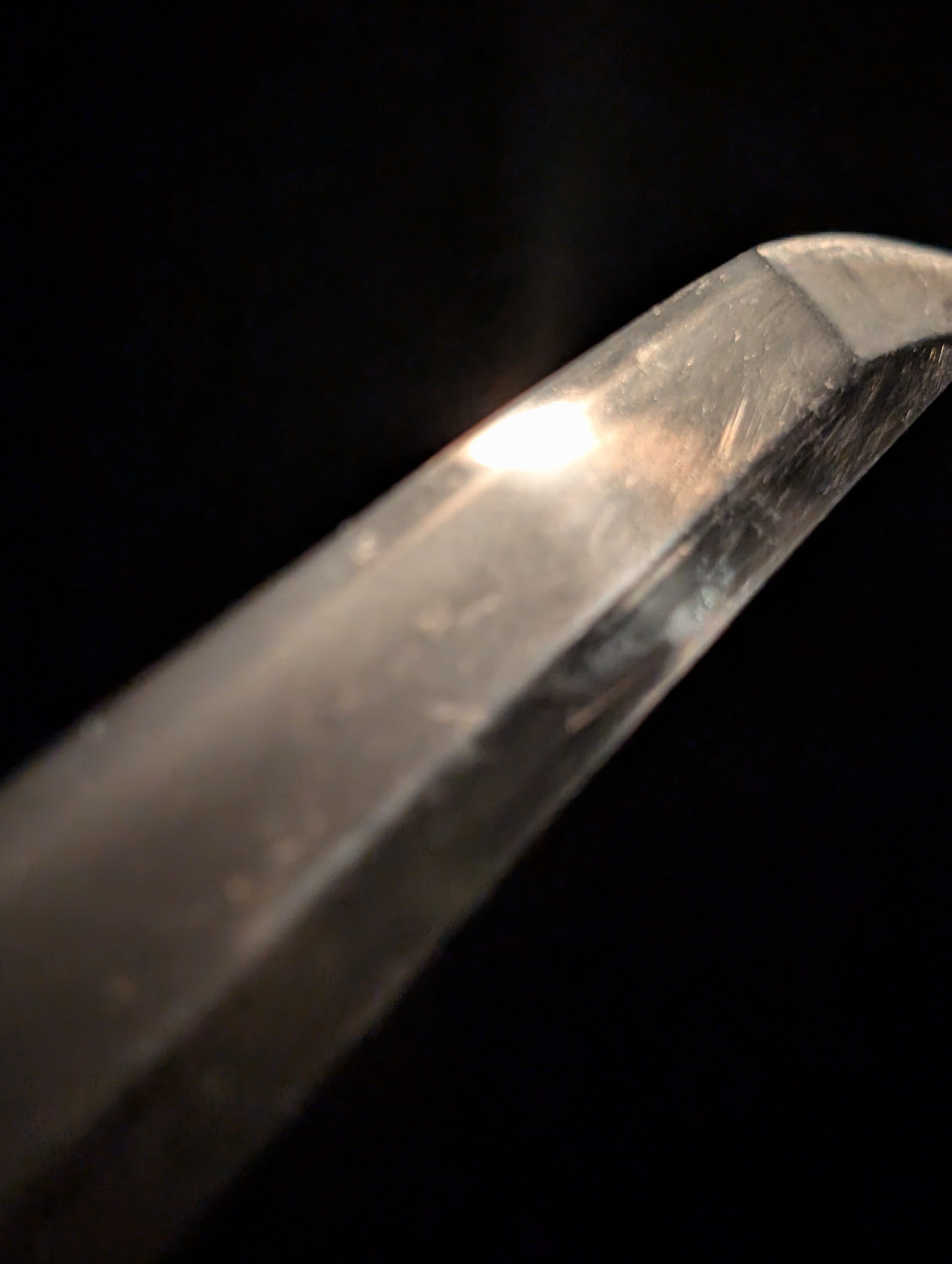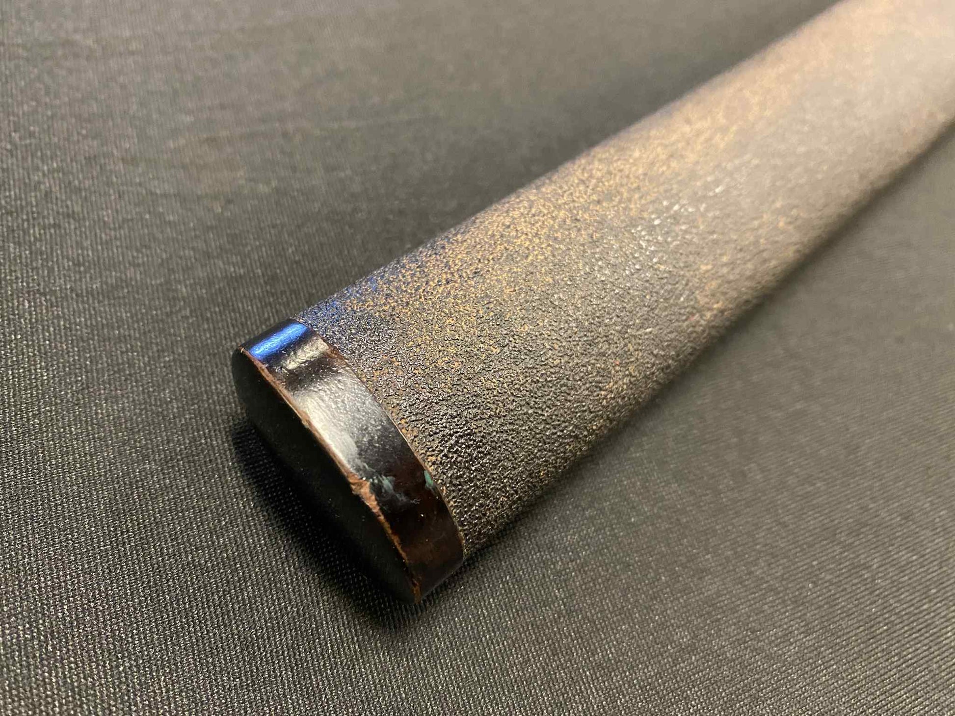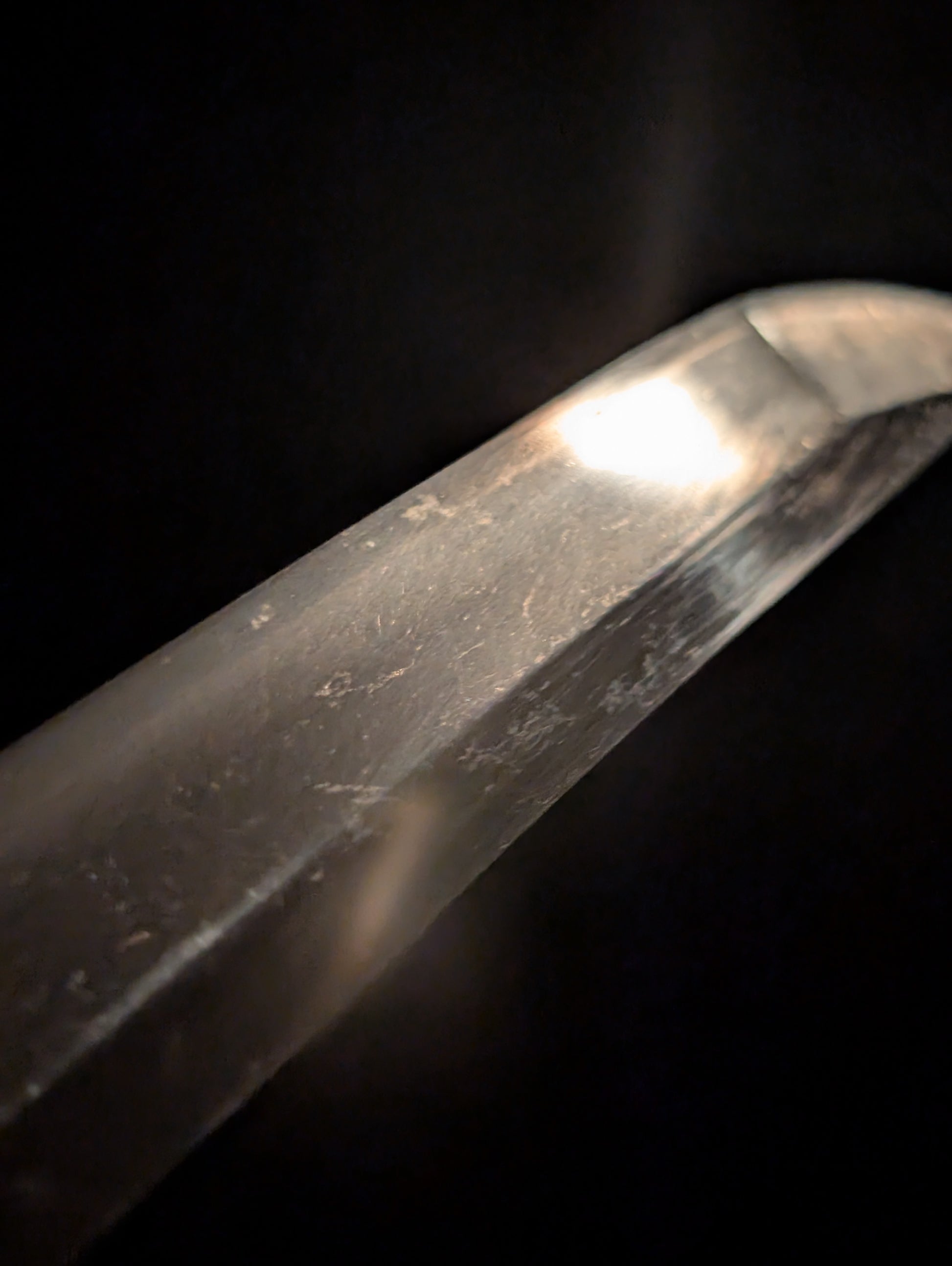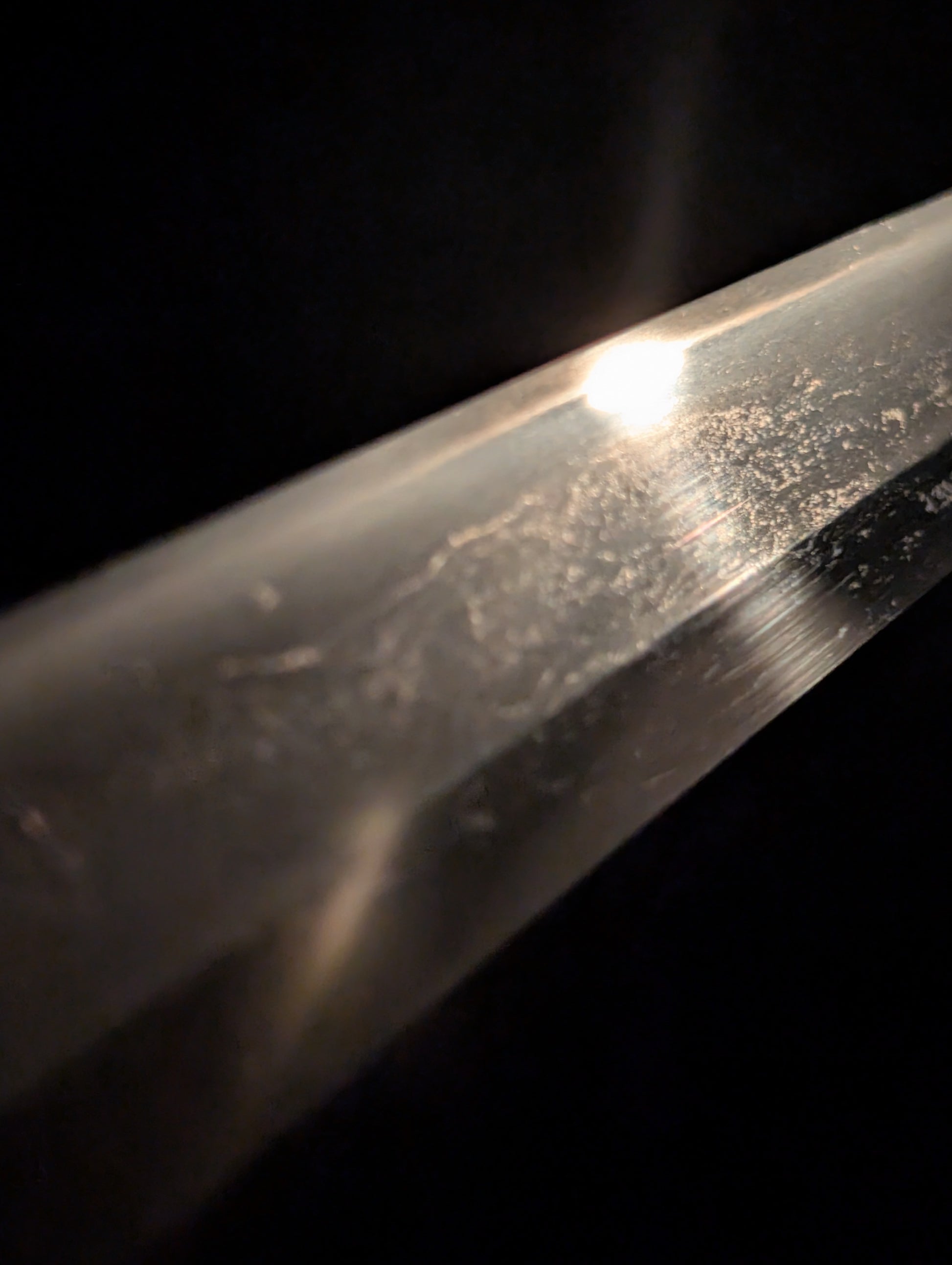 With five mekugi holes in the nakago, this late Muromachi katana has worn man different fittings ove its five centuries.