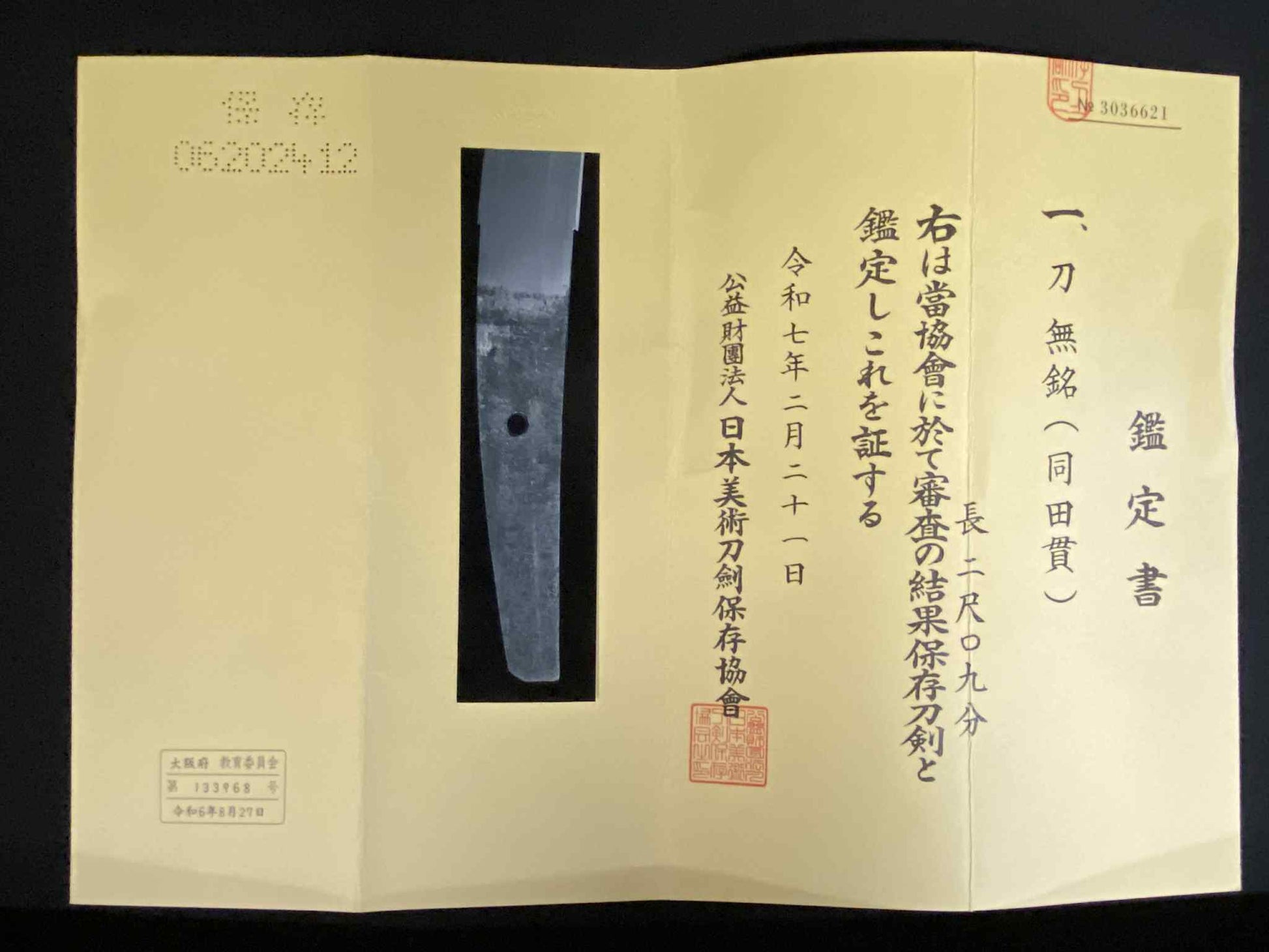 This Katateichi one-handed fighting sword is attributed by the NBTHK to the Dotanuki school, made famous by the hit TV series Lone Wolf and Cub.