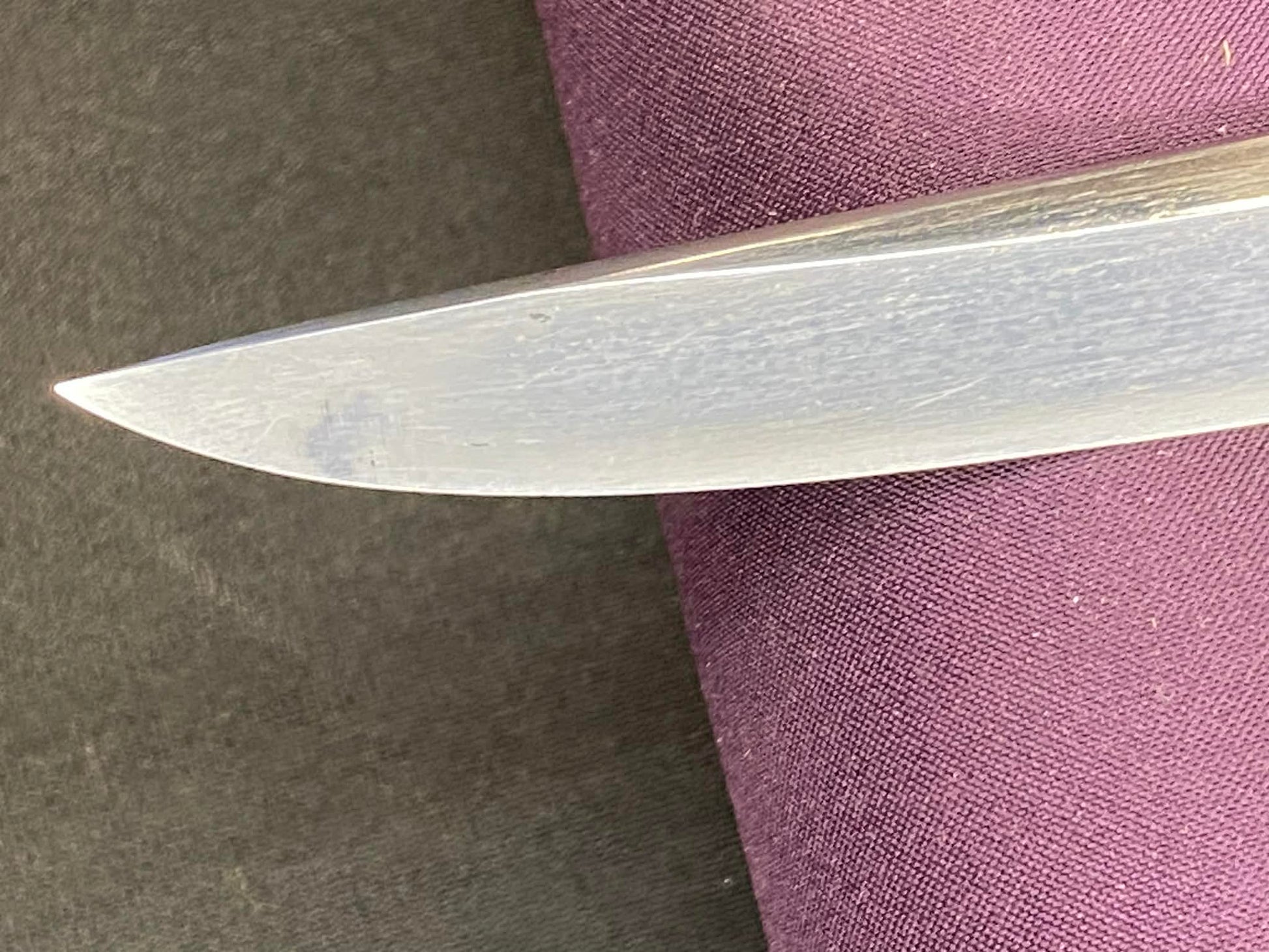 Kikuchi Yari are narrow, thick blades usually made by the Enju School in Higo Japan. Their supposed origin comes from a mid-1300s battle between the Kikuchi clan and the Ashikaga Clan. The Kikuchi ran out of arrows, so their Lord ordered them to mount their tanto to the end of bamboo polls. Their force of 1000 samurai was able to defeat an army three times their size.