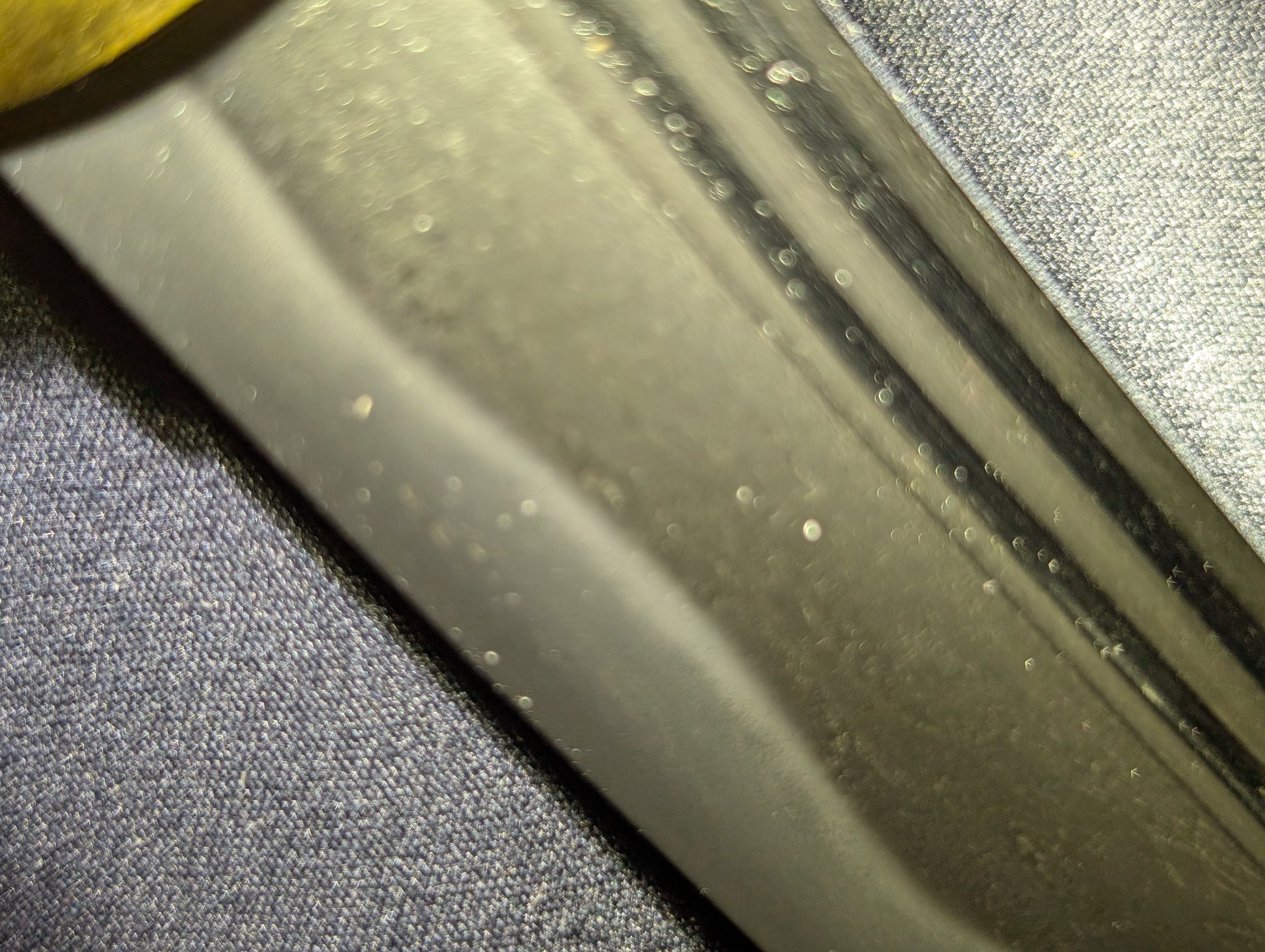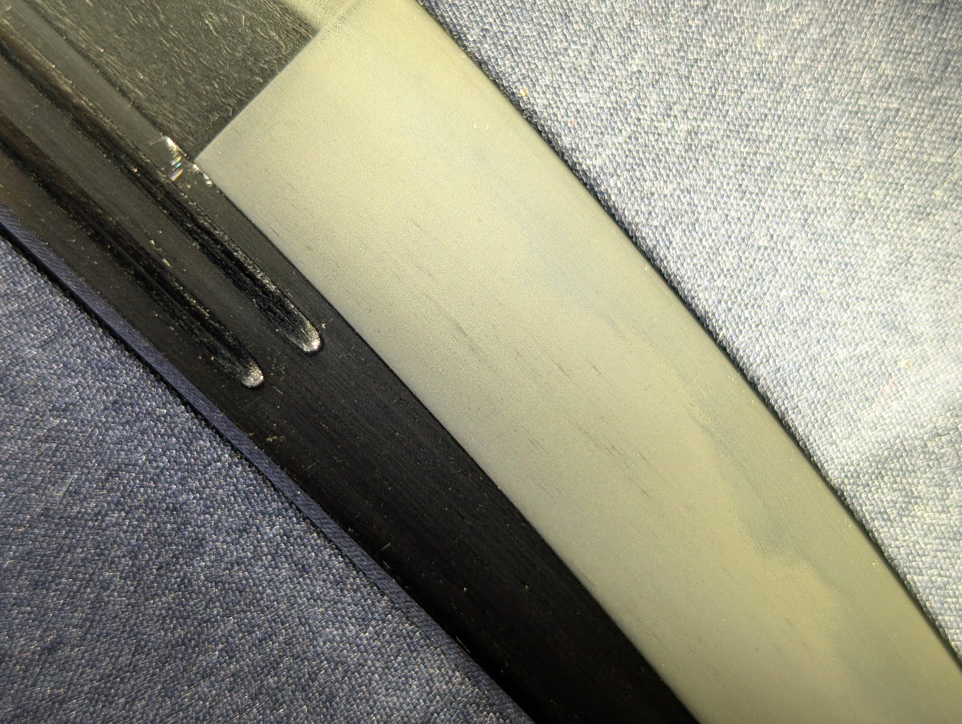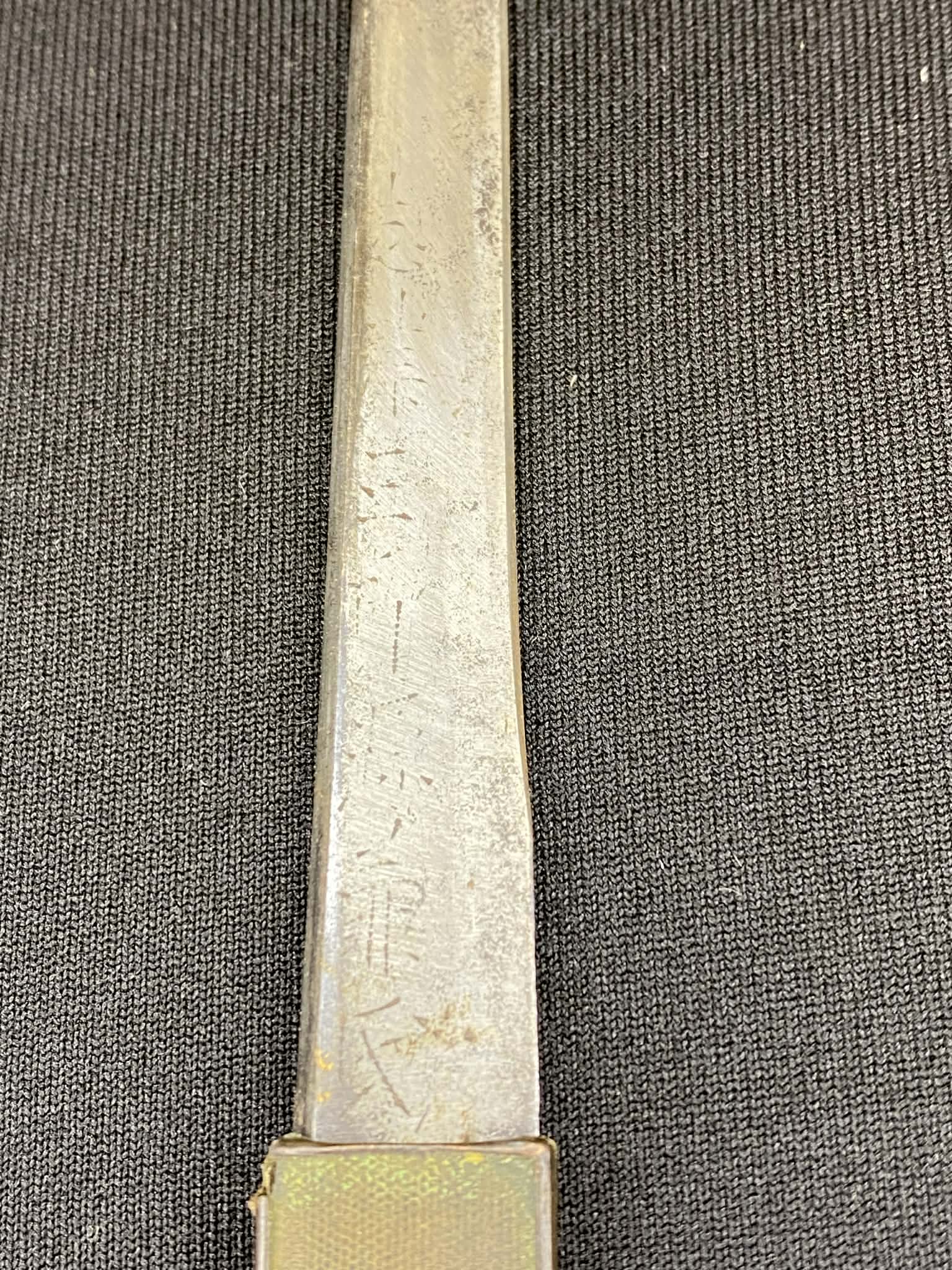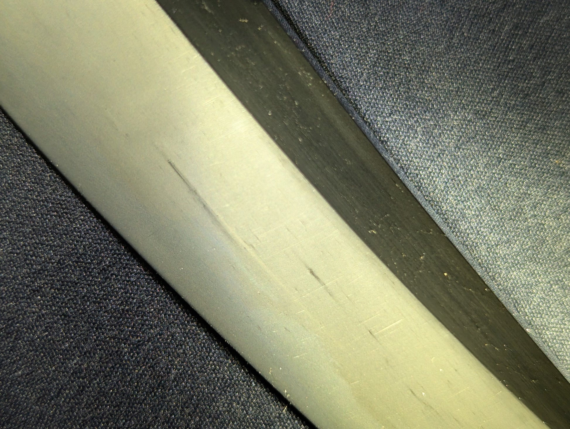 This Osoraku Tanto is signed Soshu Ju Tsunahiro. There are seventeen generations with this name, starting in the 1500s in the lineage of Masamune. We are unclear what generation this is, though it looks to have been made during the late Edo period.