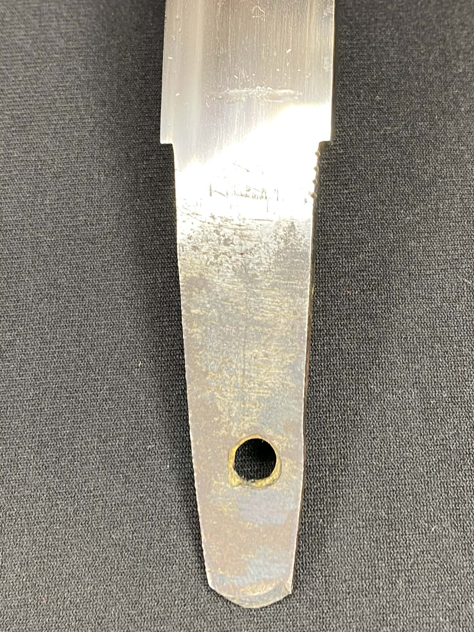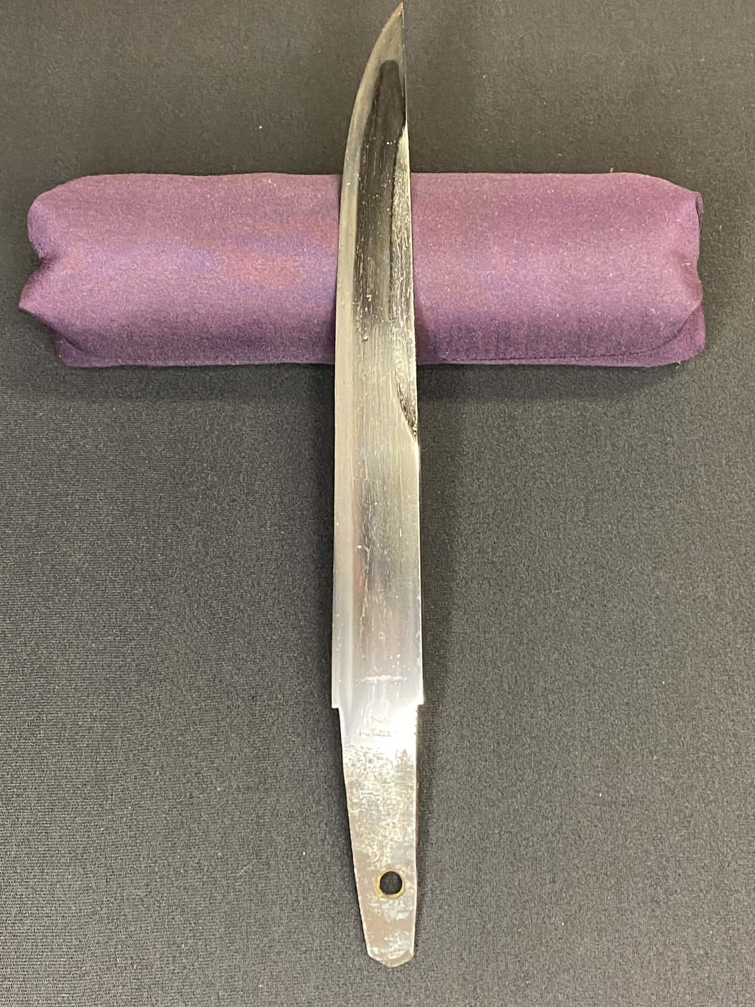 This unokubi tanto looks to have been forged in the lateEdo period. It is mounted in Kaiken fittings