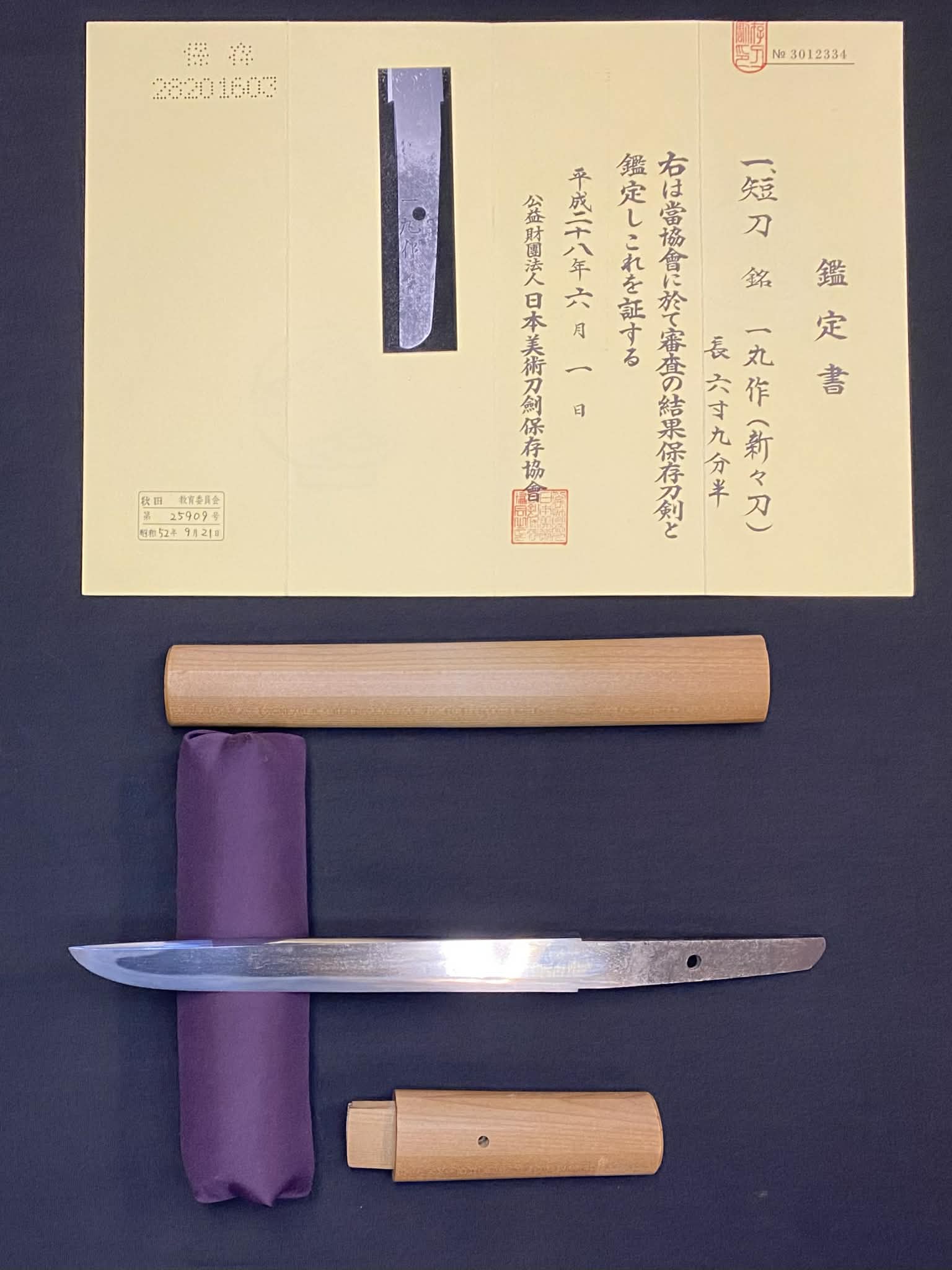 This hirazukuri tanto is signed Ichimaru Saku, and is certified by the NBTHK as a shinshinto sword.