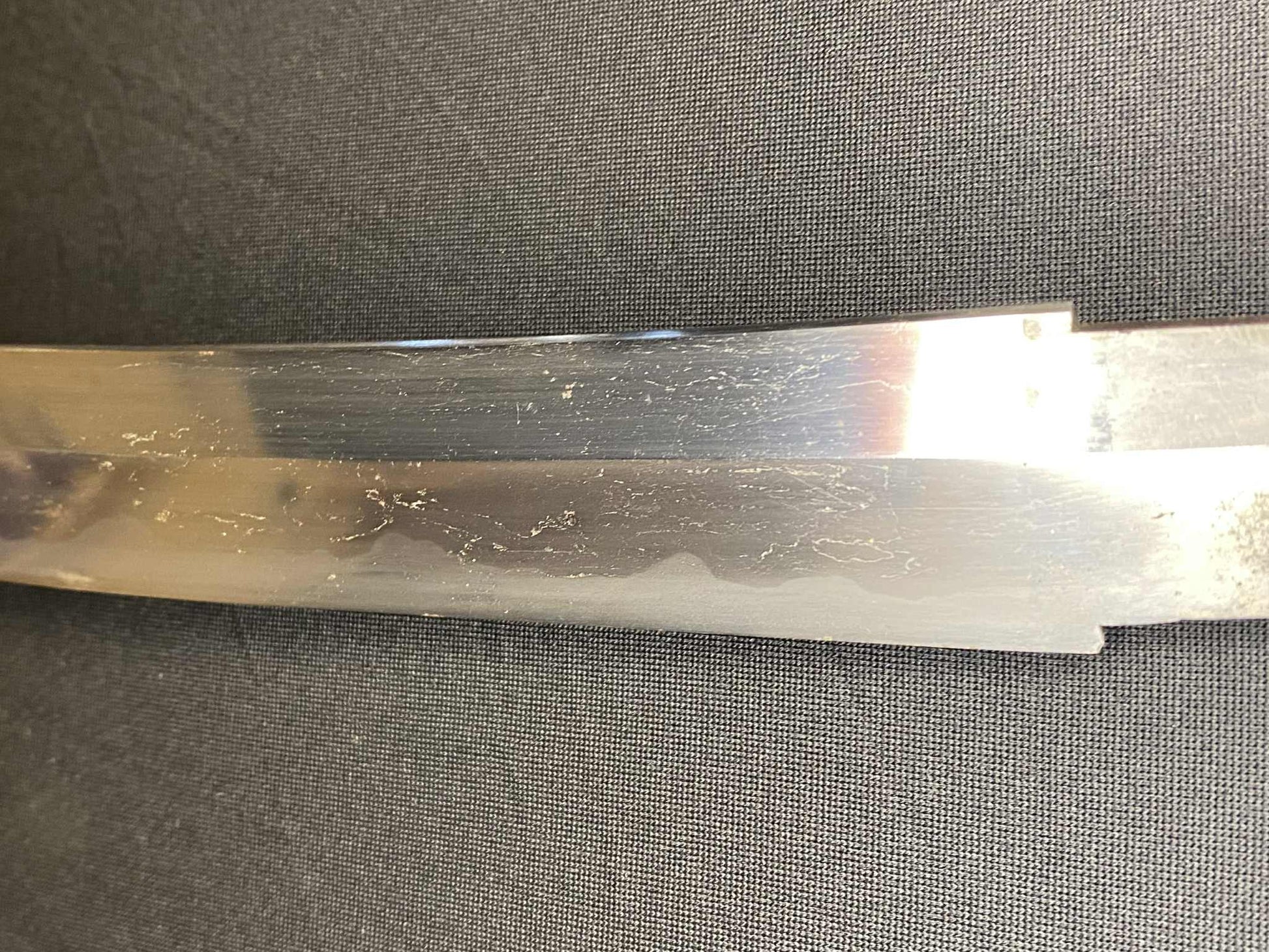 The wear on the tang suggests this Shobu zukuri wakizashi comes from the late Muromachi period