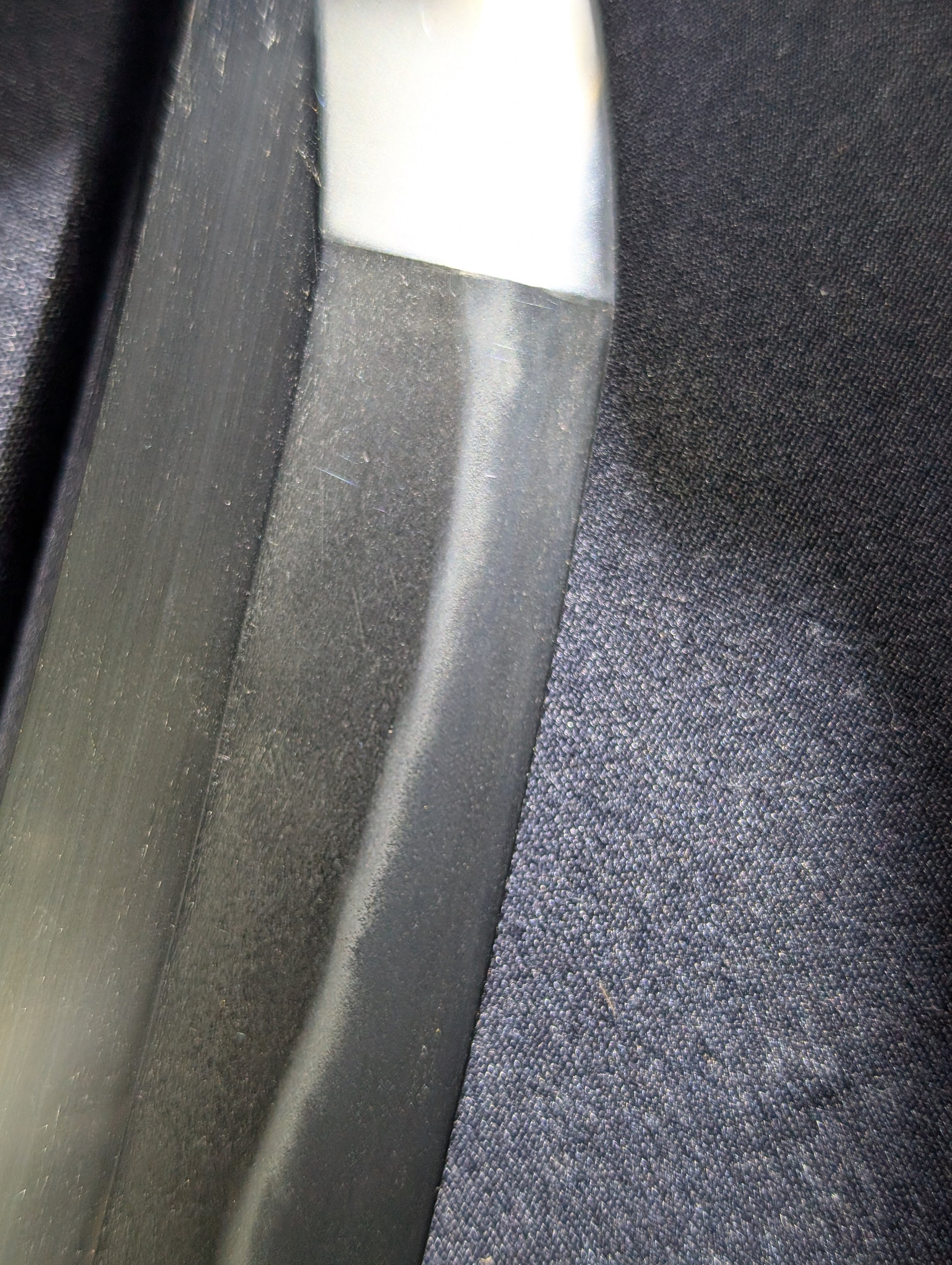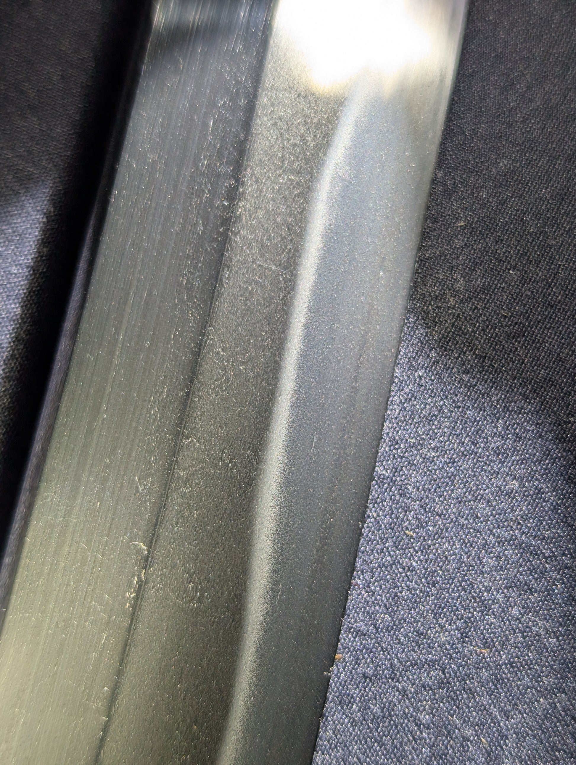 This thick, wide wakizashi was signed Owari Seki (尾張関), but was later partially cut off. The NBTHK has certified the signature. Owari Seki which is the general name for swordsmiths who migrated from Mino Province (美濃国) to Owari Province (尾張国) during the end of the Azuchi-Momoyama Period – Early Edo period.