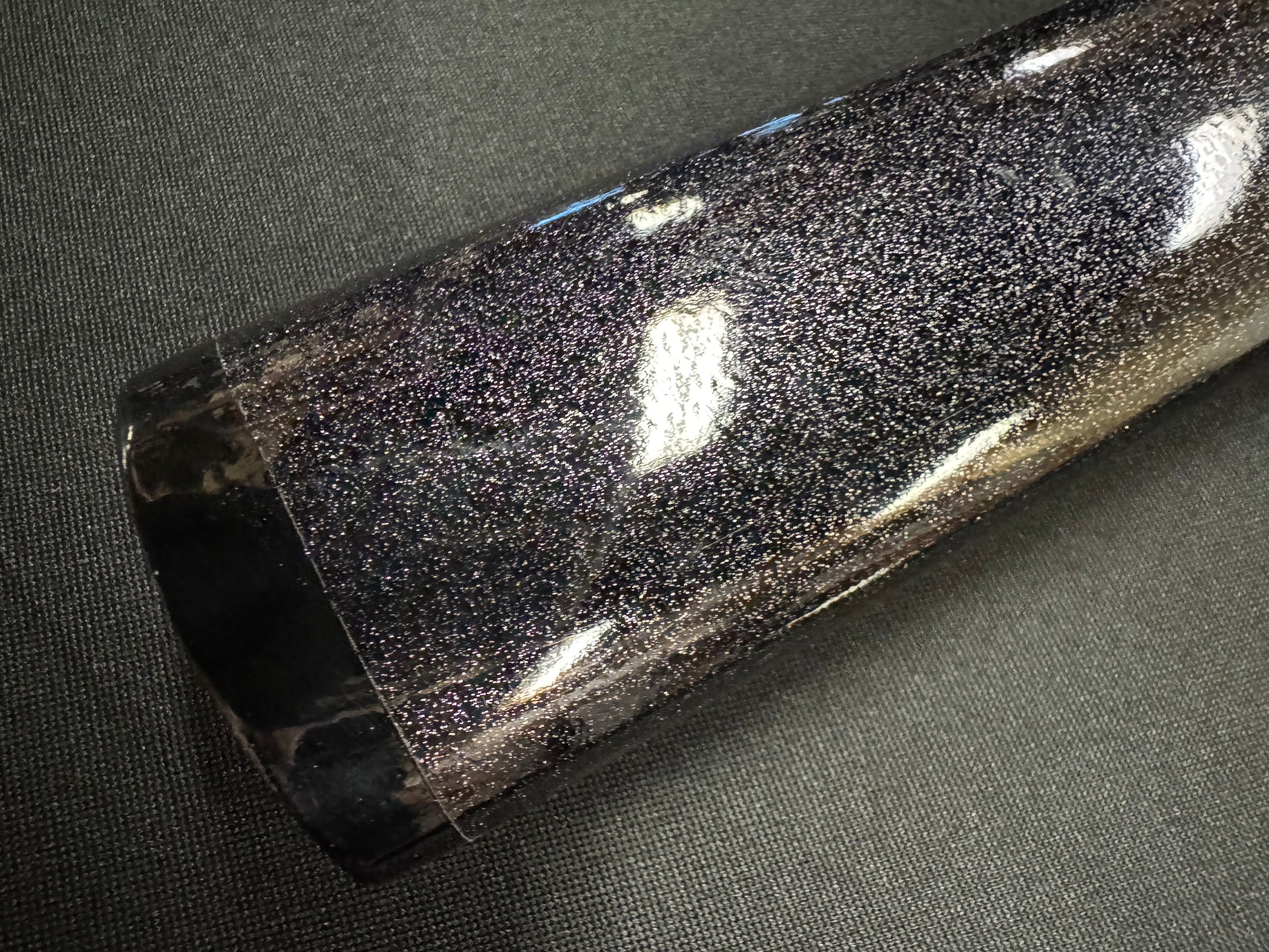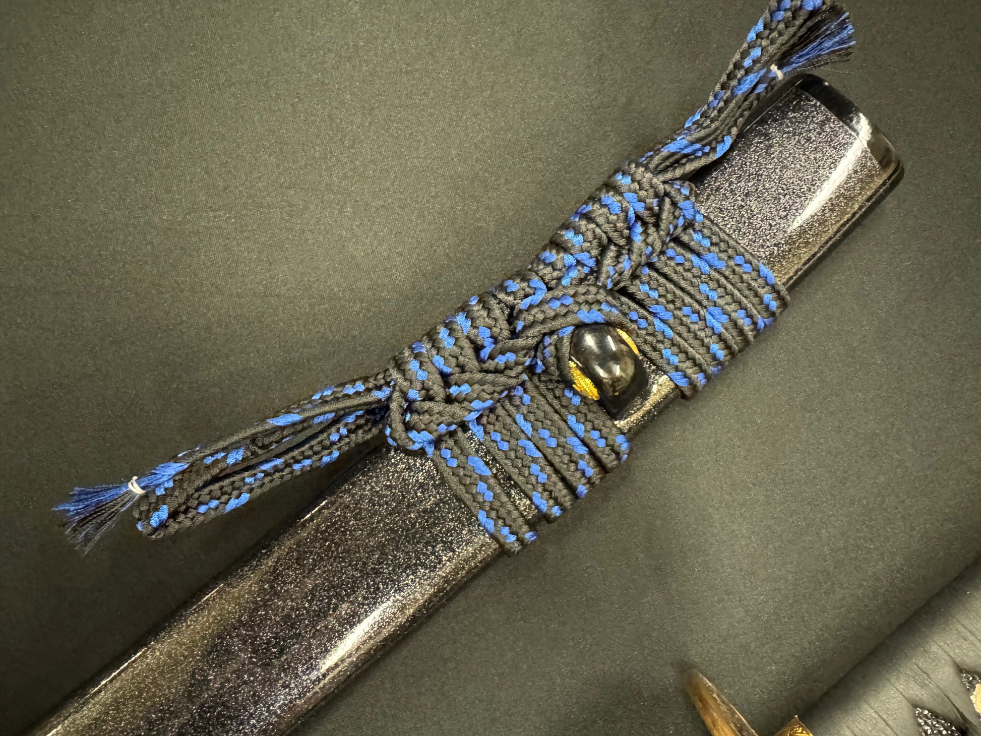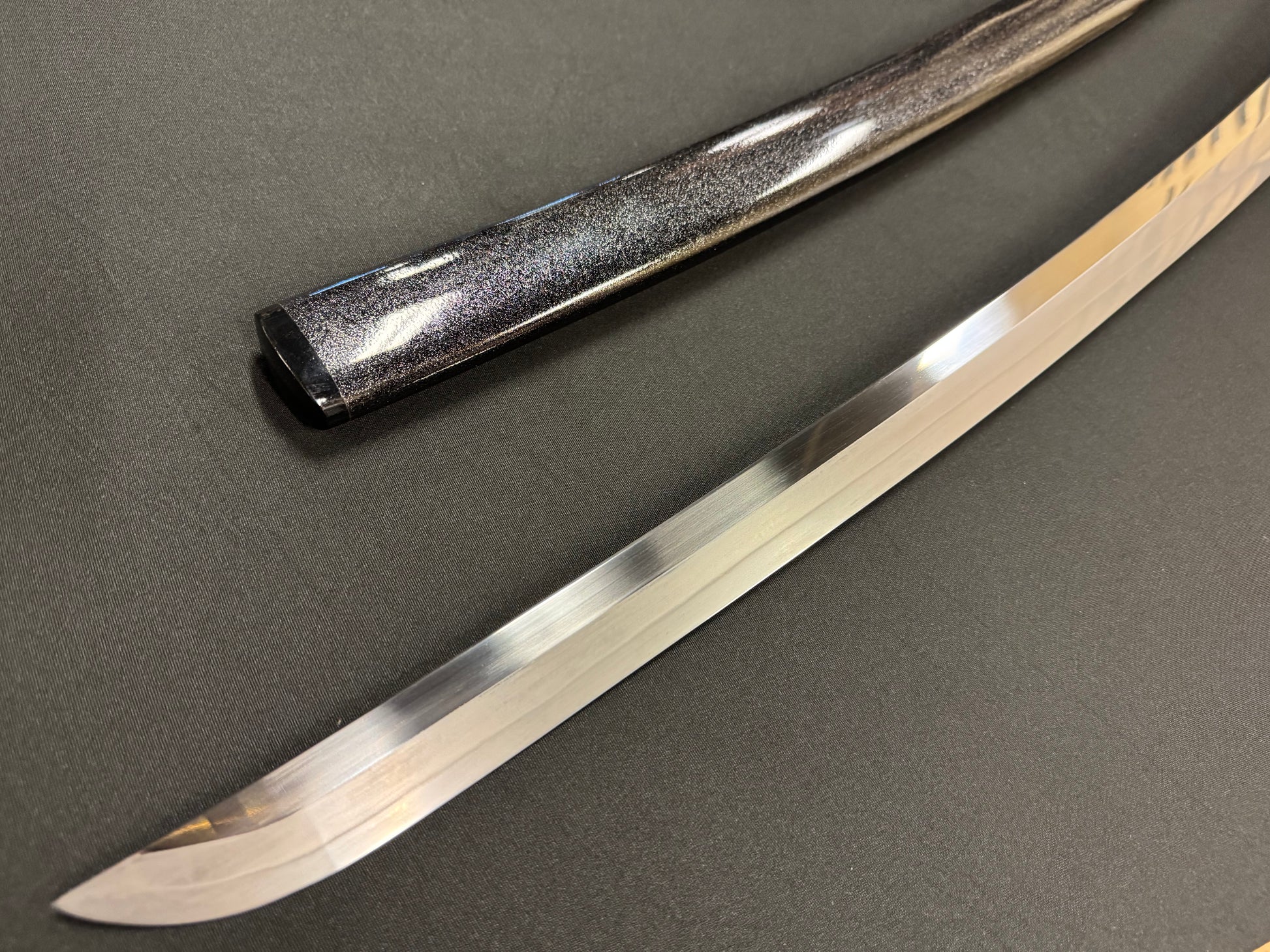 Scabbard: Black with flake under clear lacquer, horn fittings