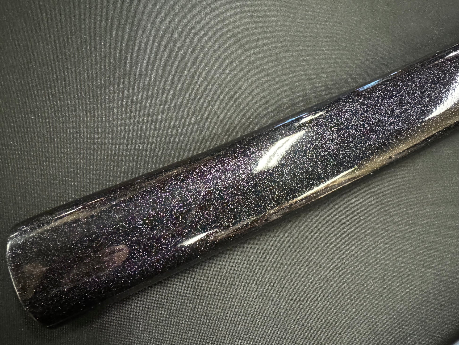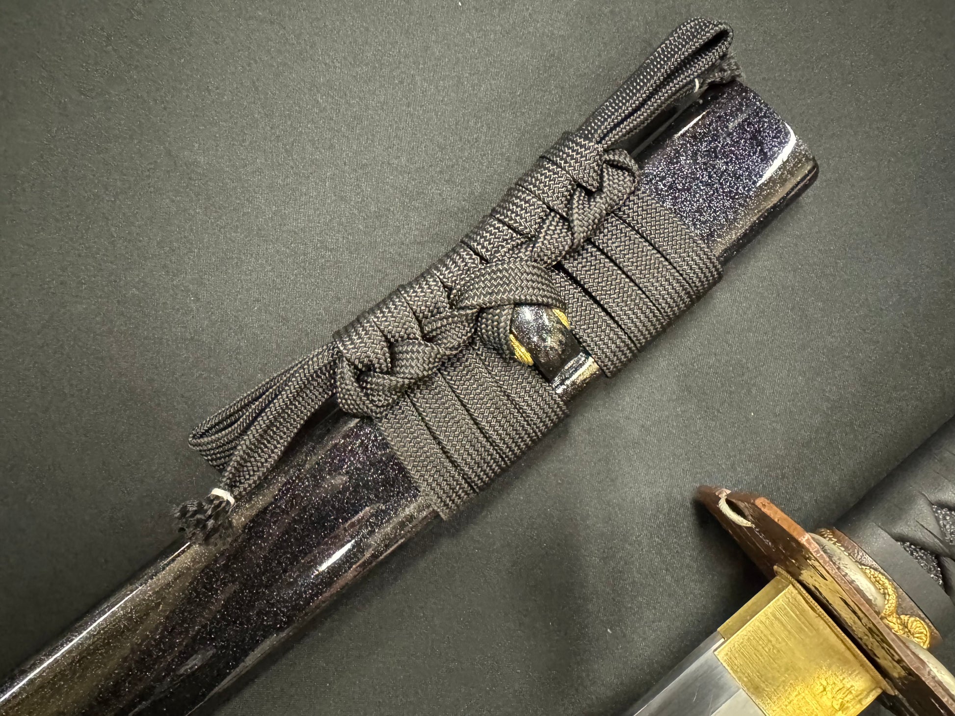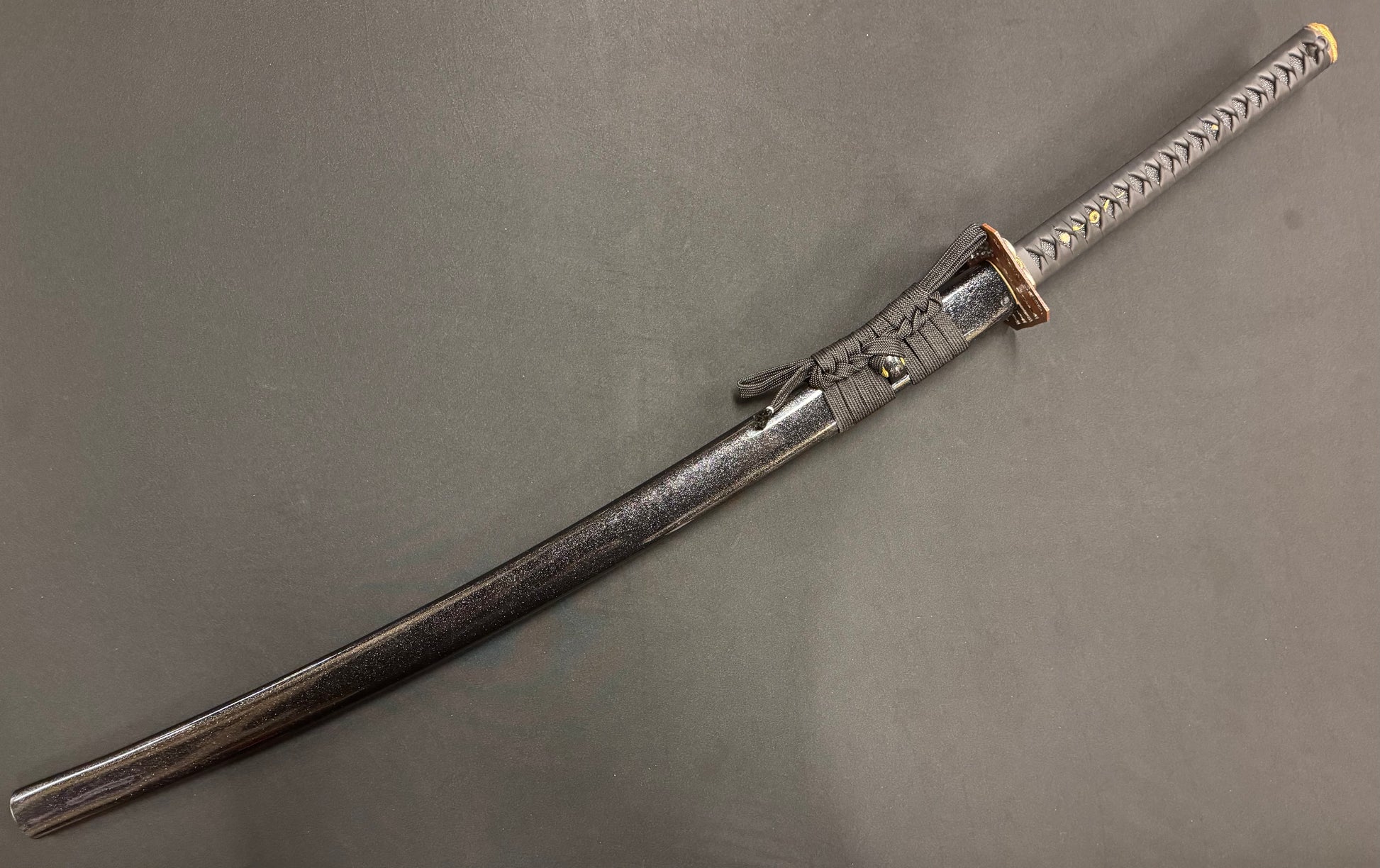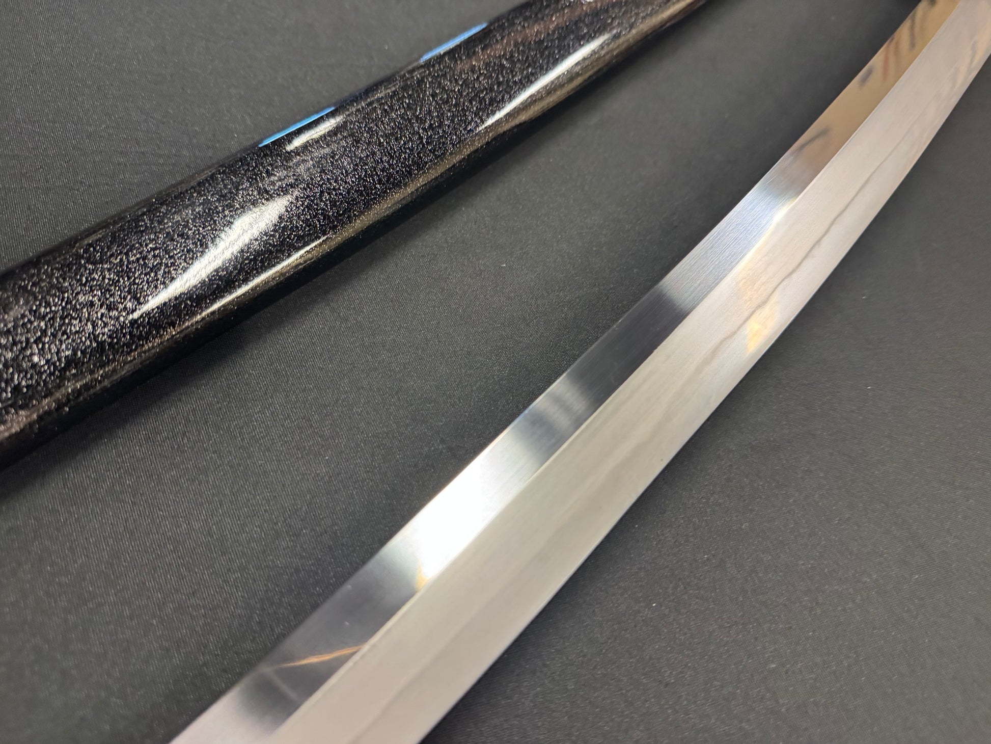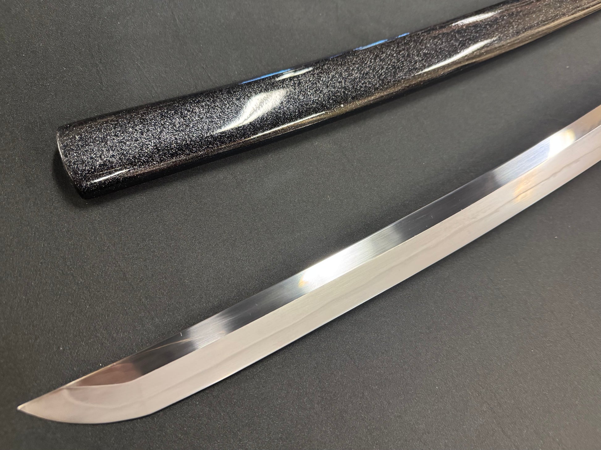 Scabbard: Black with flake under clear lacquer, horn fittings