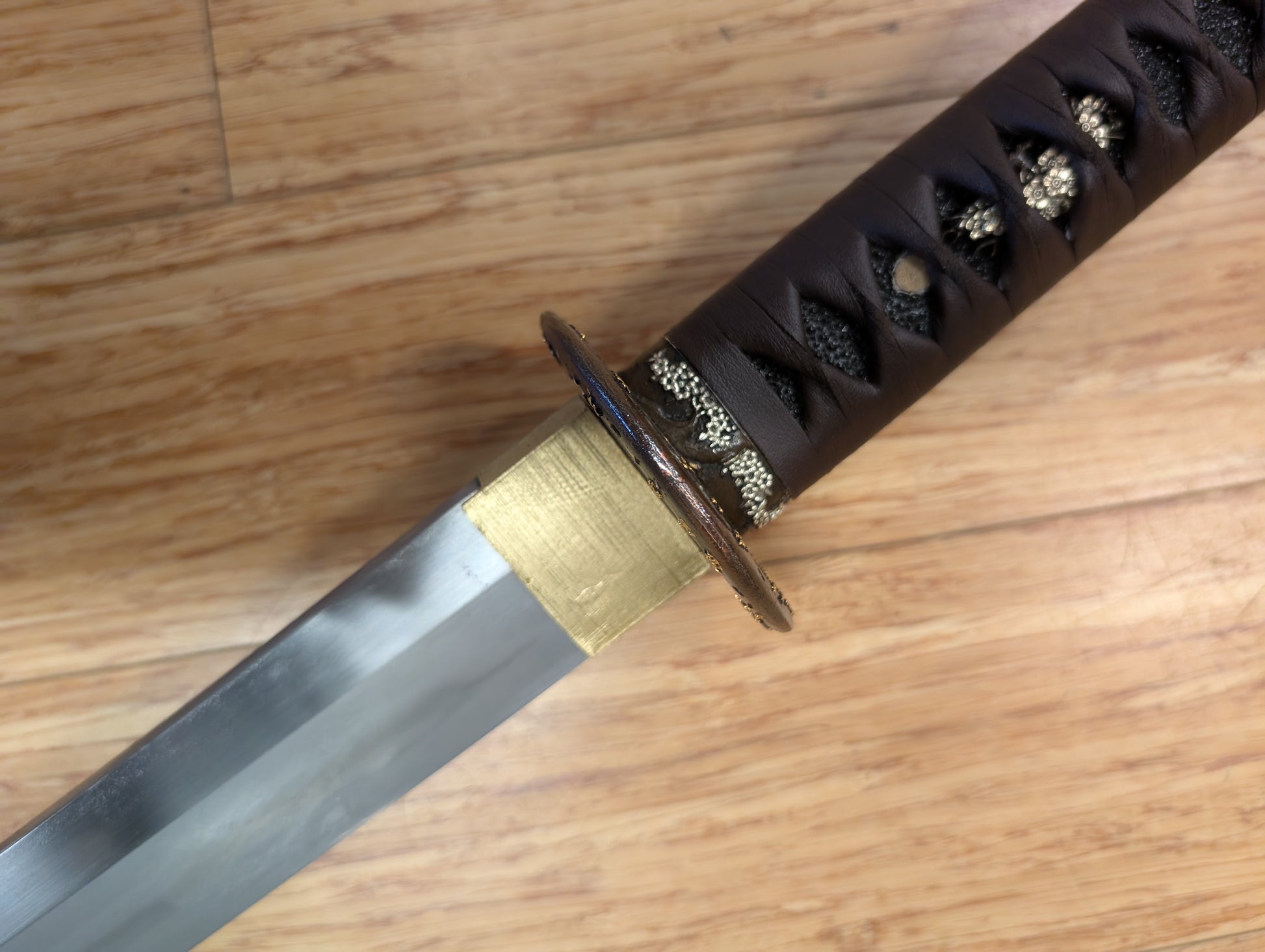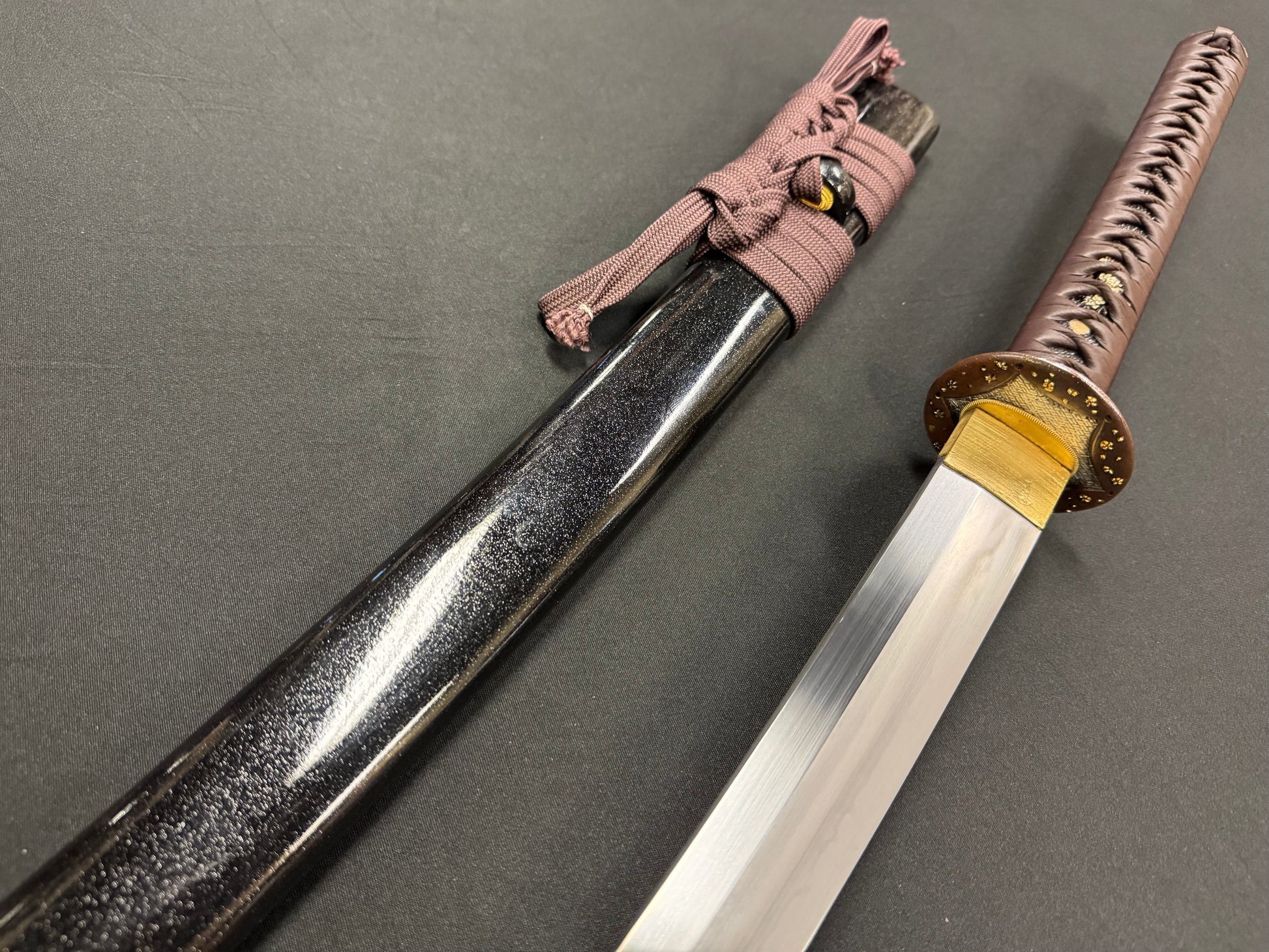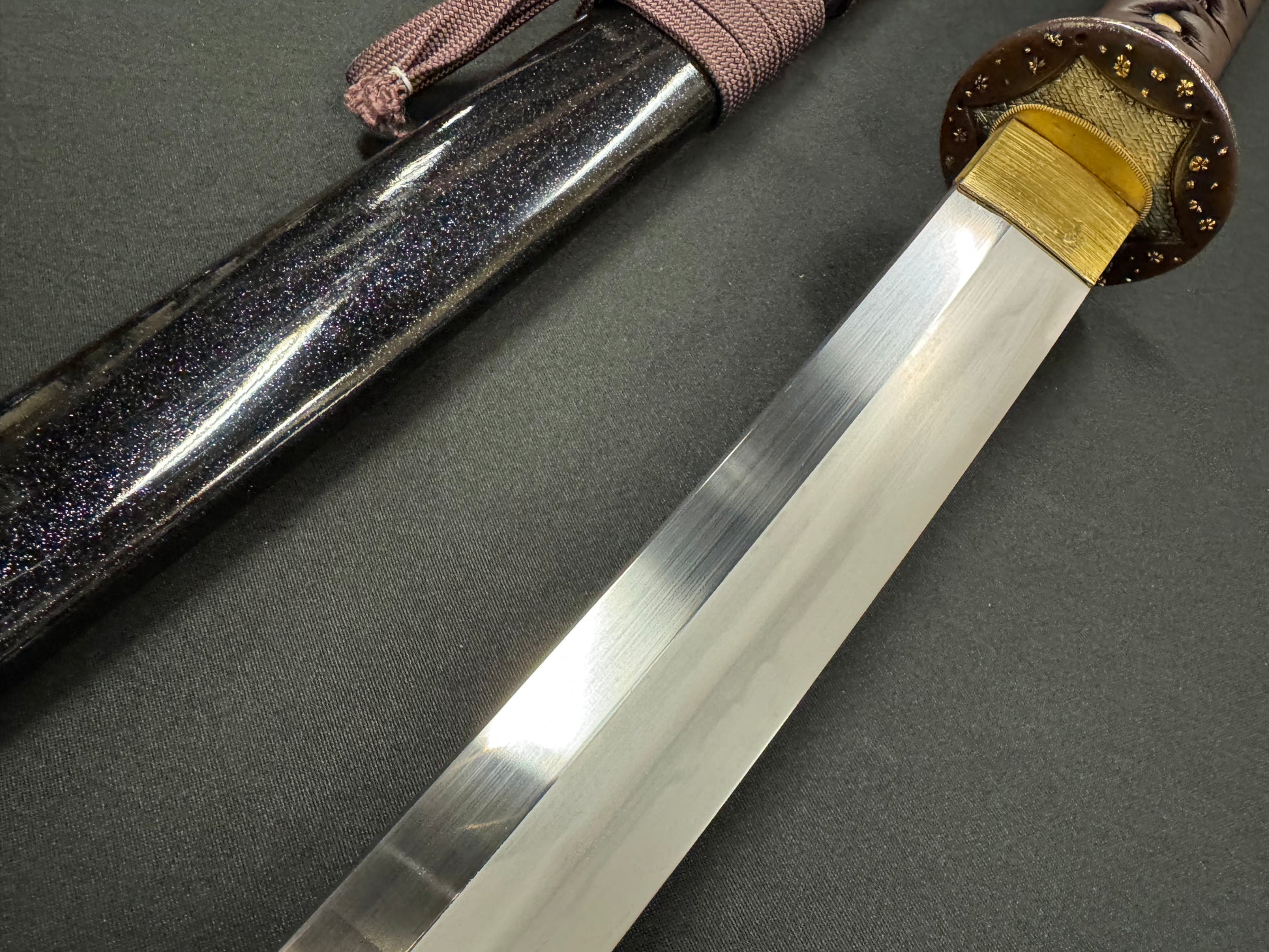 This sword has a gap between the seppa and habaki, as well as a dented kashira. We used it to cut bamboo.