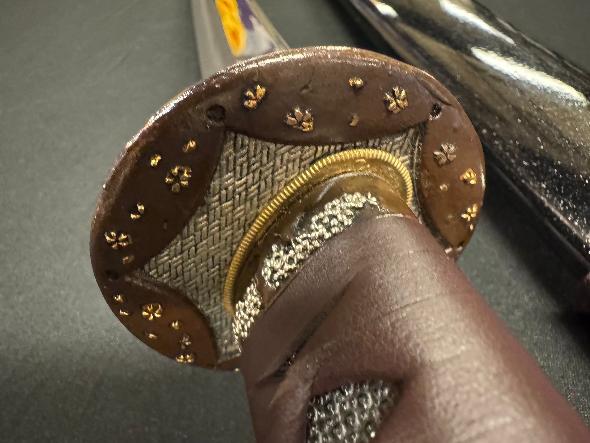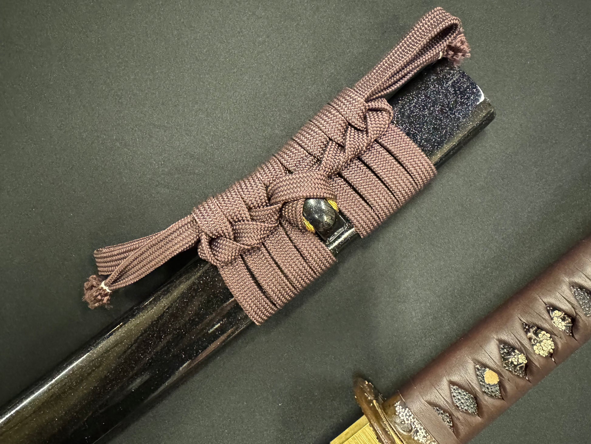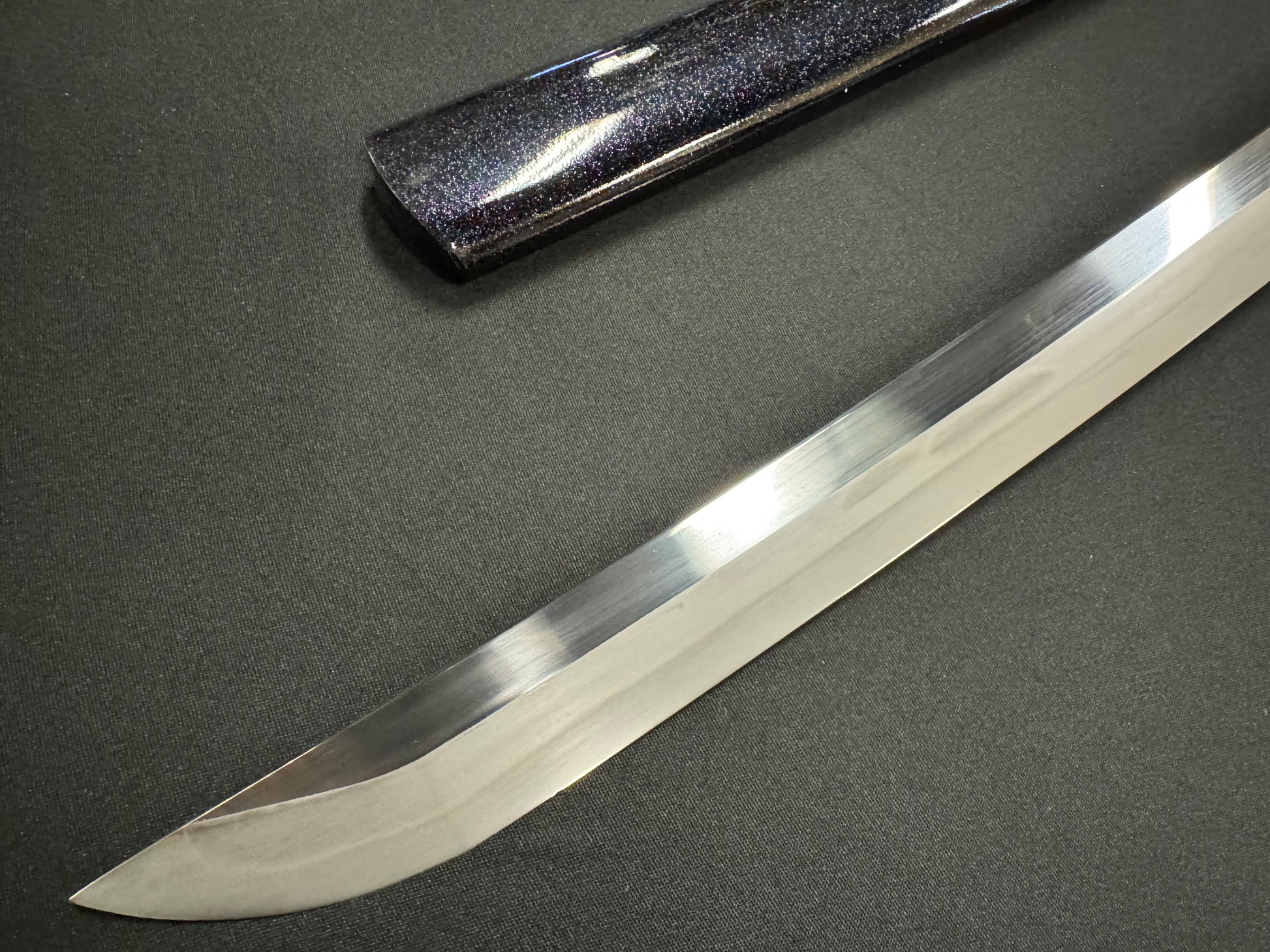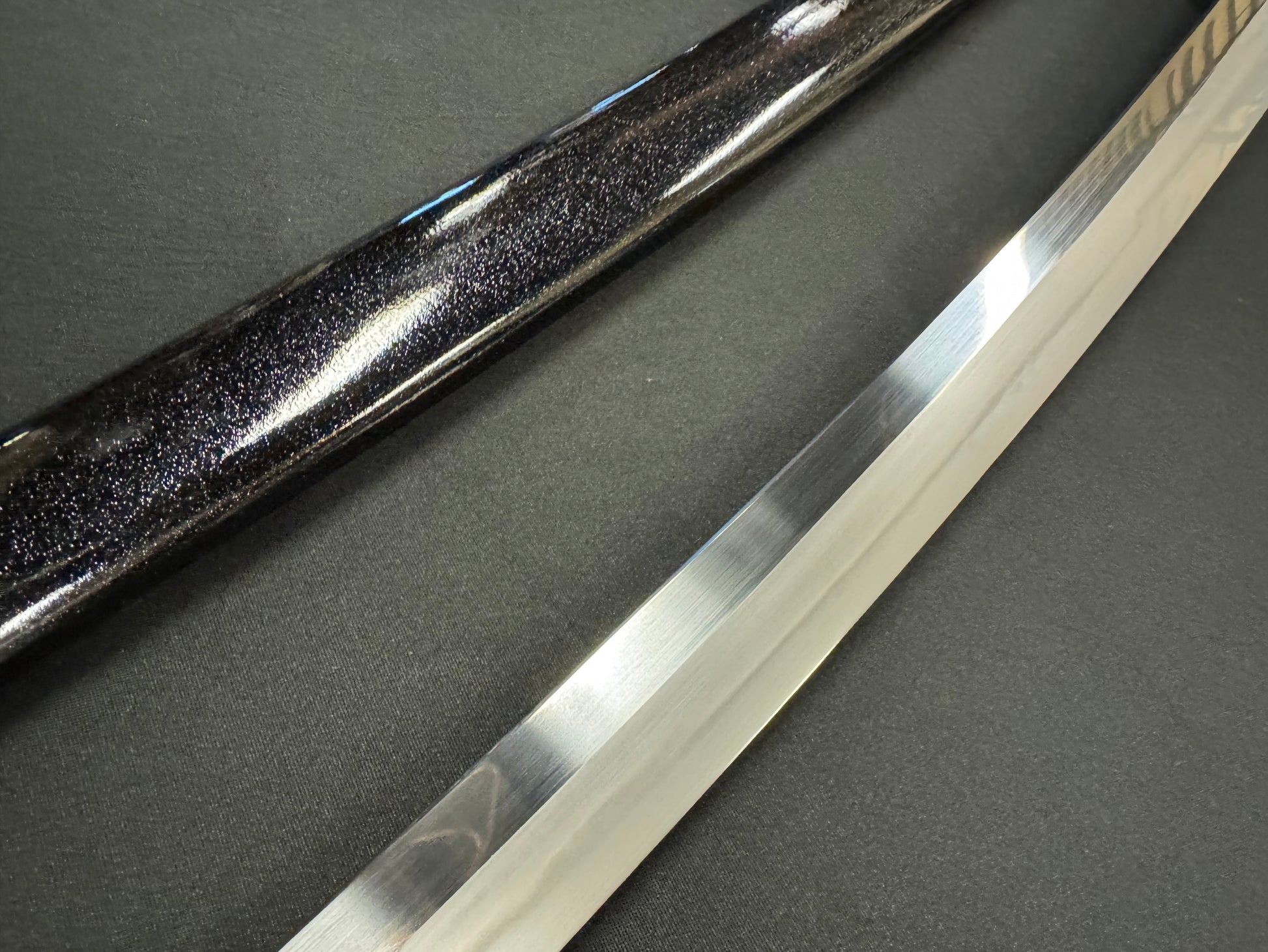 Scabbard: Black with flake under clear lacquer, horn fittings