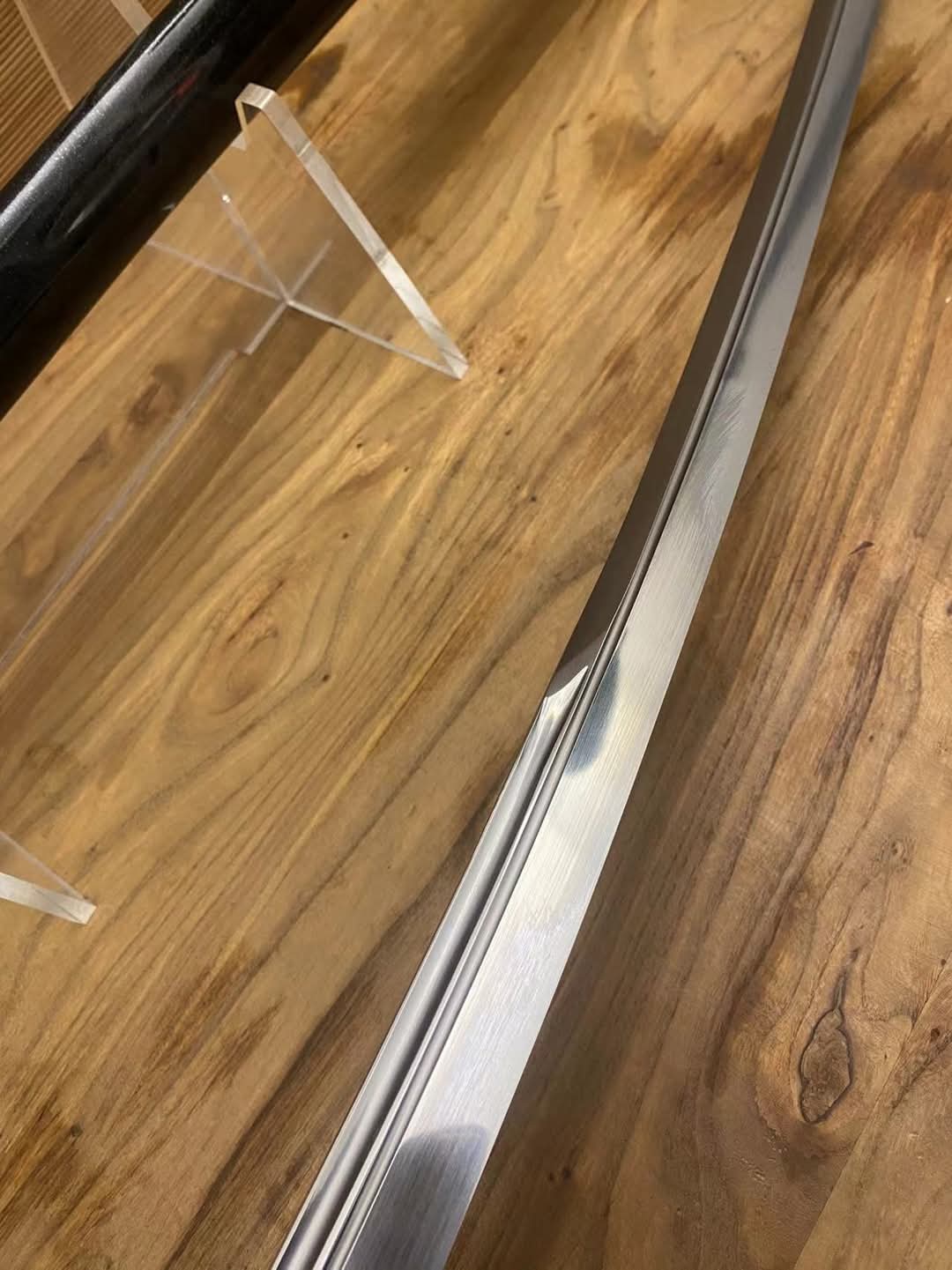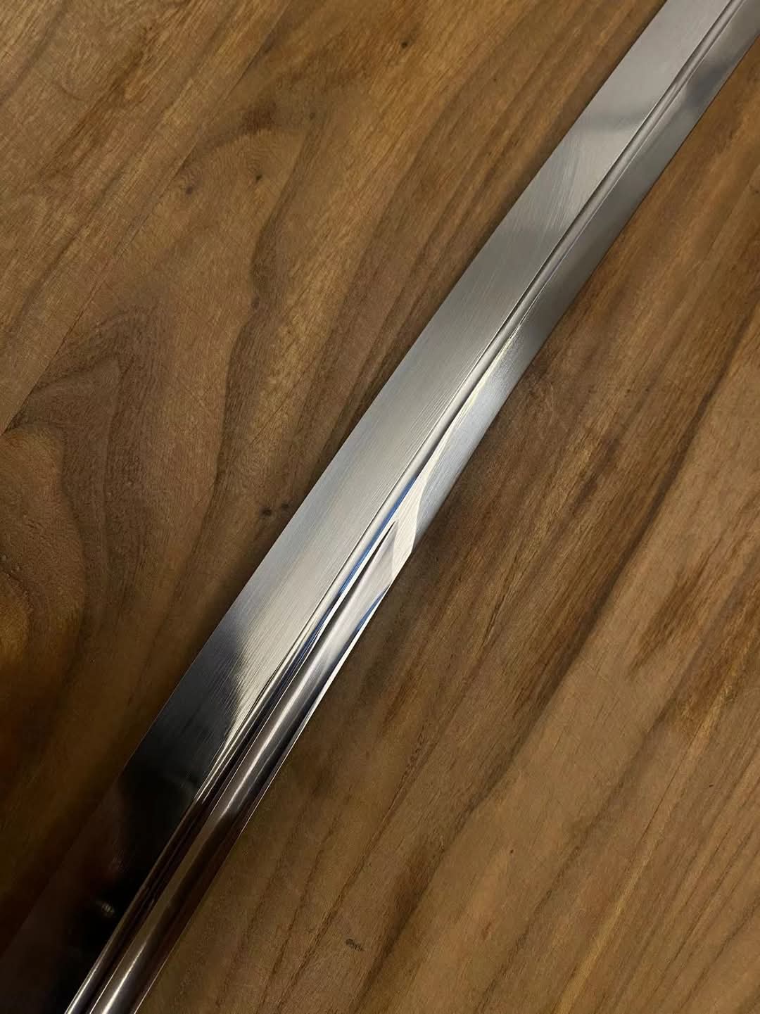The Demon Strike katana is made from 60simo84, the German licence of s5 shock steel, one of the toughest sword steels on the market. The Unokubi profile with triangle termination bohi and sohi make it a nimble cutter.