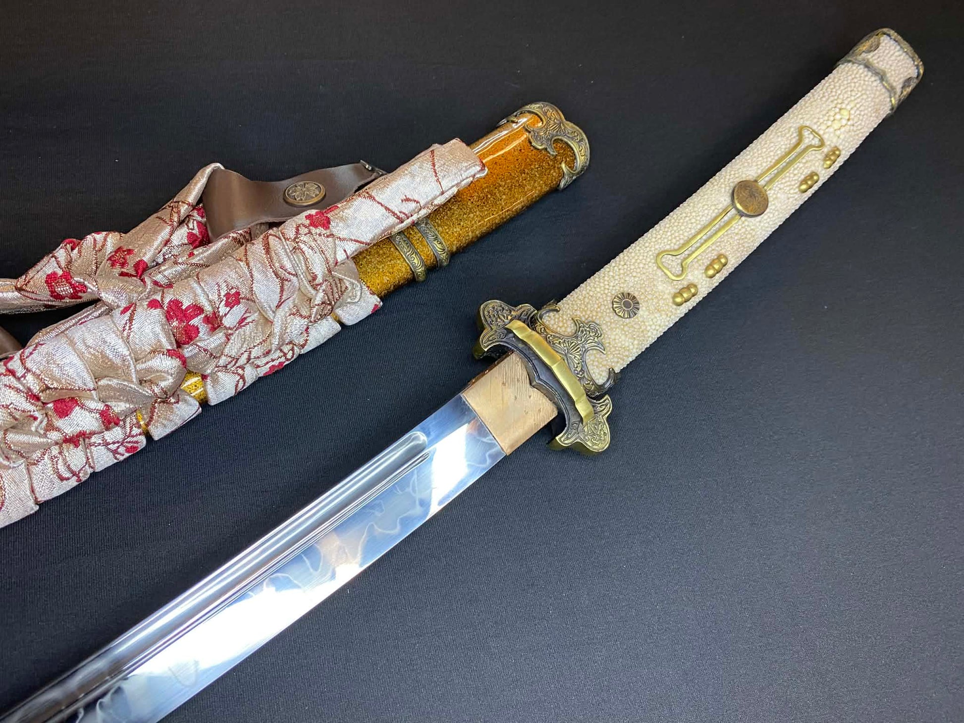 Dragonspring's modern take includes a meticulously heat-treated hitatsura hamon and triangle termination bohi on the blade, and classic Efu tachi fittings with the Shogun's Creat, it is sure to impress.