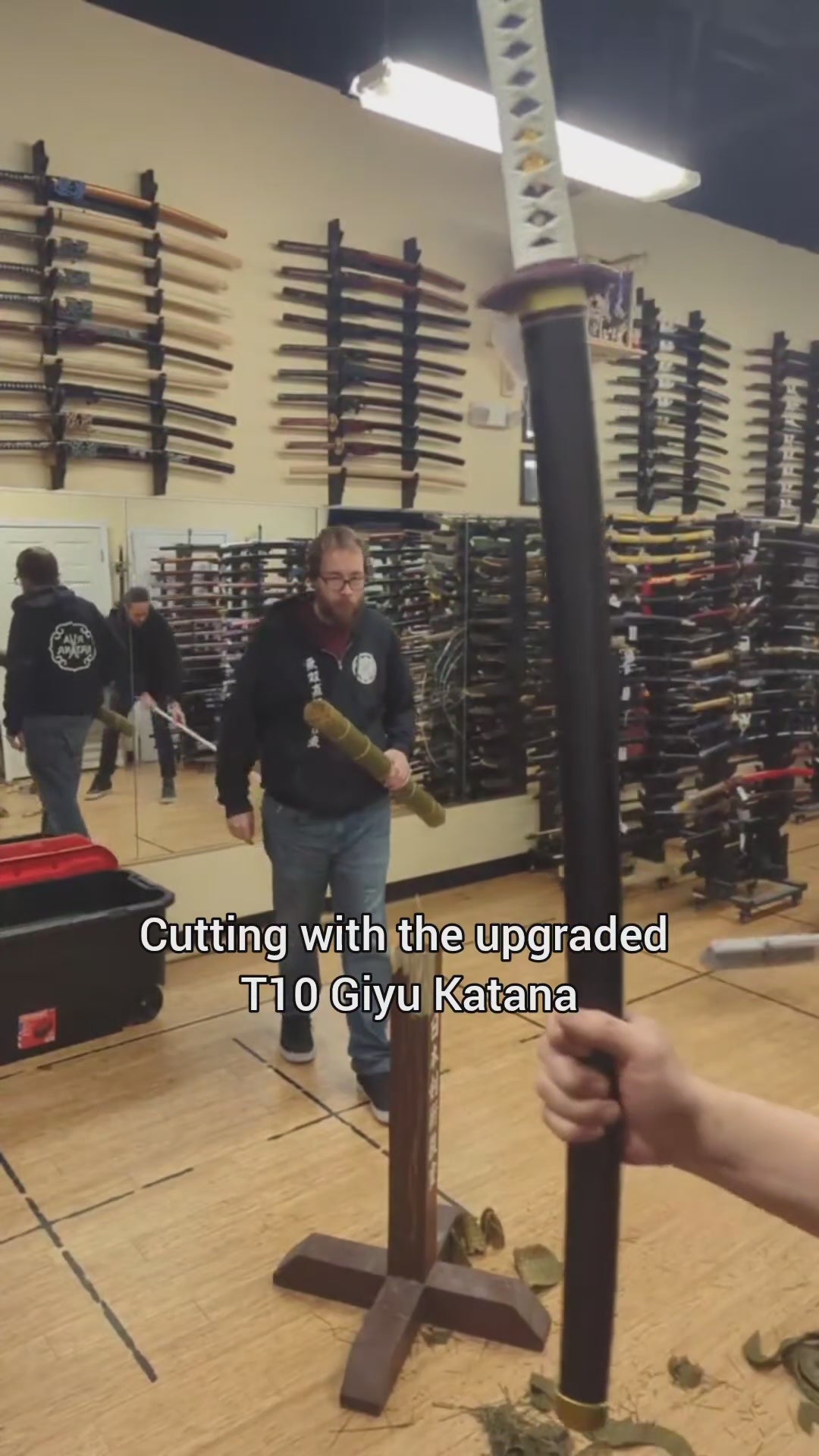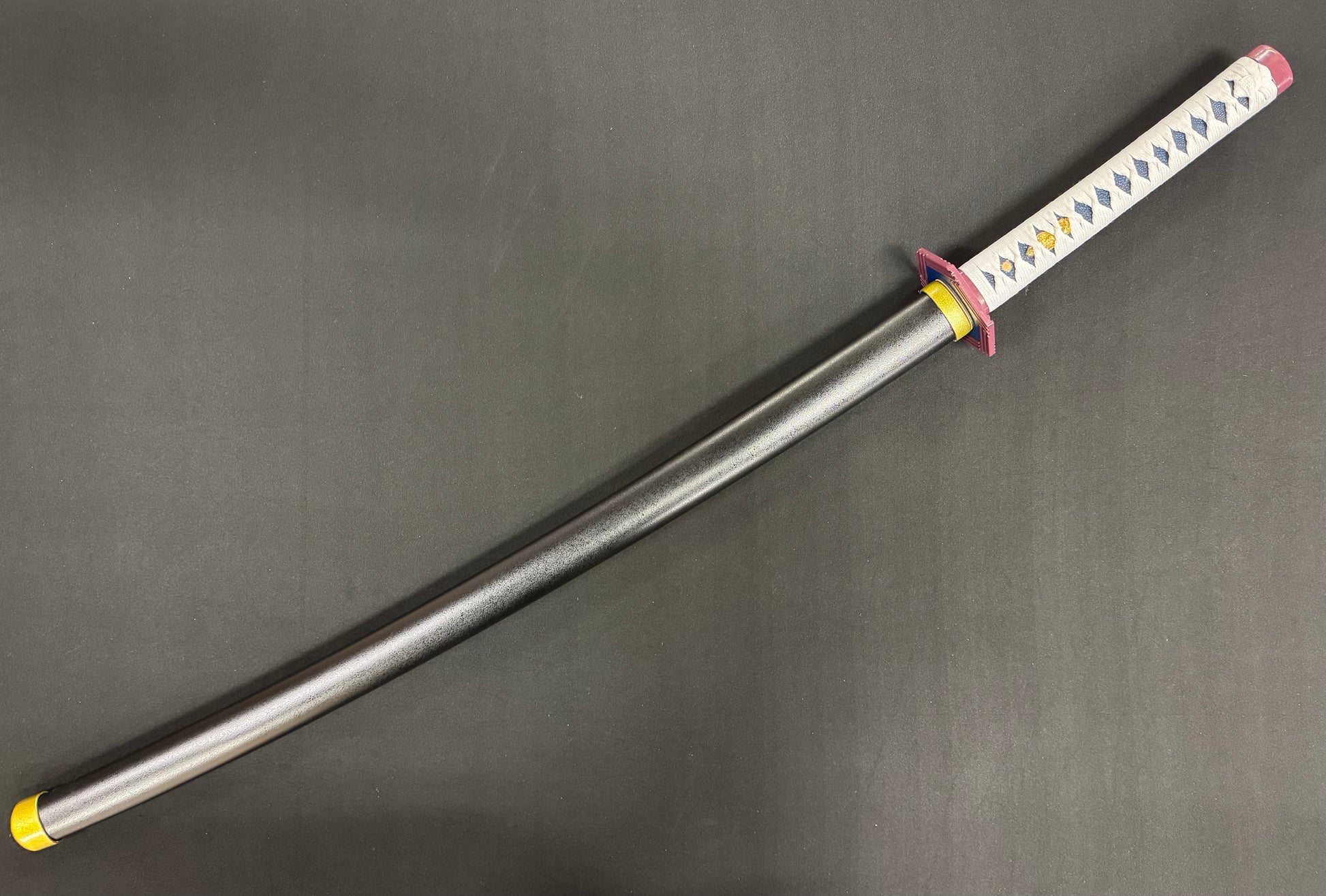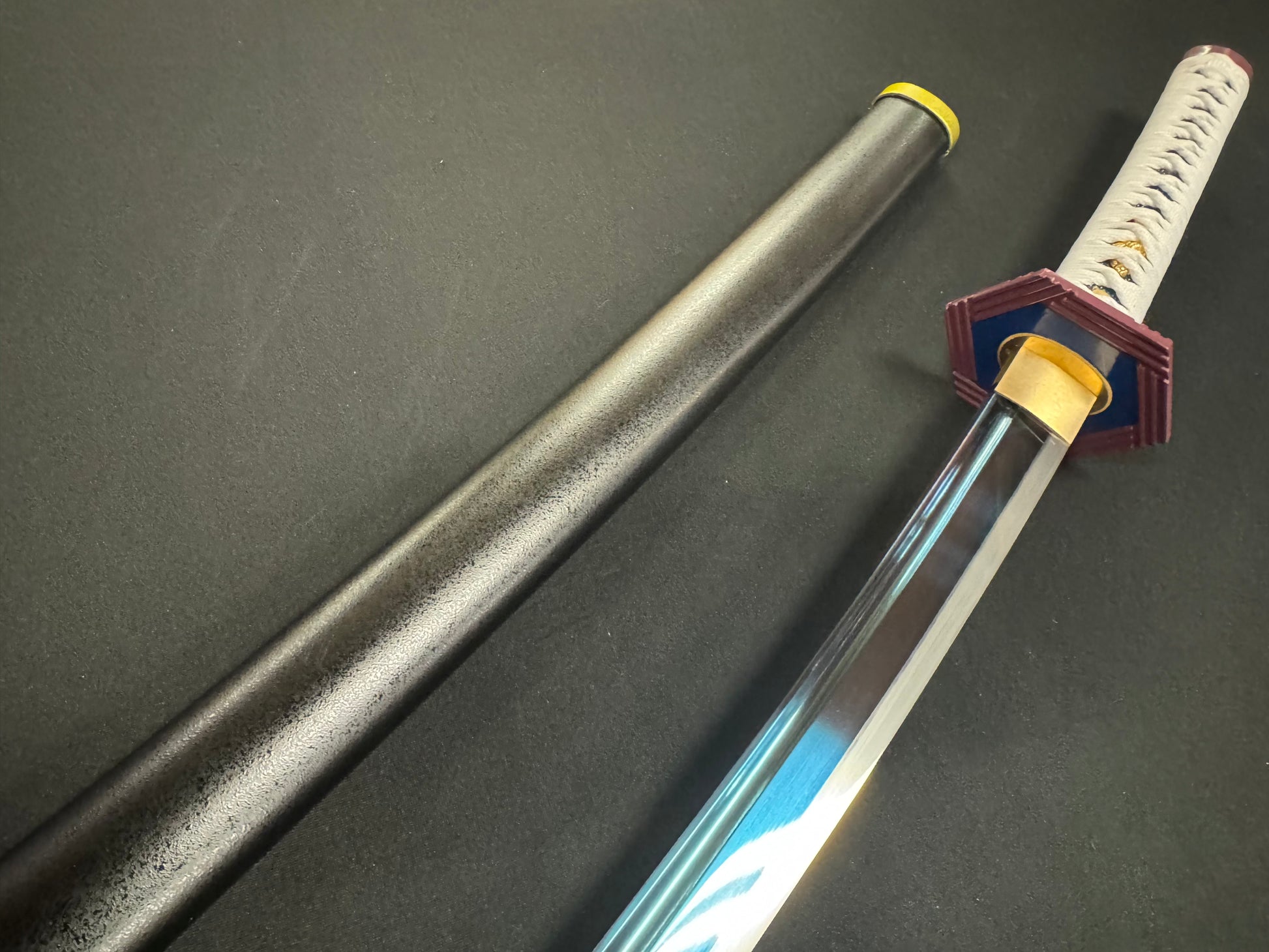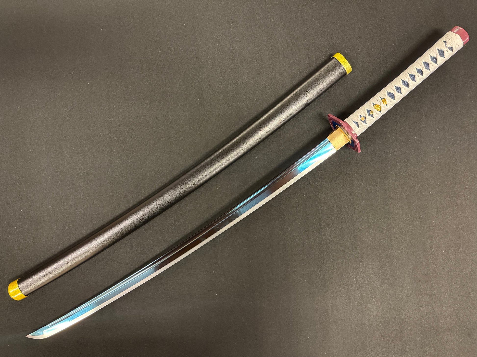 For fans of the popular Anime series Demonslayer comes this gorgeous Tomioka Giyu sword, forged by the mastersmiths at Dragonspring Forge in high quality T10 tool steel. This is one serious cutting sword, able to cut hard and soft targets with ease!