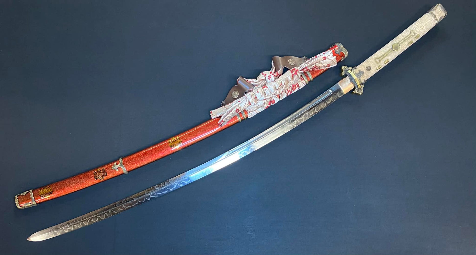 Dragonspring's modern take includes a meticulously heat-treated hitatsura hamon and triangle termination bohi on the blade, and classic Efu tachi fittings with the Shogun's Creat, it is sure to impress.