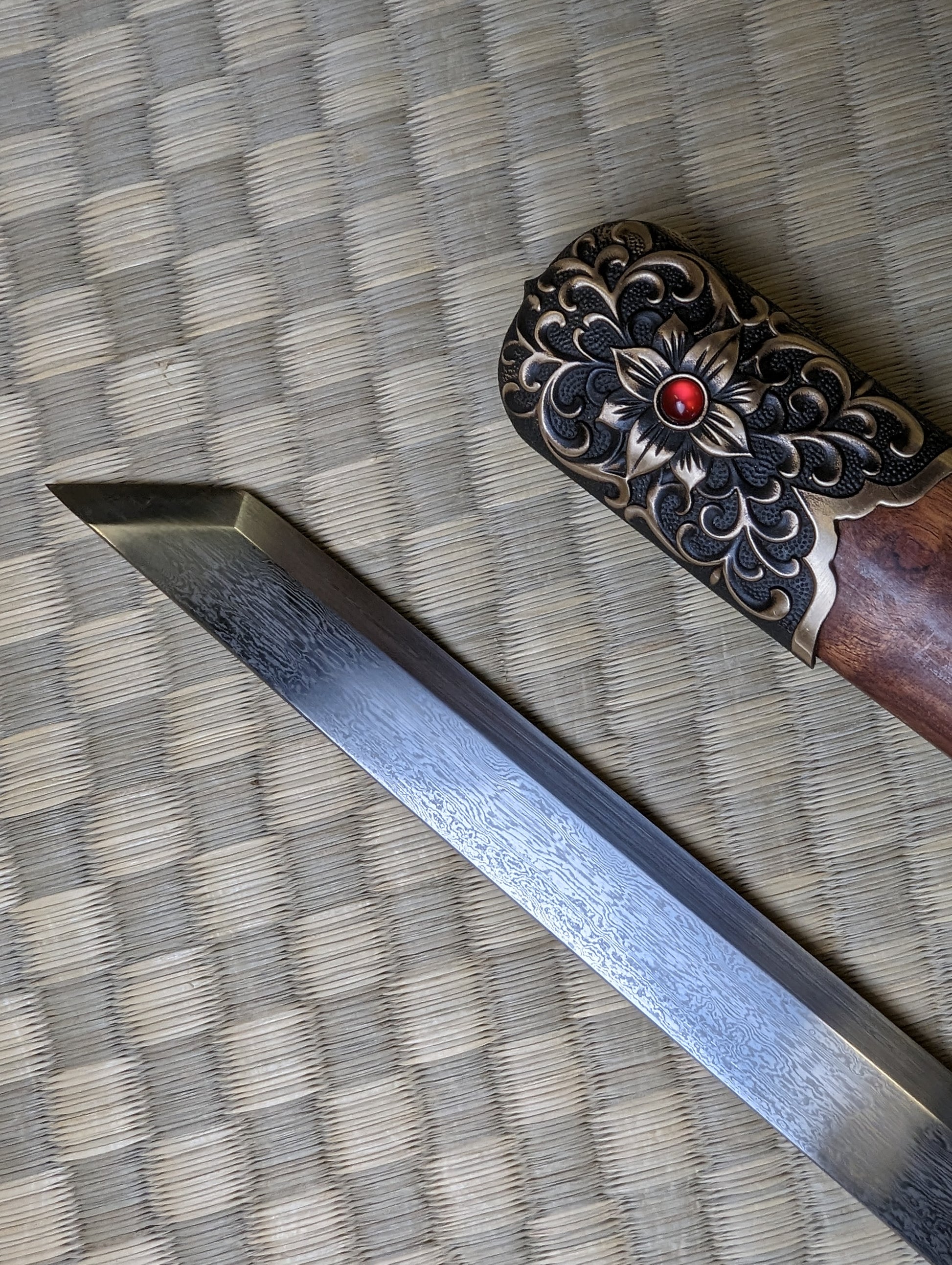 Jian - Phoenix Arms Tang Dynasty Damascus, Brass fittings