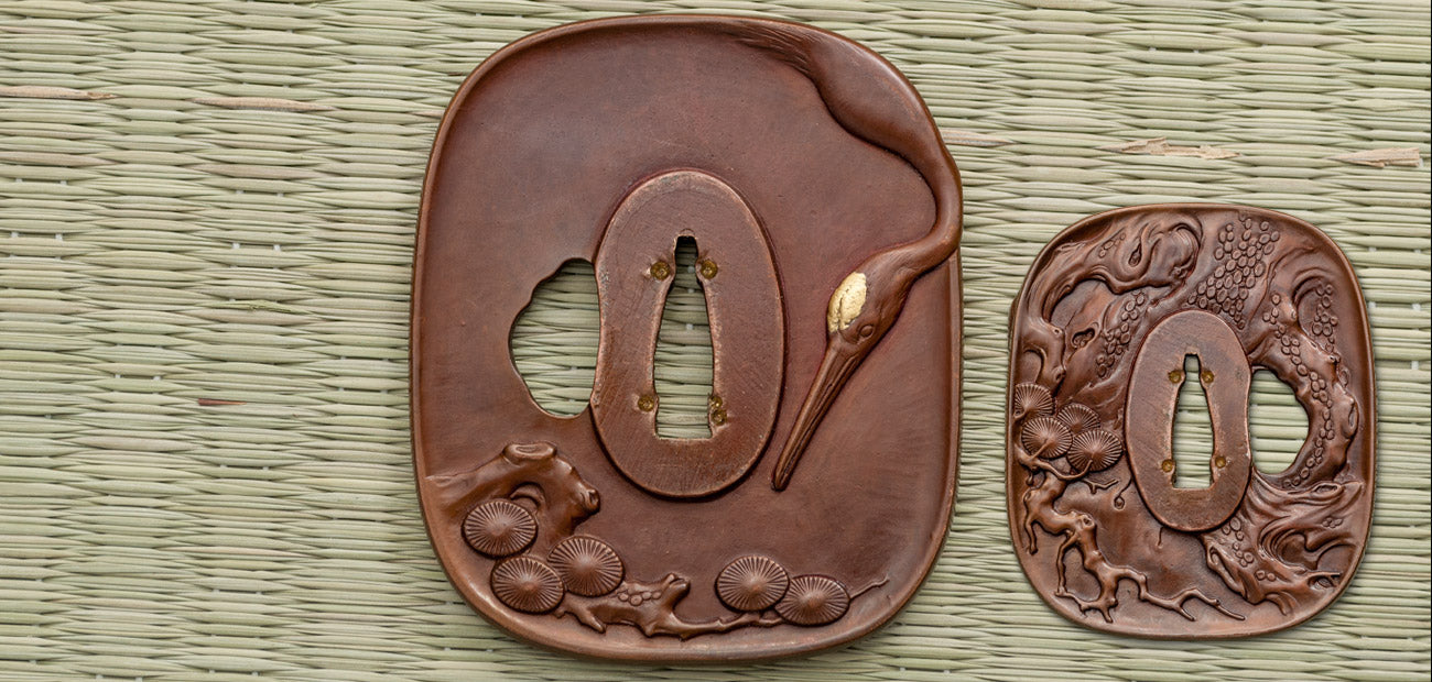 The artisans of Dragon King offer us another exquisite piece of revered symbolism from Japanese culture with the Pine Crane Daisho Set. The red-crown crane holds profound respect and power in the Japanese mythos believed to live for a thousand years. As a symbol of authority, a Japanese idiom says, “one word from the crane” referring to the final word that isn’t challenged. Marrying the symbolism of the pine tree, another icon of power, longevity and wisdom, Shinto beliefs state that the gods of heaven reside in the ancient pines. Often used in wedding attire, the red-crown crane mates for life which make sense to pair this theme with a matching wakizashi (SD35300).
