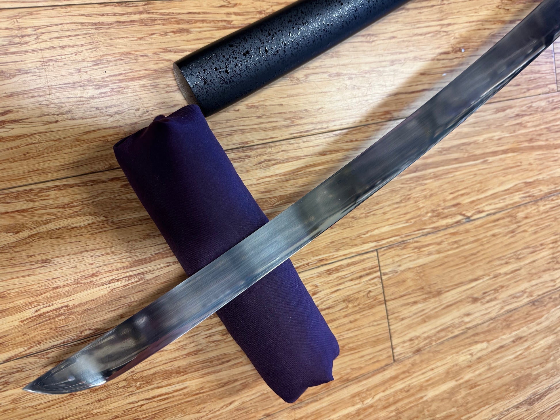 Blade material: Maru, 1095 high carbon steel Hira Zukuri, Suguha Hamon
