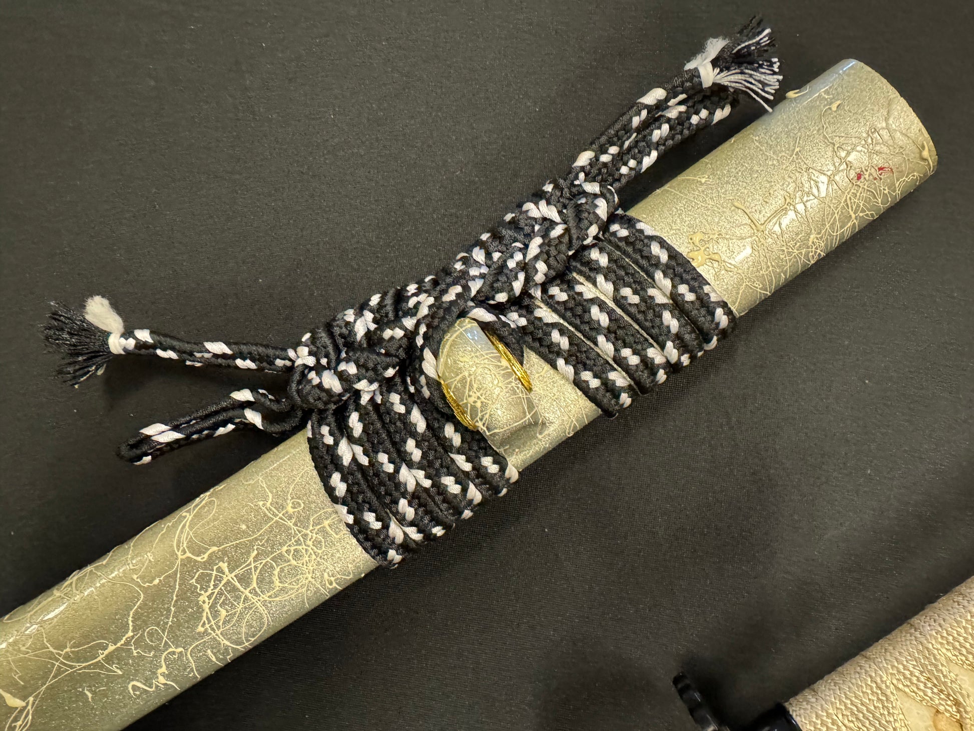 Hardwood Saya, white with string design in relief
