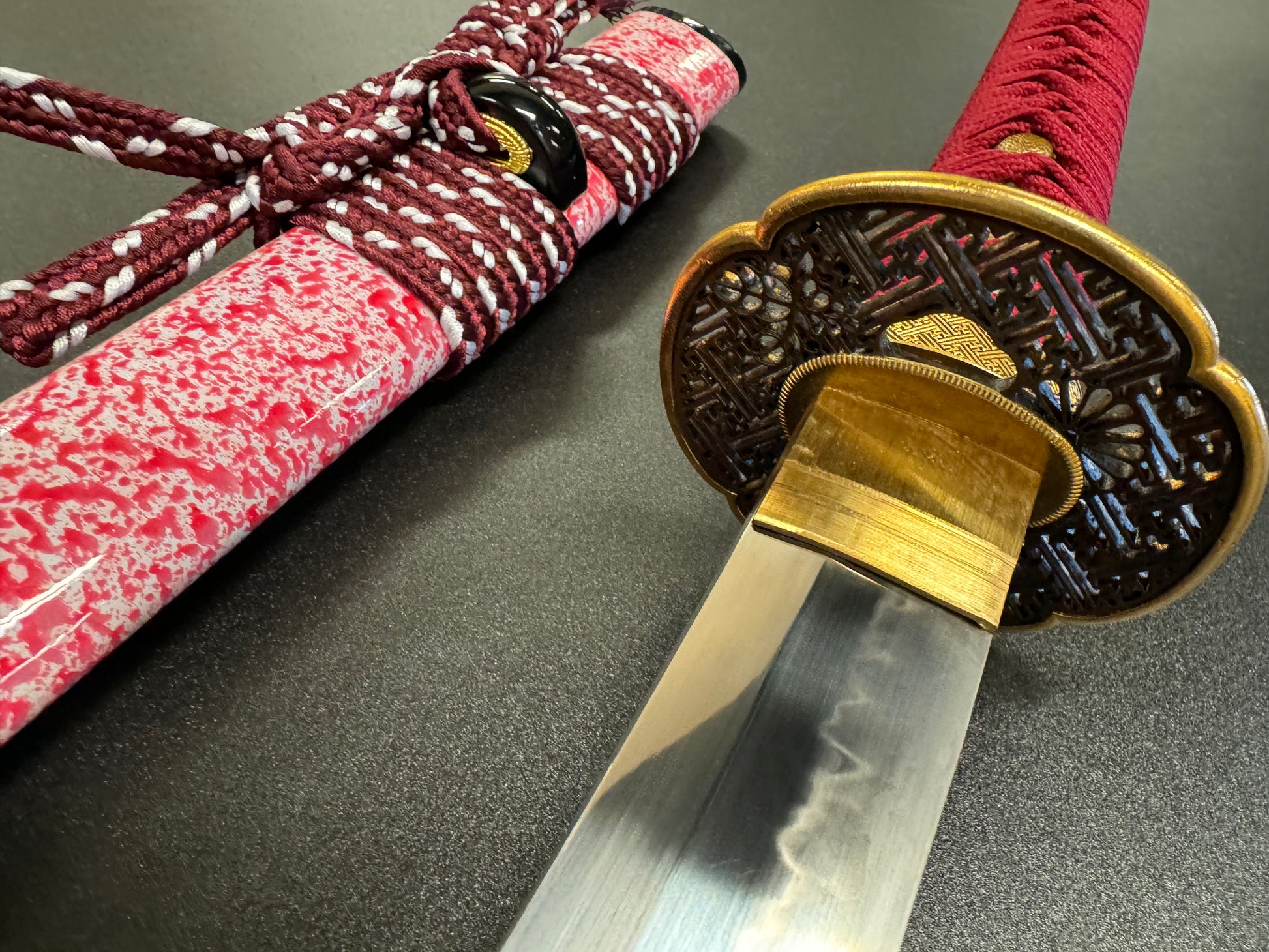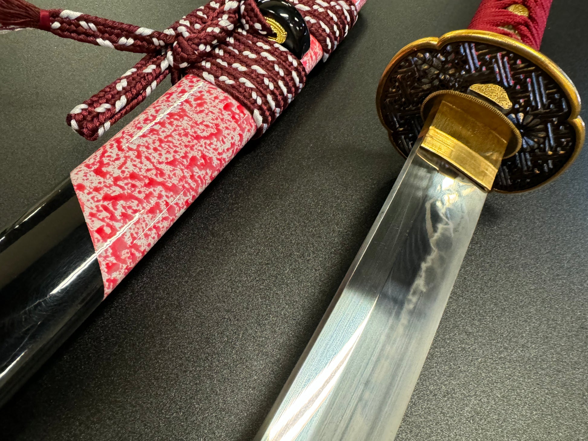 Moritaka Razor Prestige Katana - Crimson Lattice - T10 Clay Tempered, Hadori Polish
