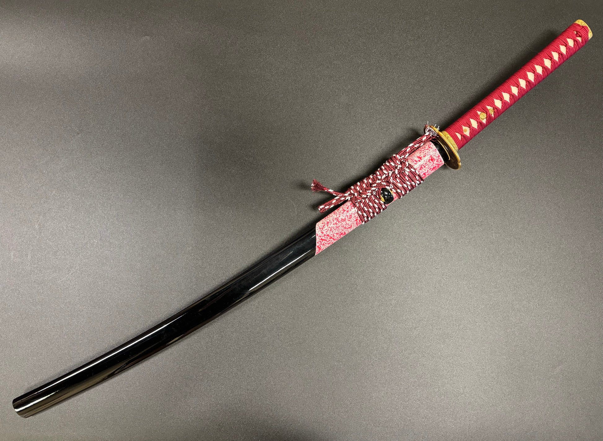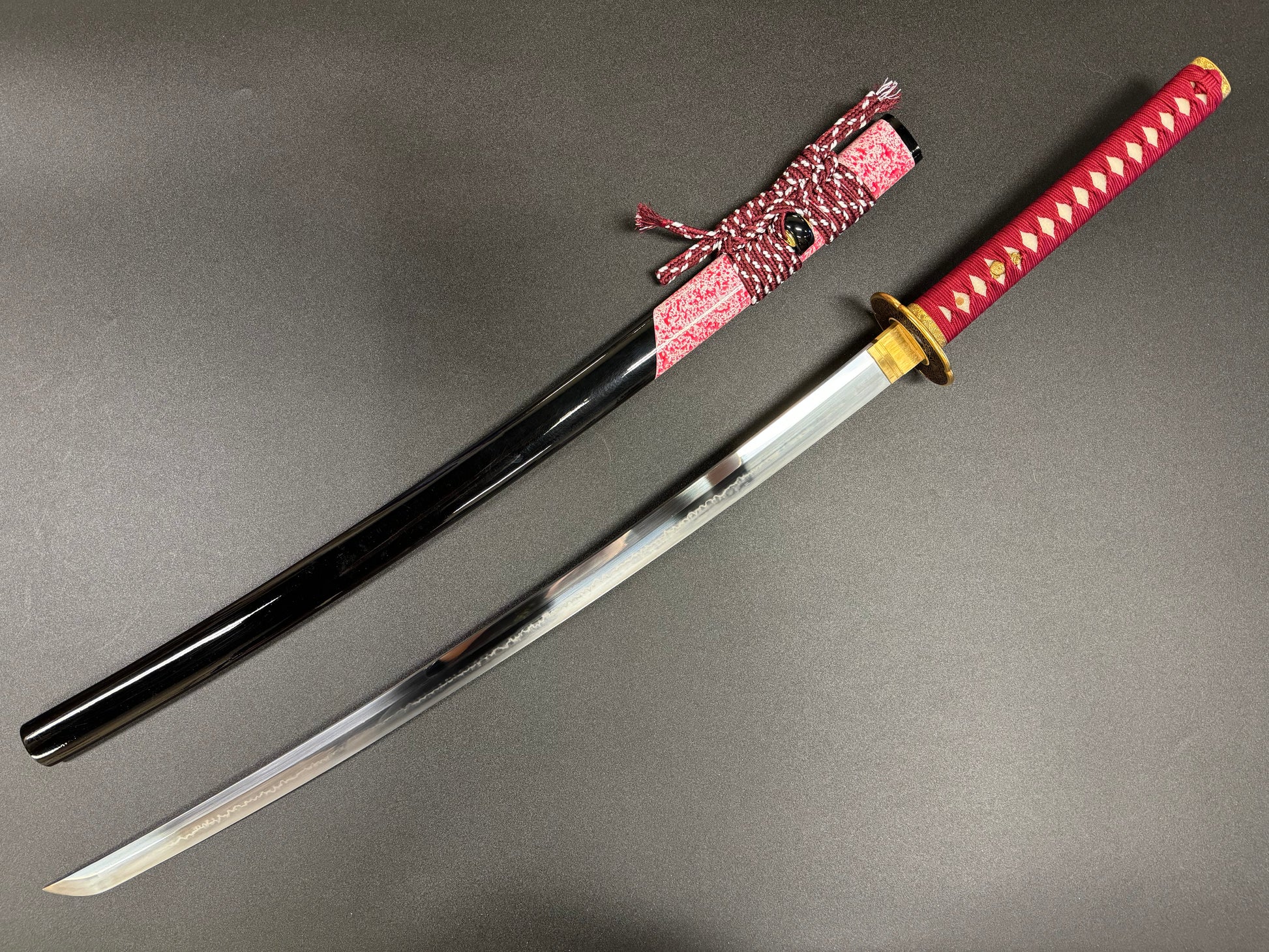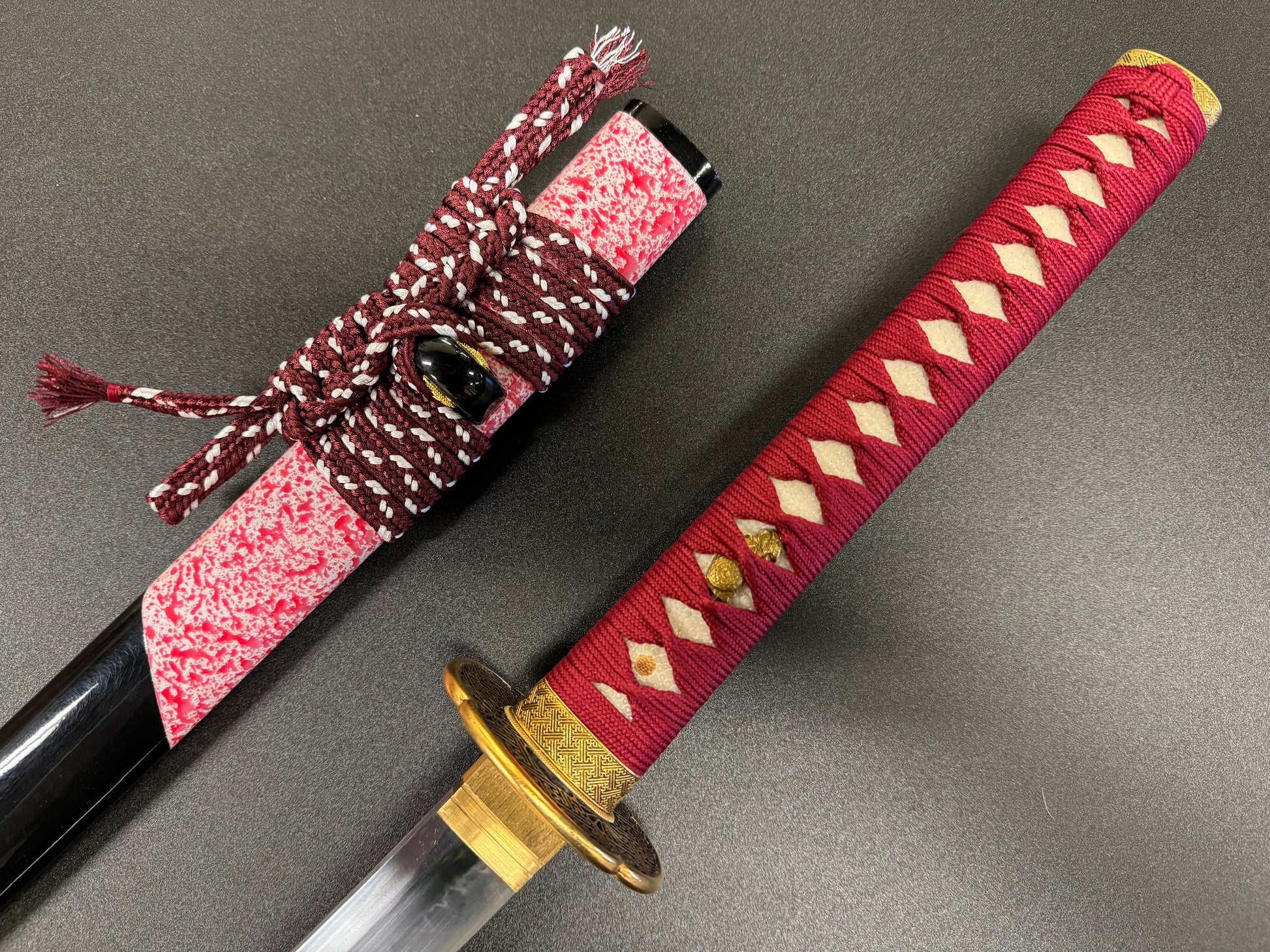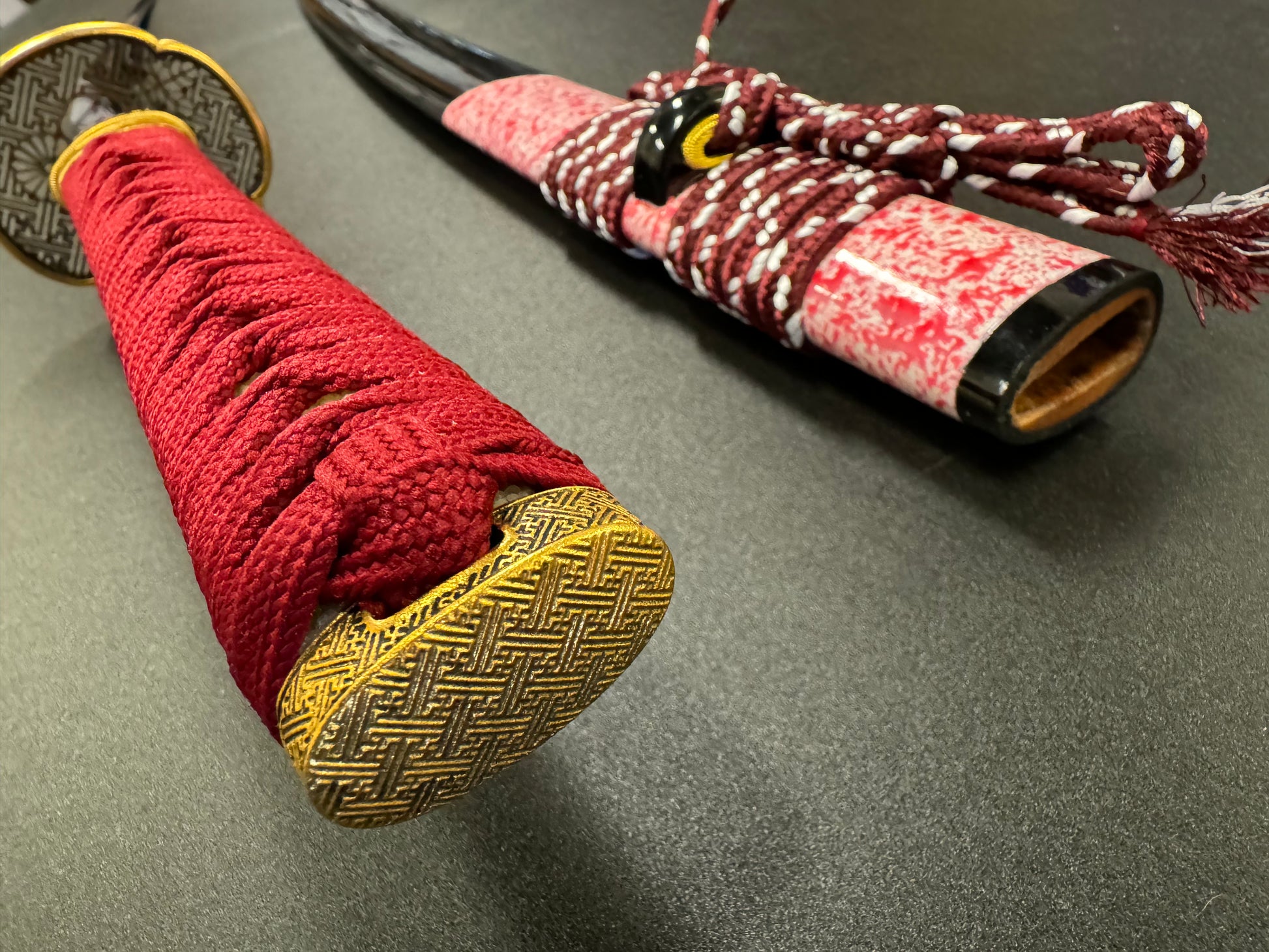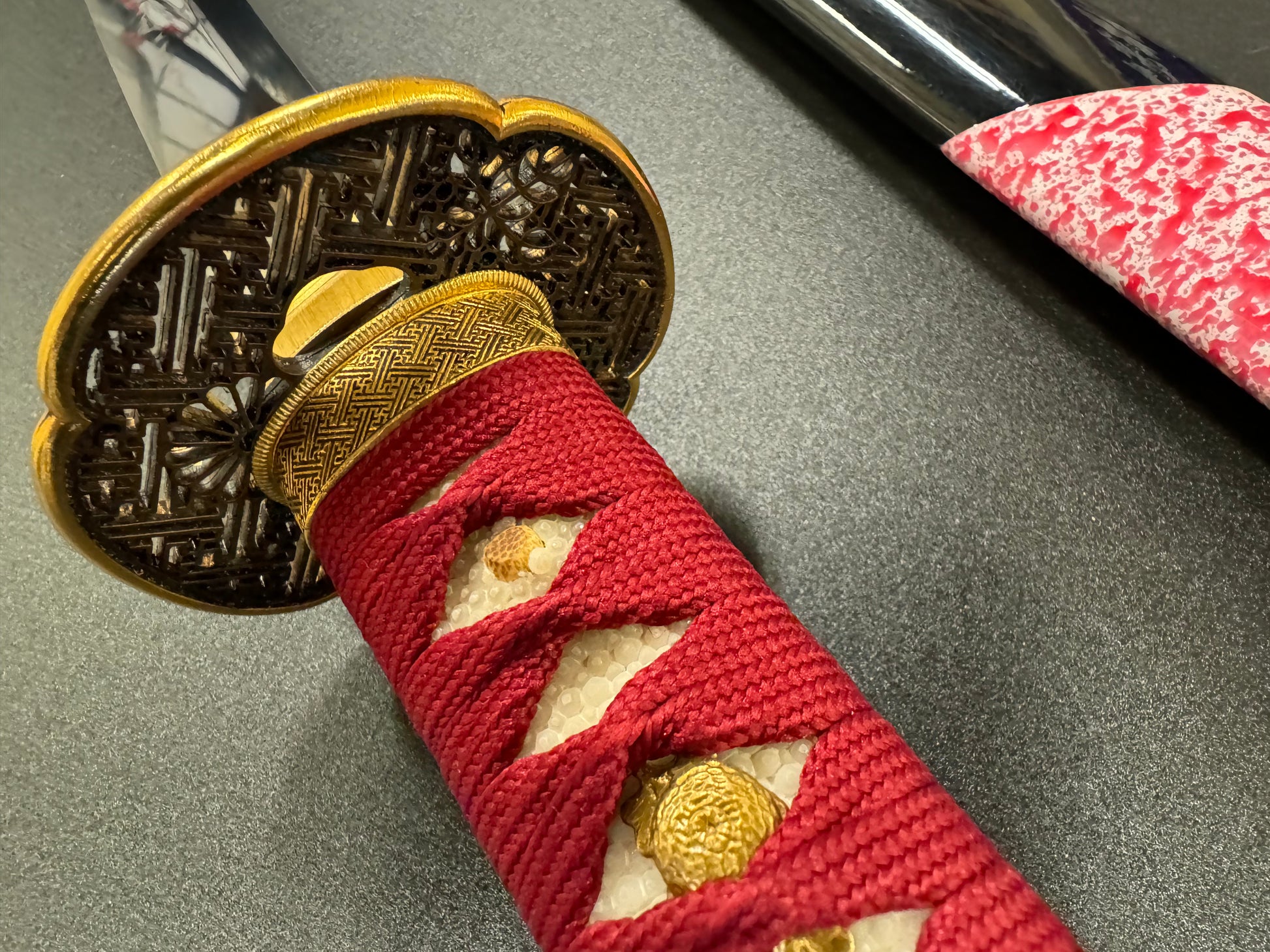 Handle material: Hardwood with genuine white rayskin, red synthetic silk Ito.