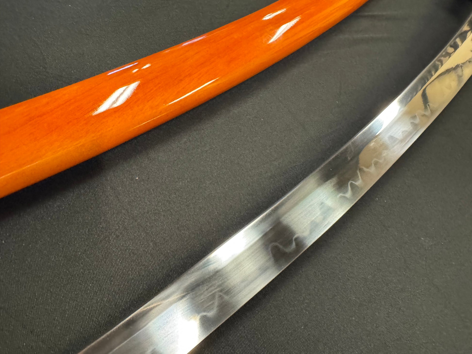 Blade: Full tang, forged T10 tool steel with natural temper line (Hamon)