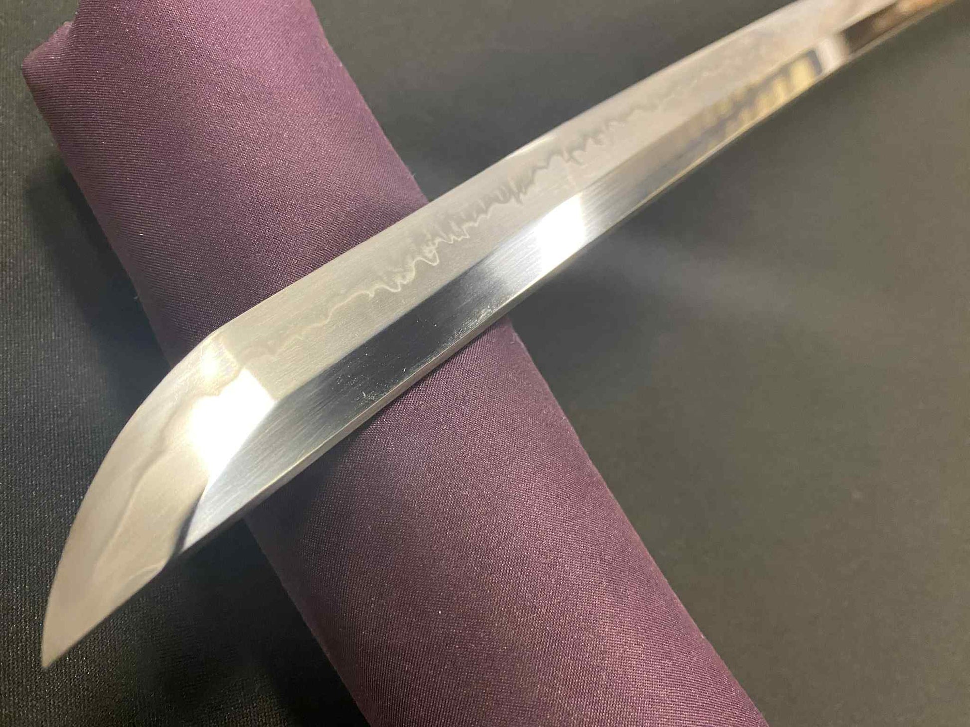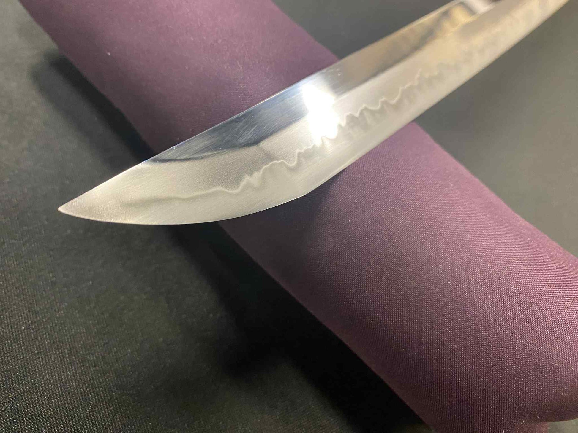 T10 clay tempered blade with Choji hamon and awesome polish.