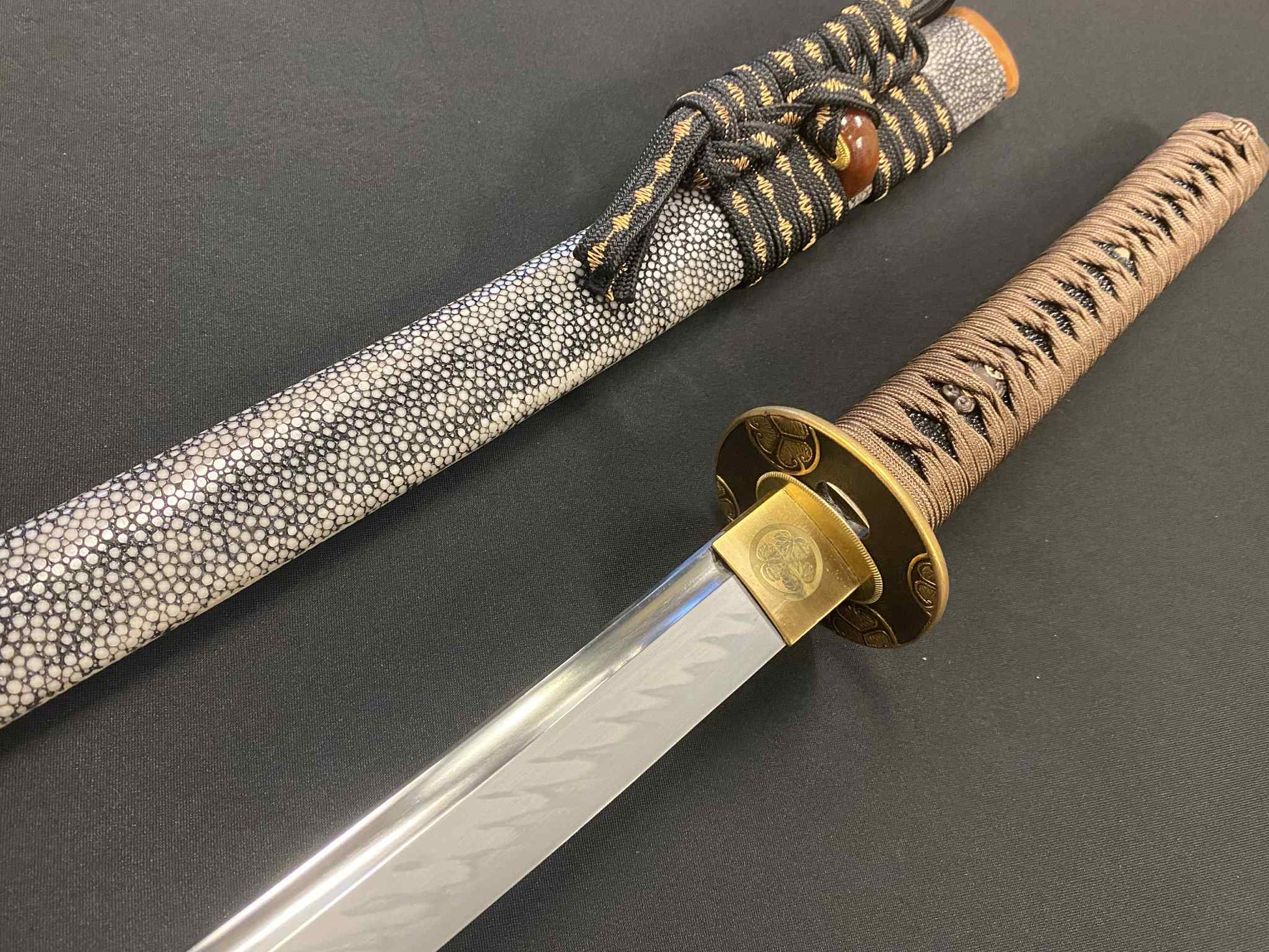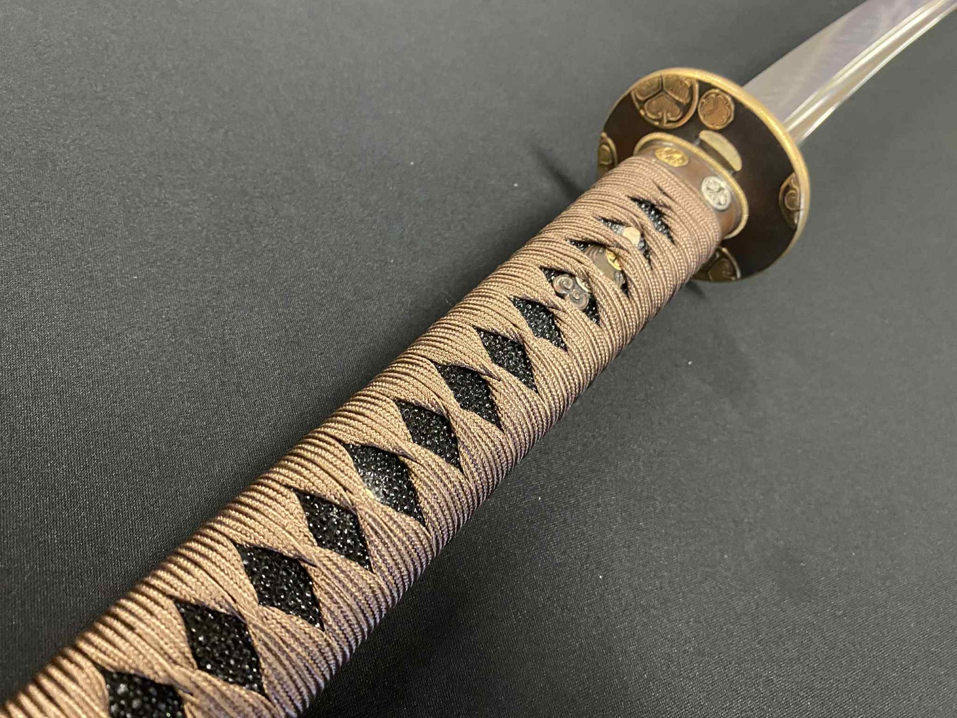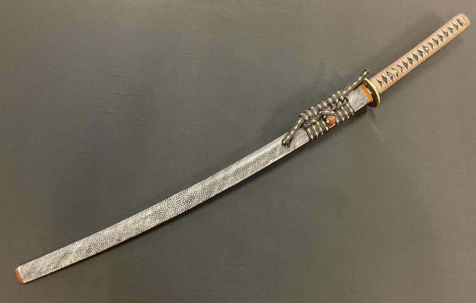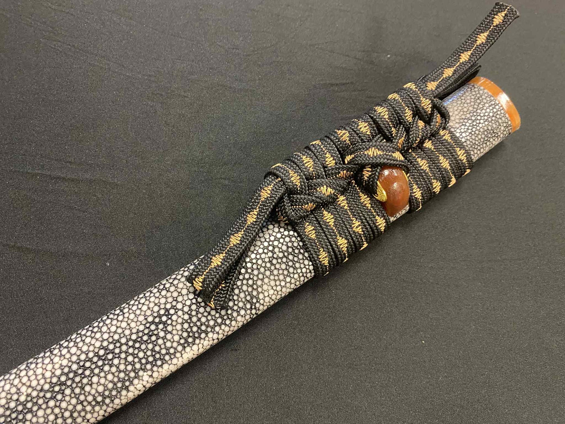 Handle details: Hardwood with authentic black Rayskin, gold bron genuine silk Ito