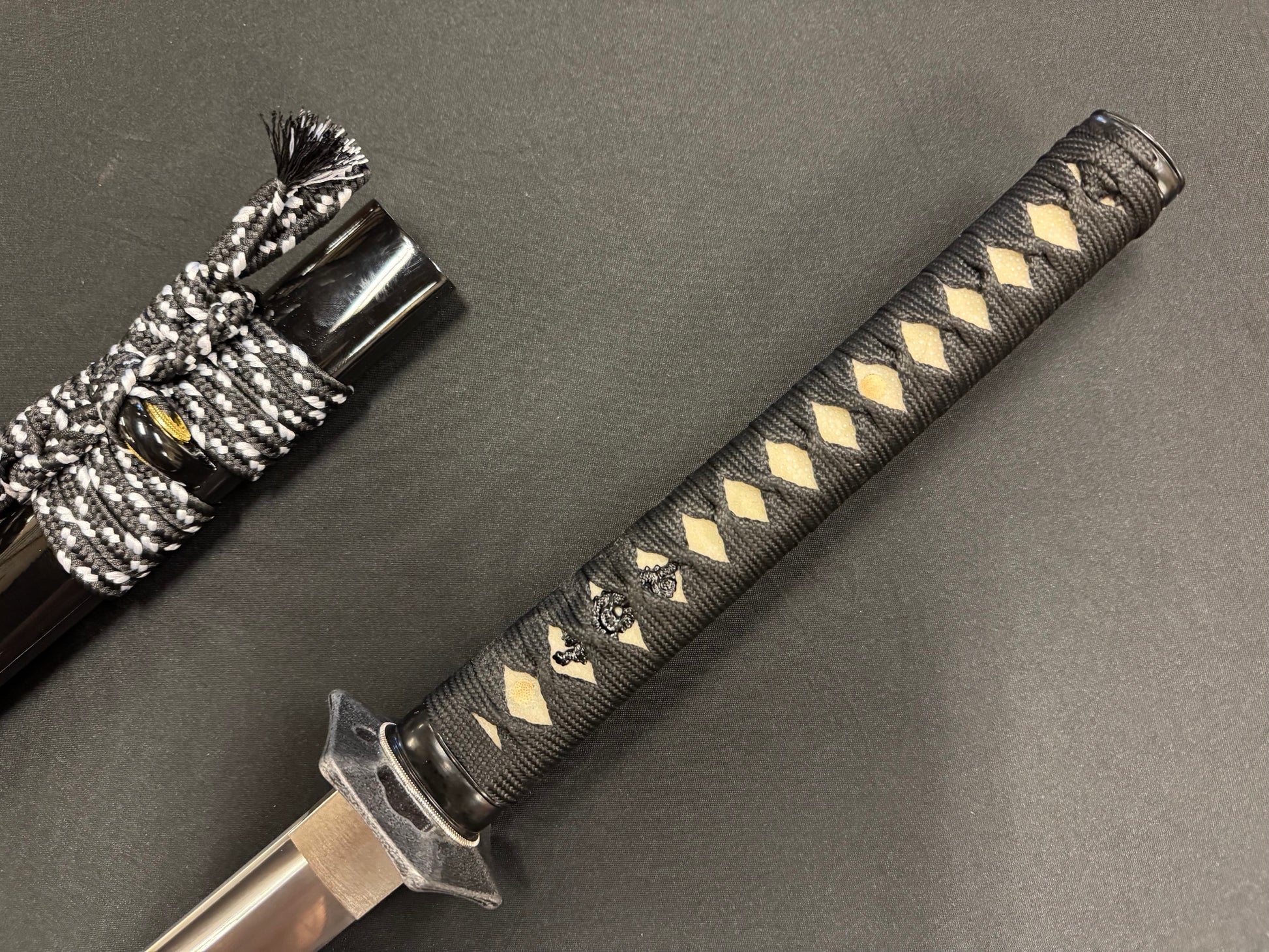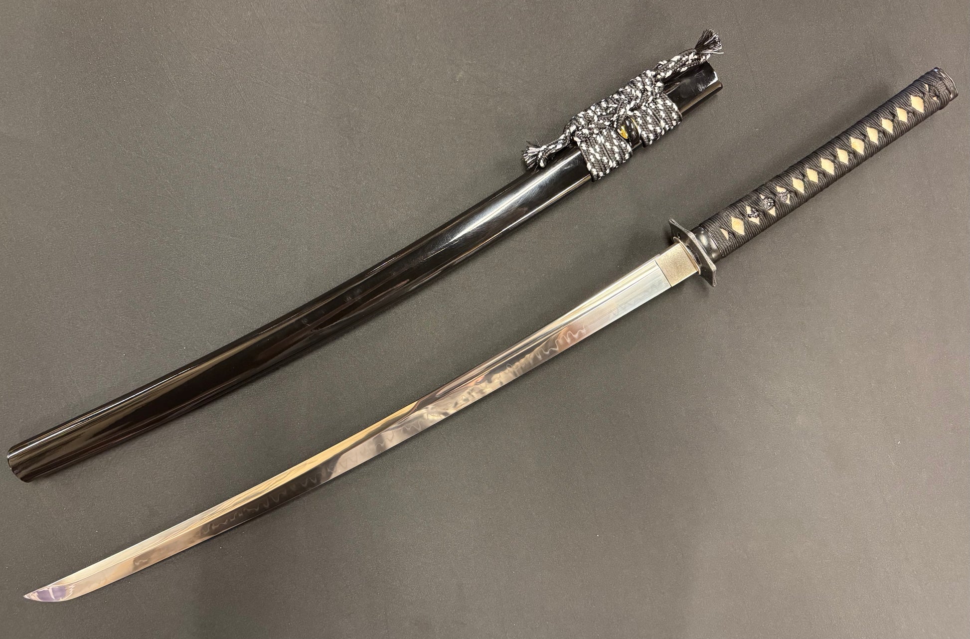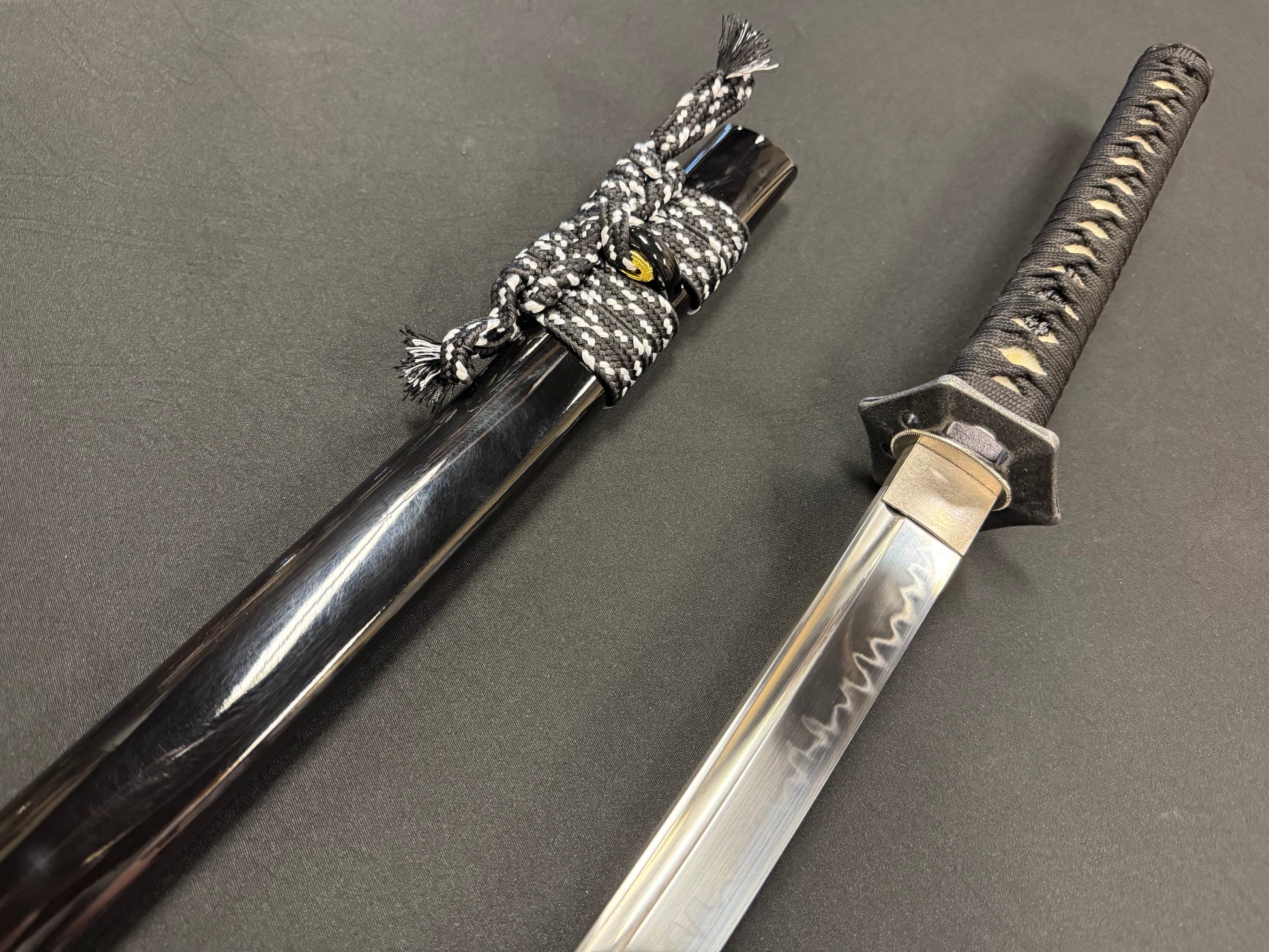 New from Phoenix Armory is the Hanjiro, crafted from durable T10 tool steel. Featuring all black furniture, the Tsuba is the hallmark of this Katana as it’s the style used by the famous Samurai known as Hanjiro. The highlight of this sword is the expertly forged blade. Perfect for beginning cutters or anyone looking for a flexible sword that won’t break the bank.