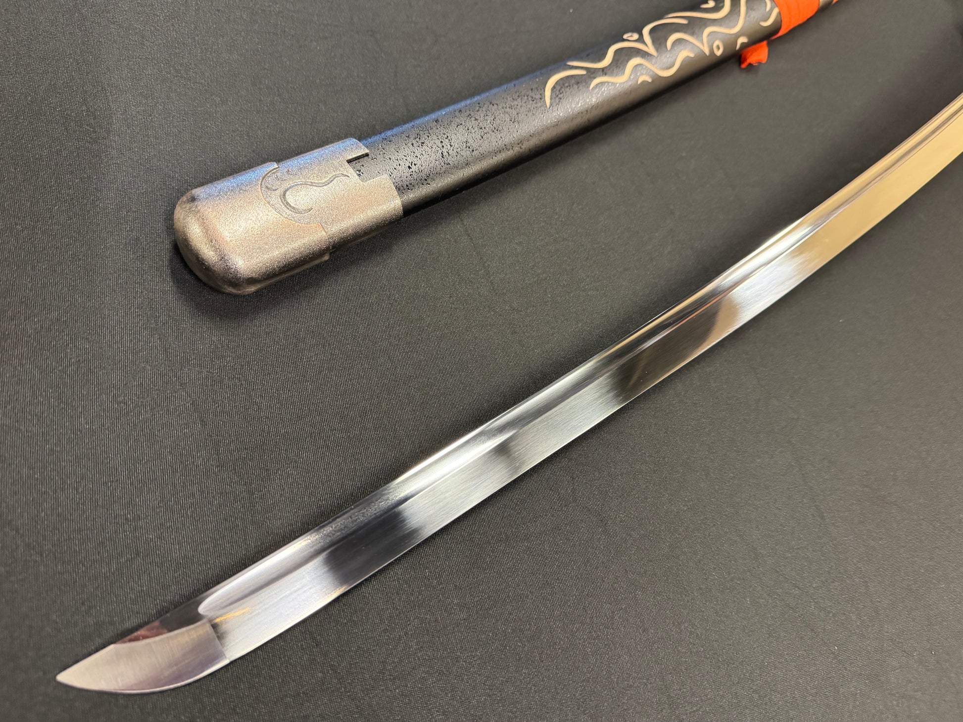 Hardwood Saya, black Ishime texture with carvings