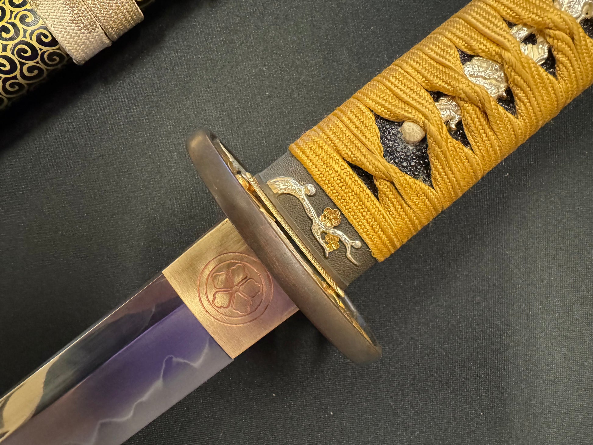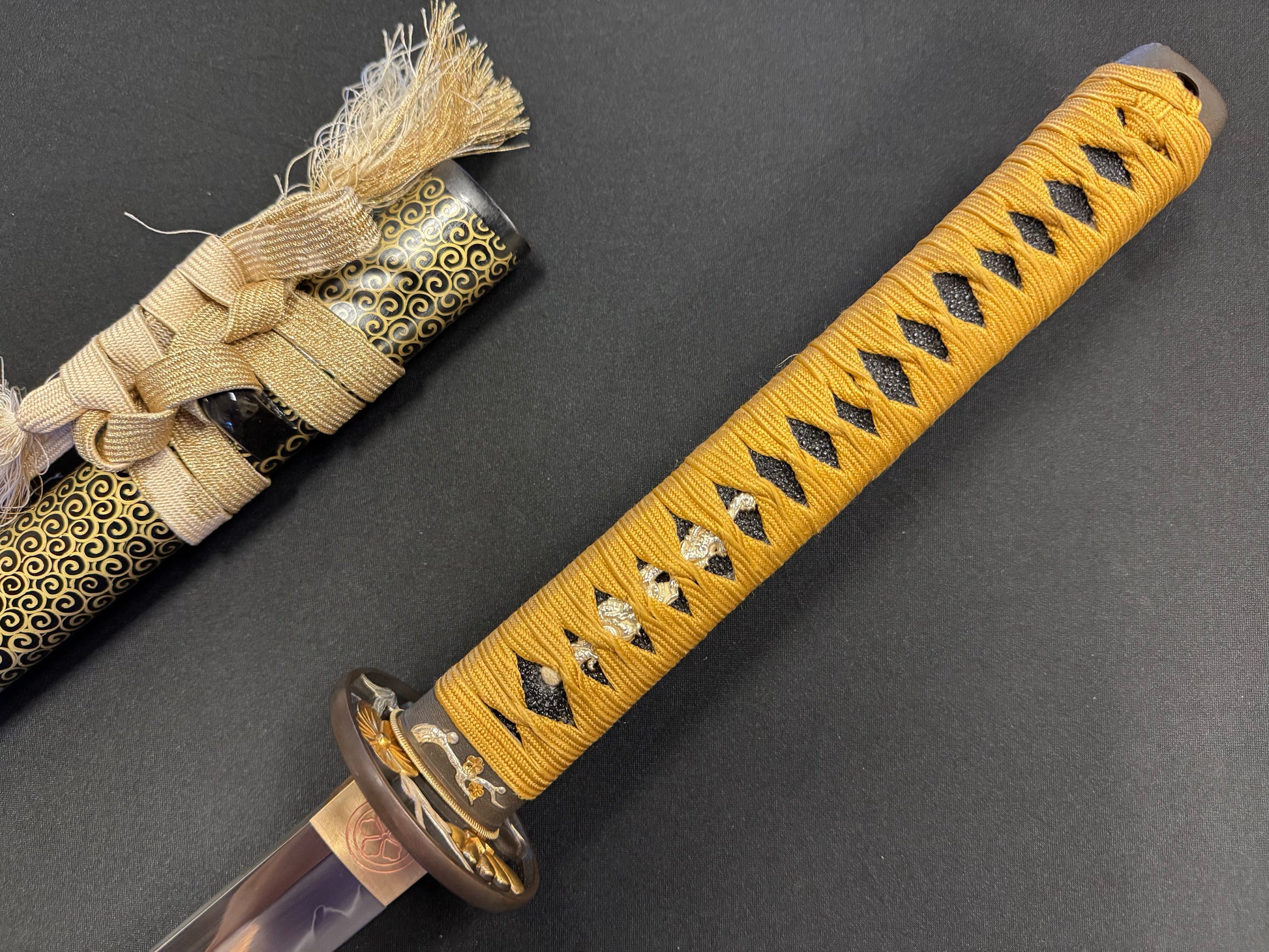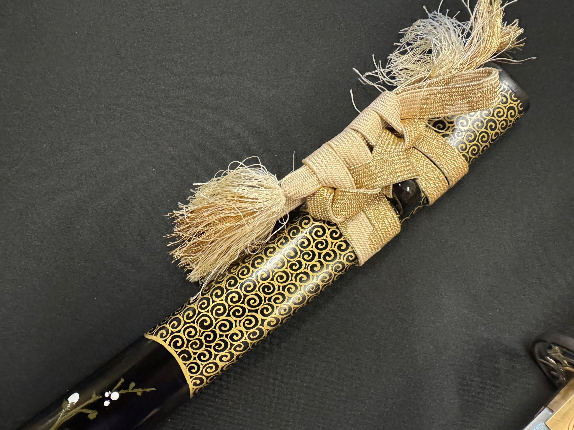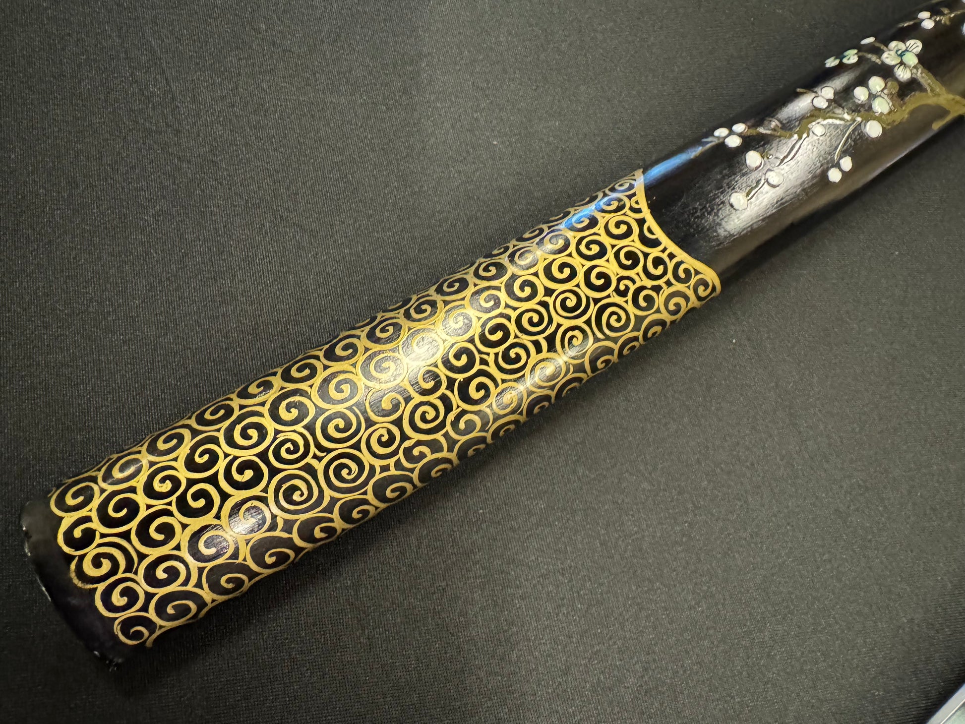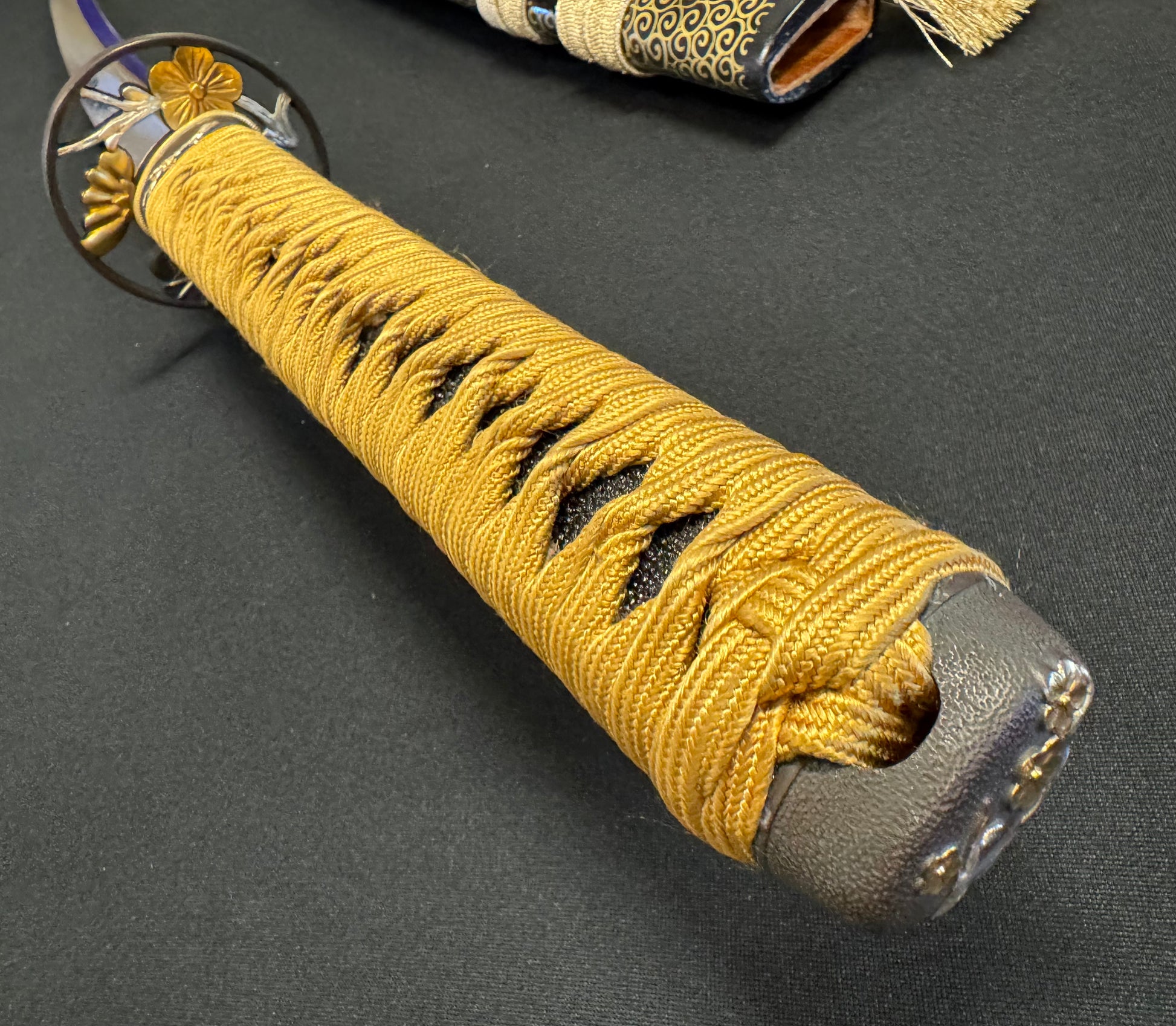 Handle details: Hardwood with authentic black ray skin, golden brown synthetic silk Ito