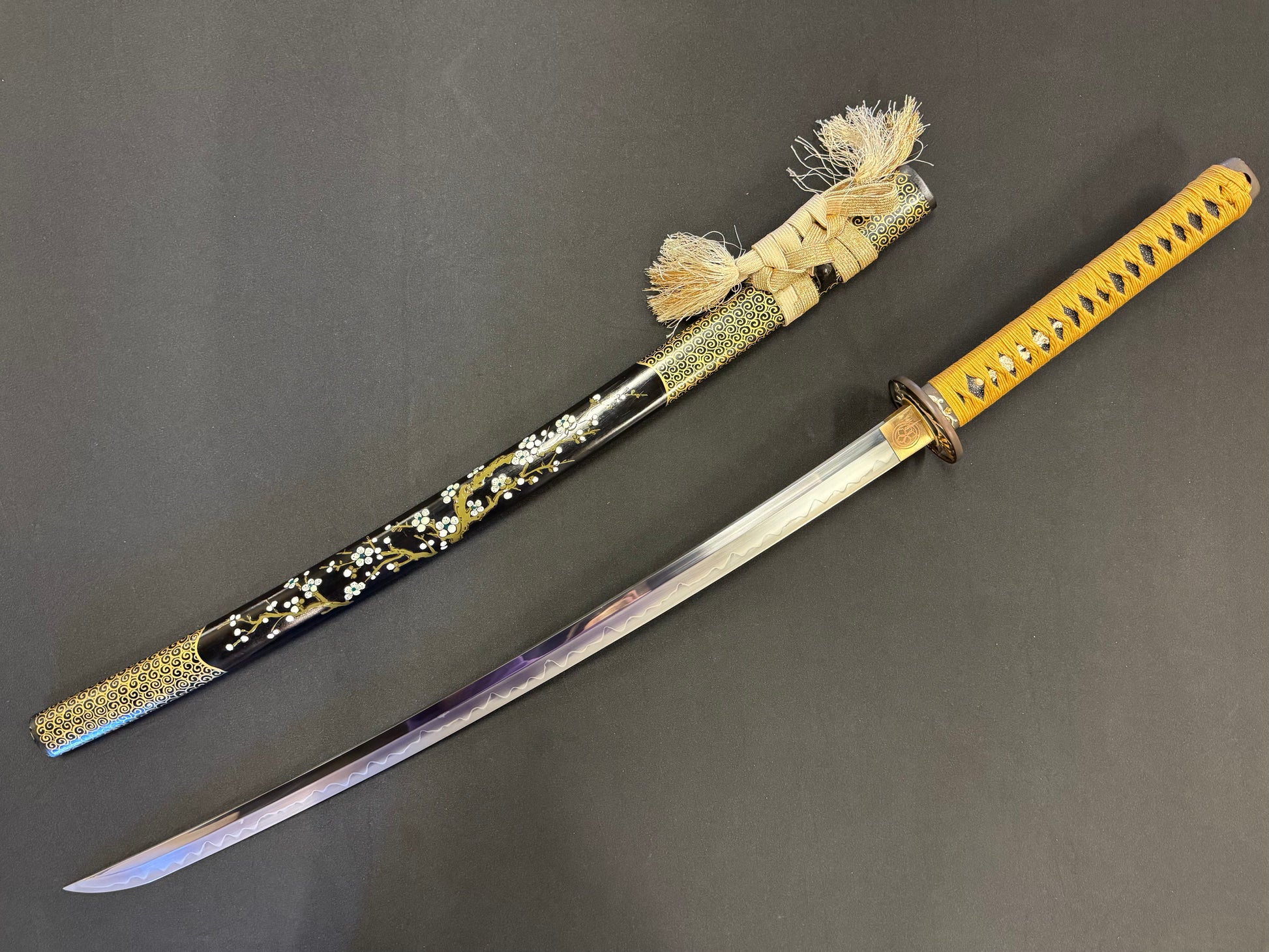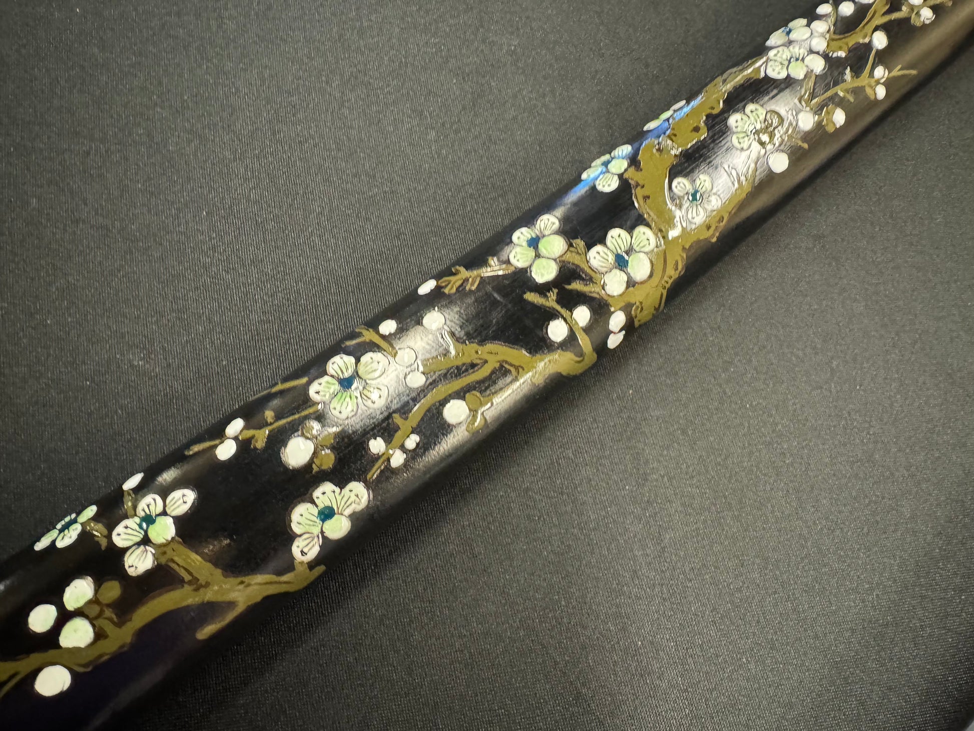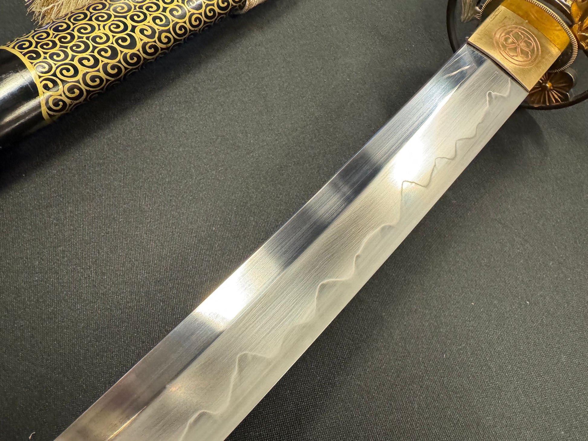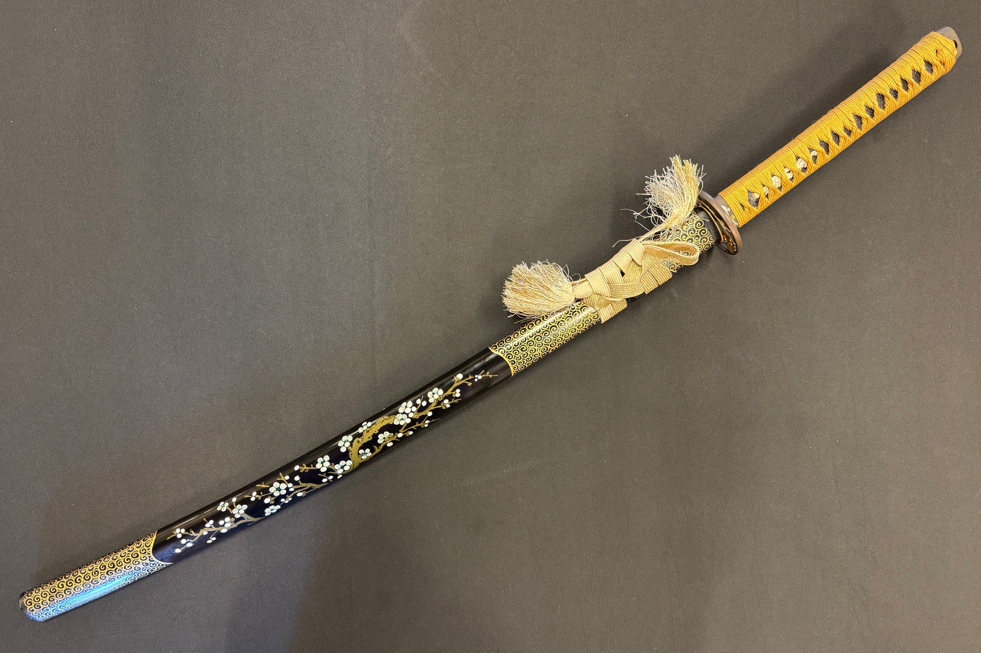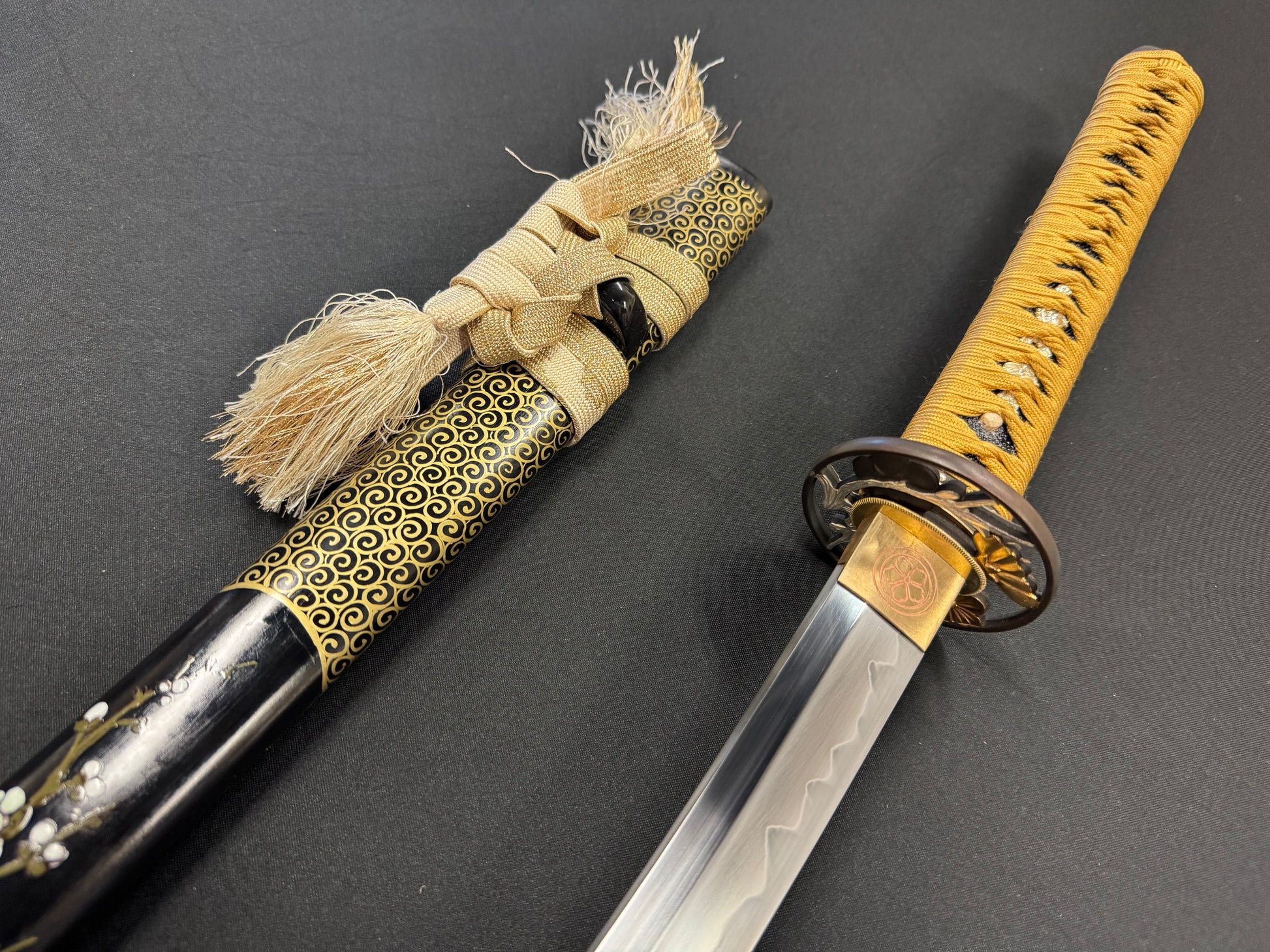Handle details: Hardwood with authentic black ray skin, golden brown synthetic silk Ito