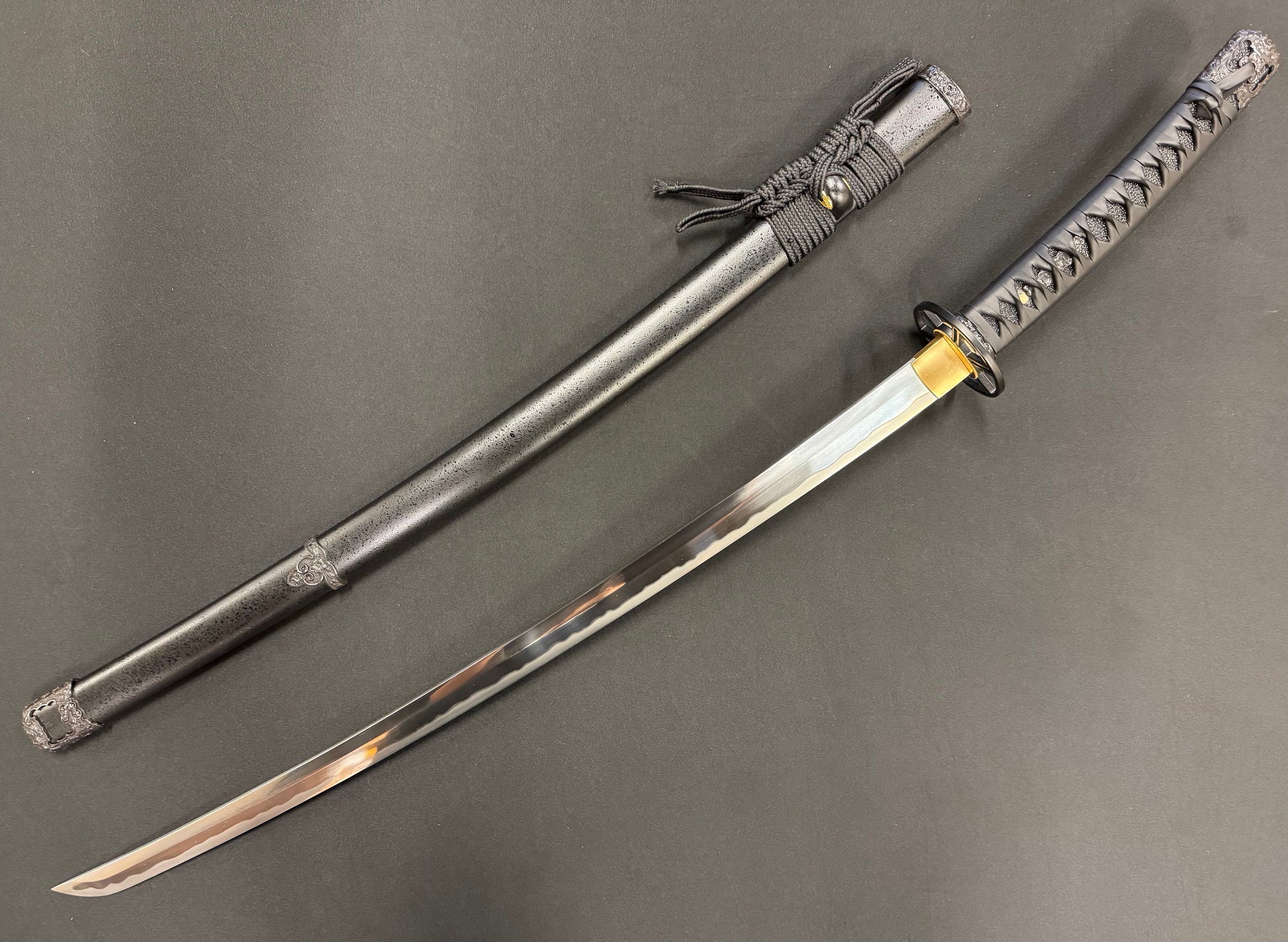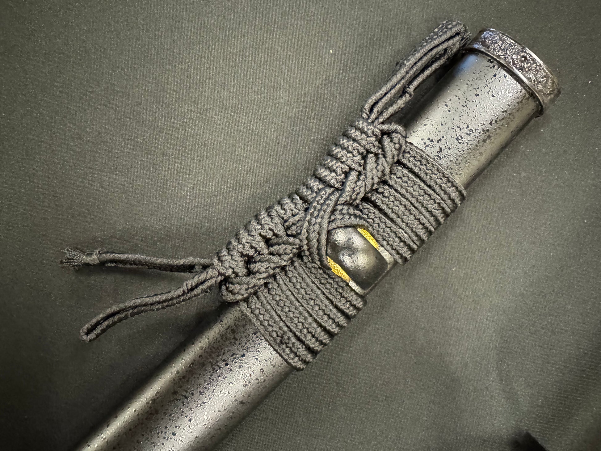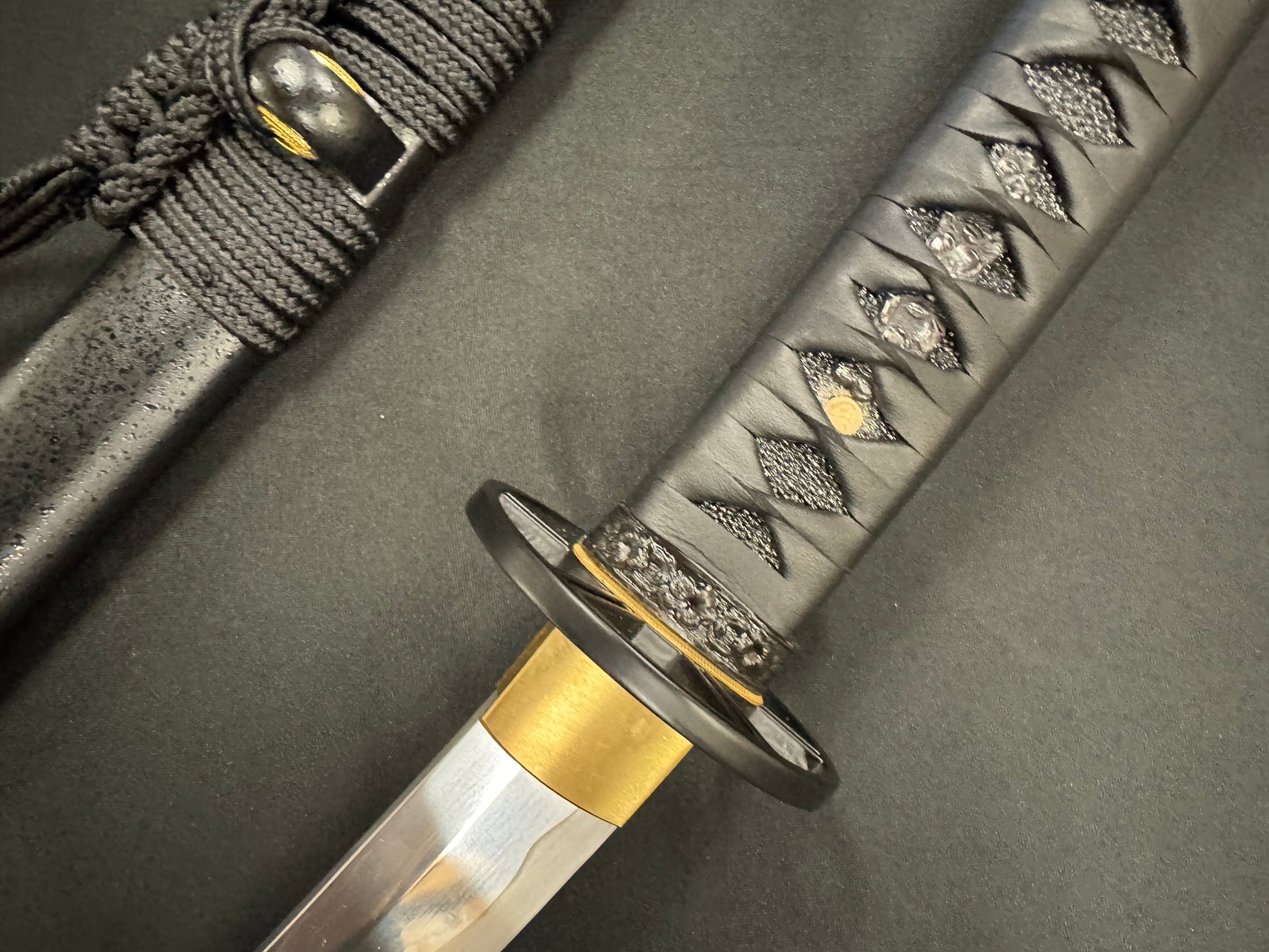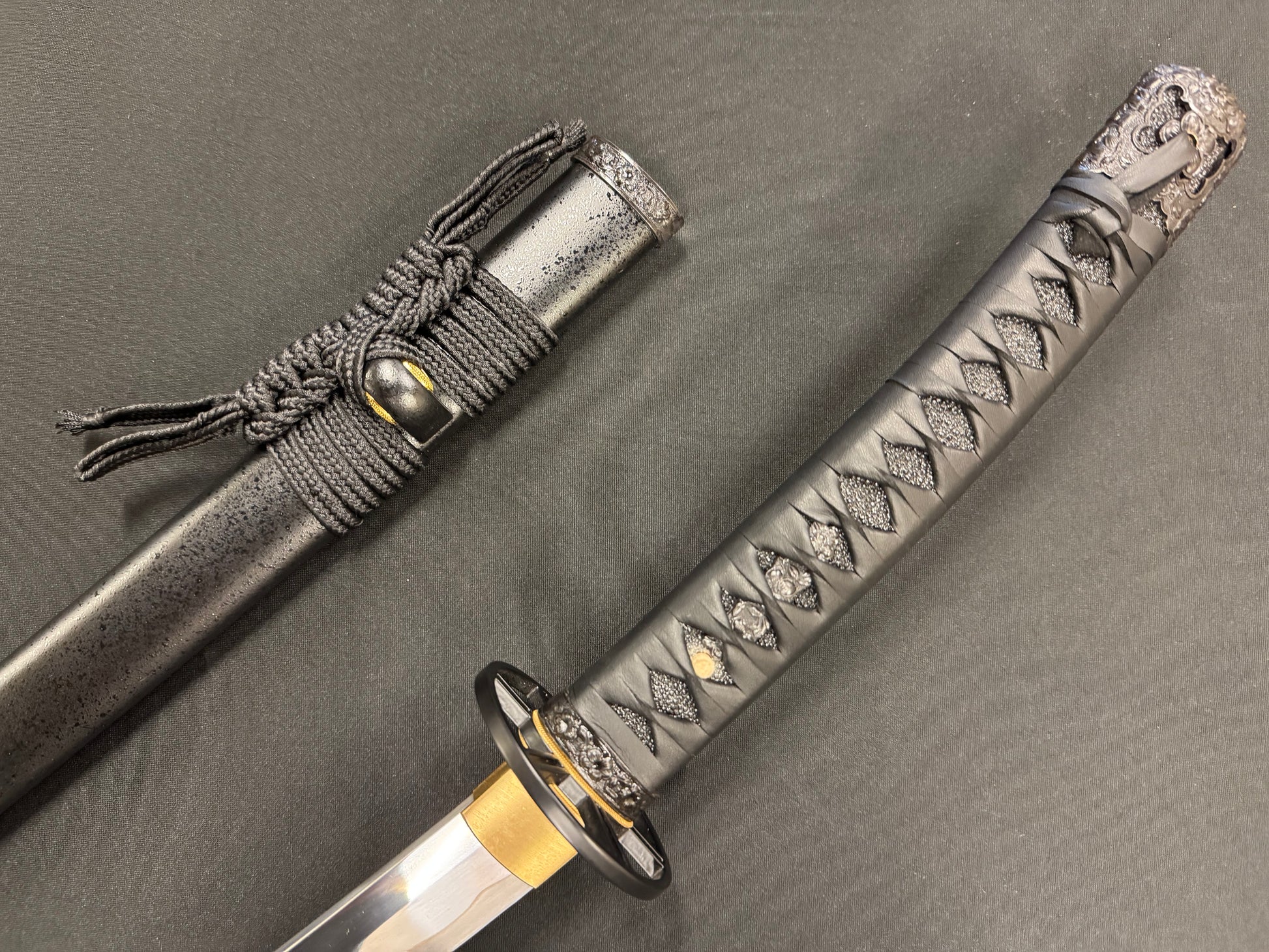 Tsuka - Black leather wrap over black ray skin
