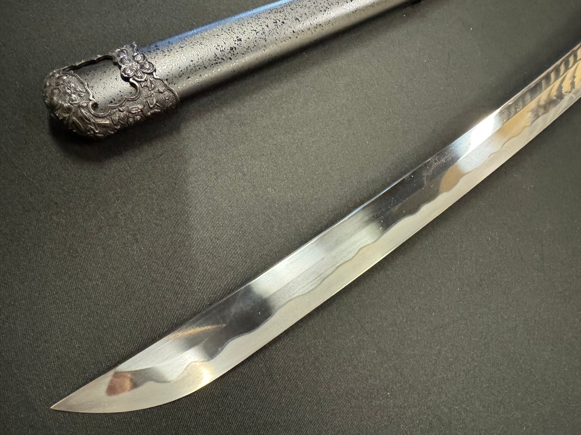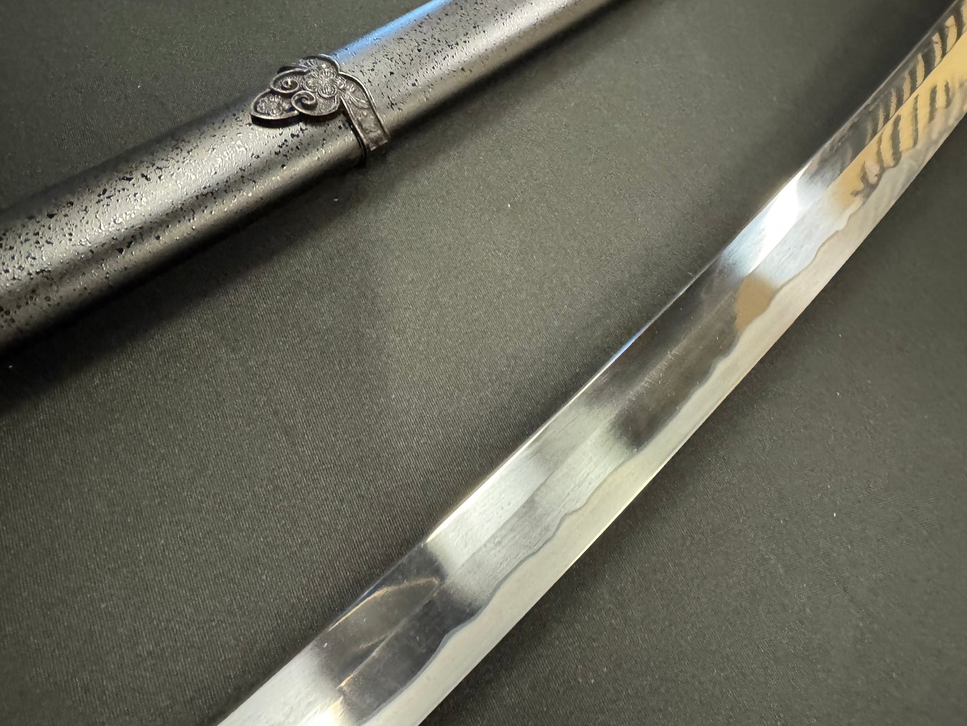 Blade: forged S7, full tang. Brushed Hamon temper line