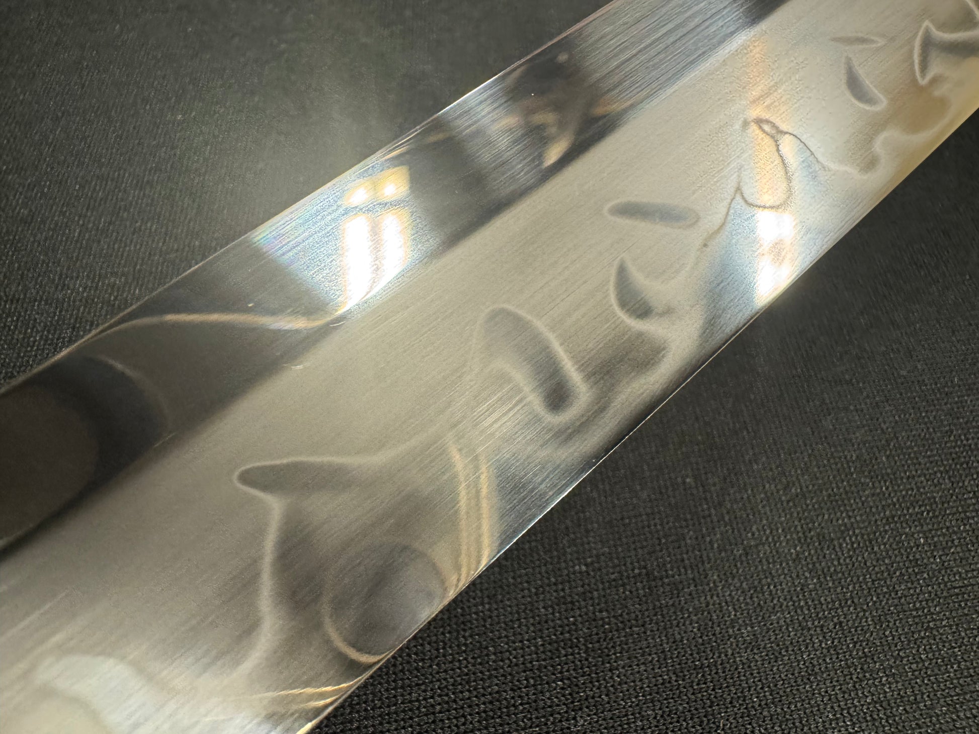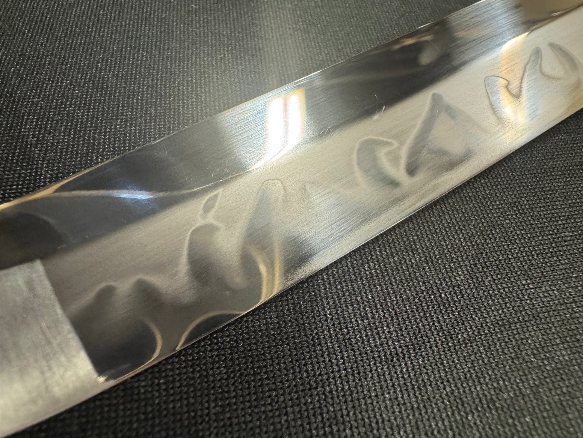 Blade: Forged T10 with natural active Hamon, full tang