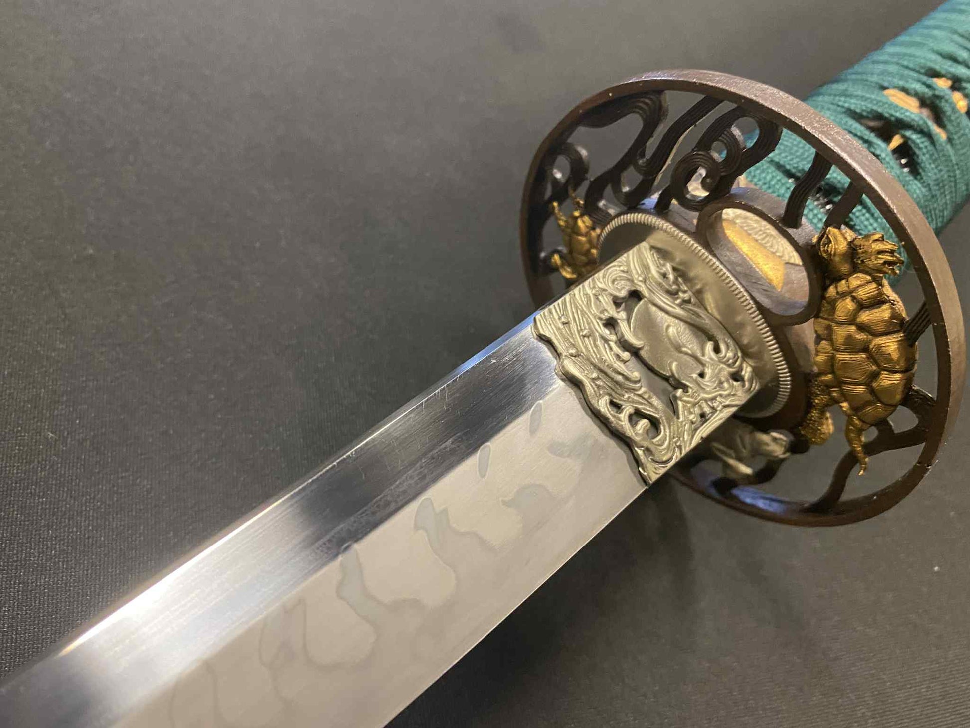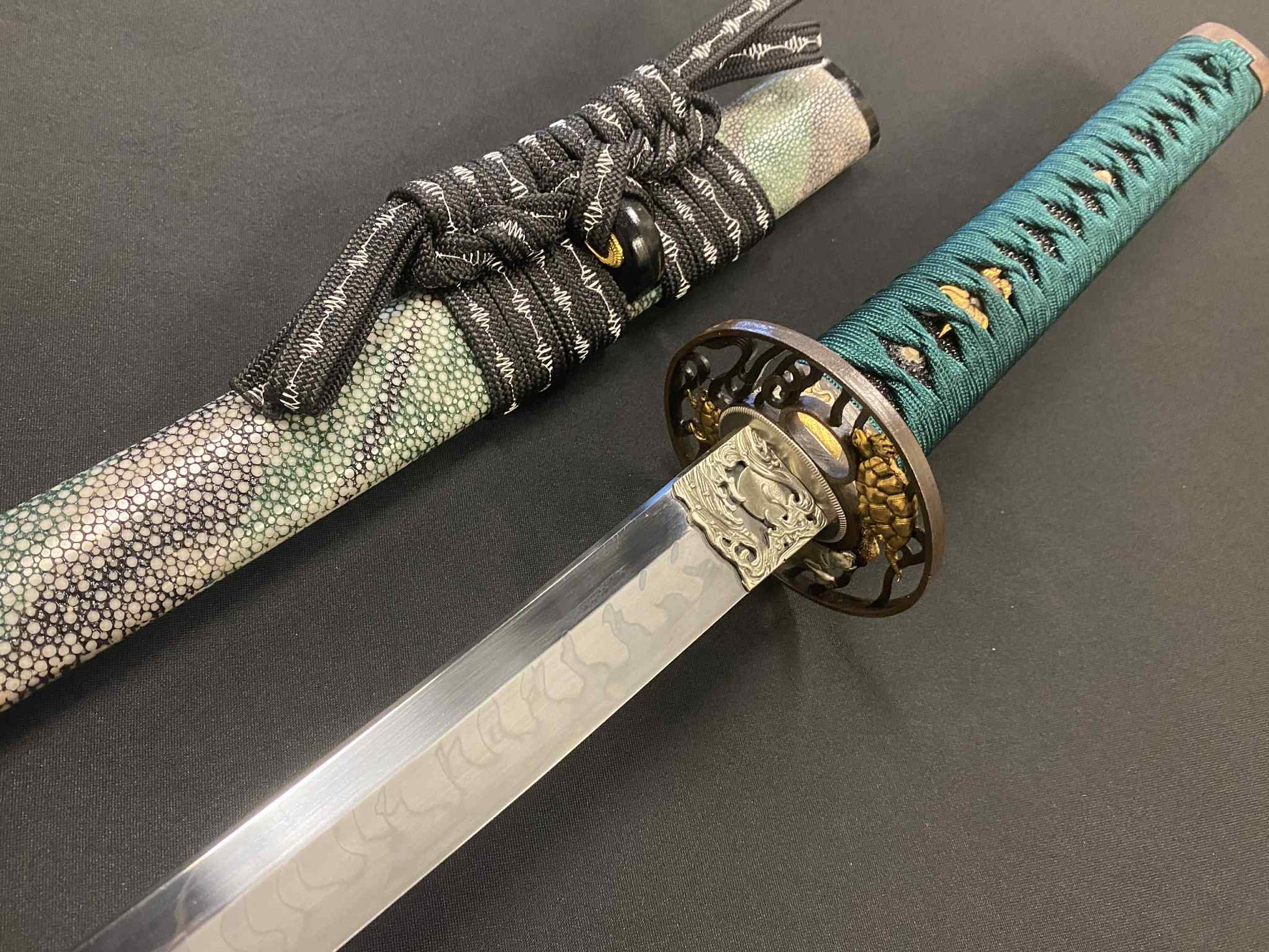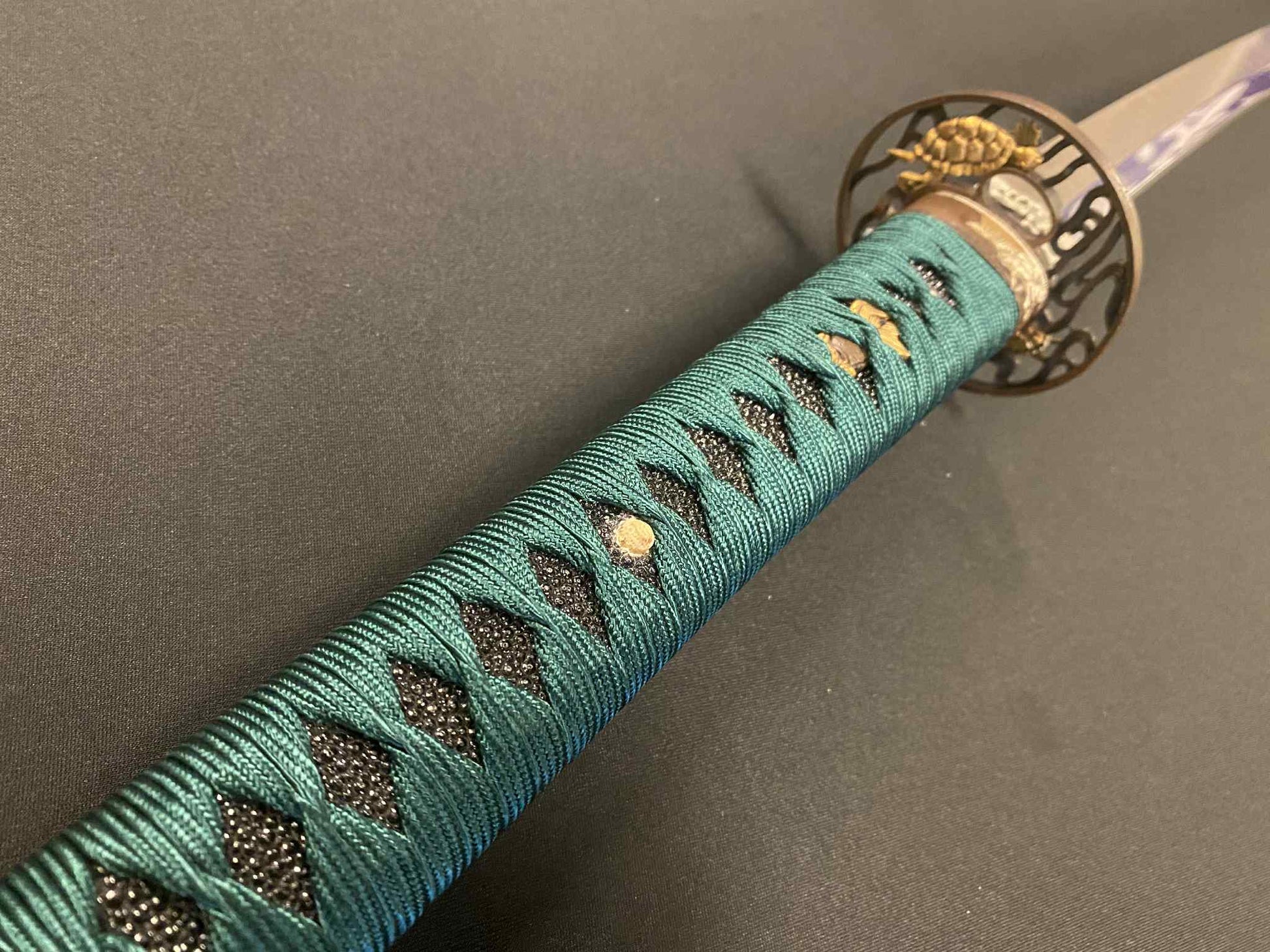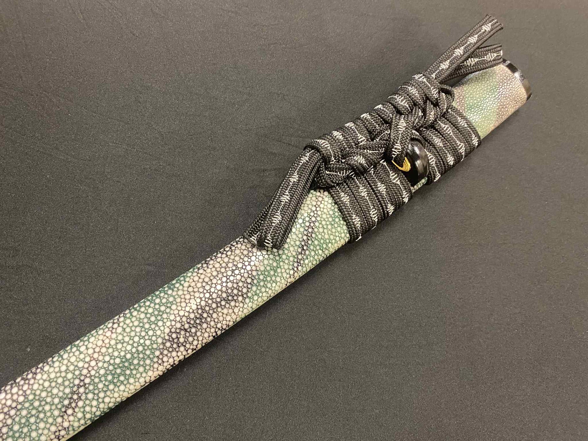 Handle details: Hardwood with authentic black skin, green genuine silk Ito
