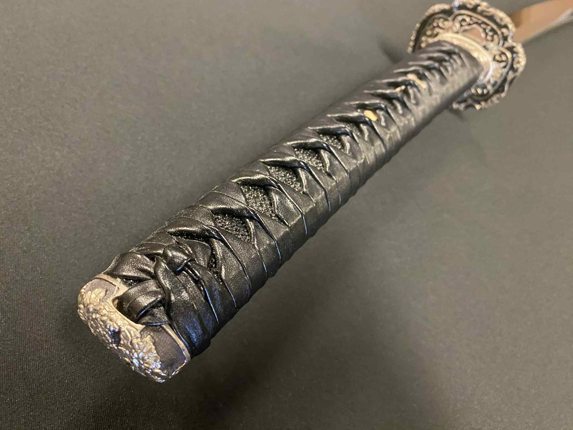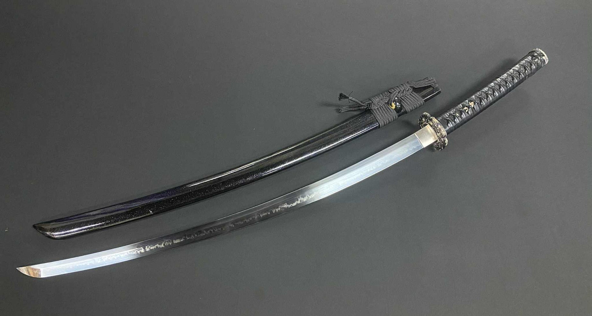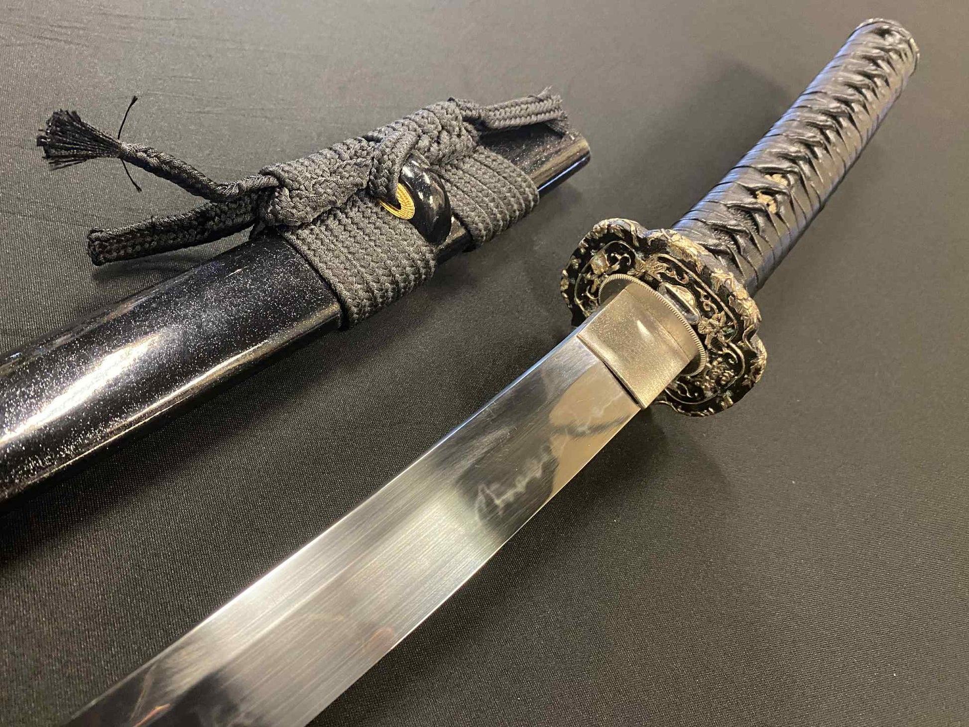 Phoenix Armory Katana - Spring Arch - deep sori, T10 Clay Tempered Choji hamon, Brass Fittings