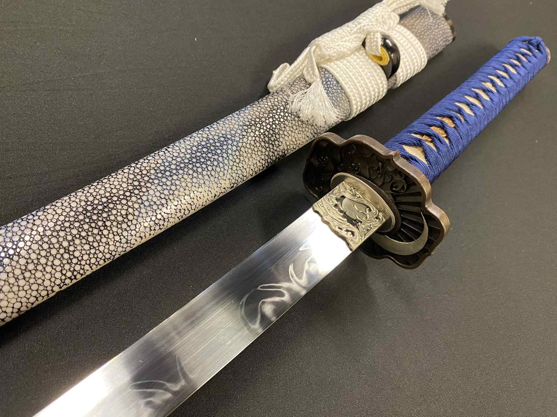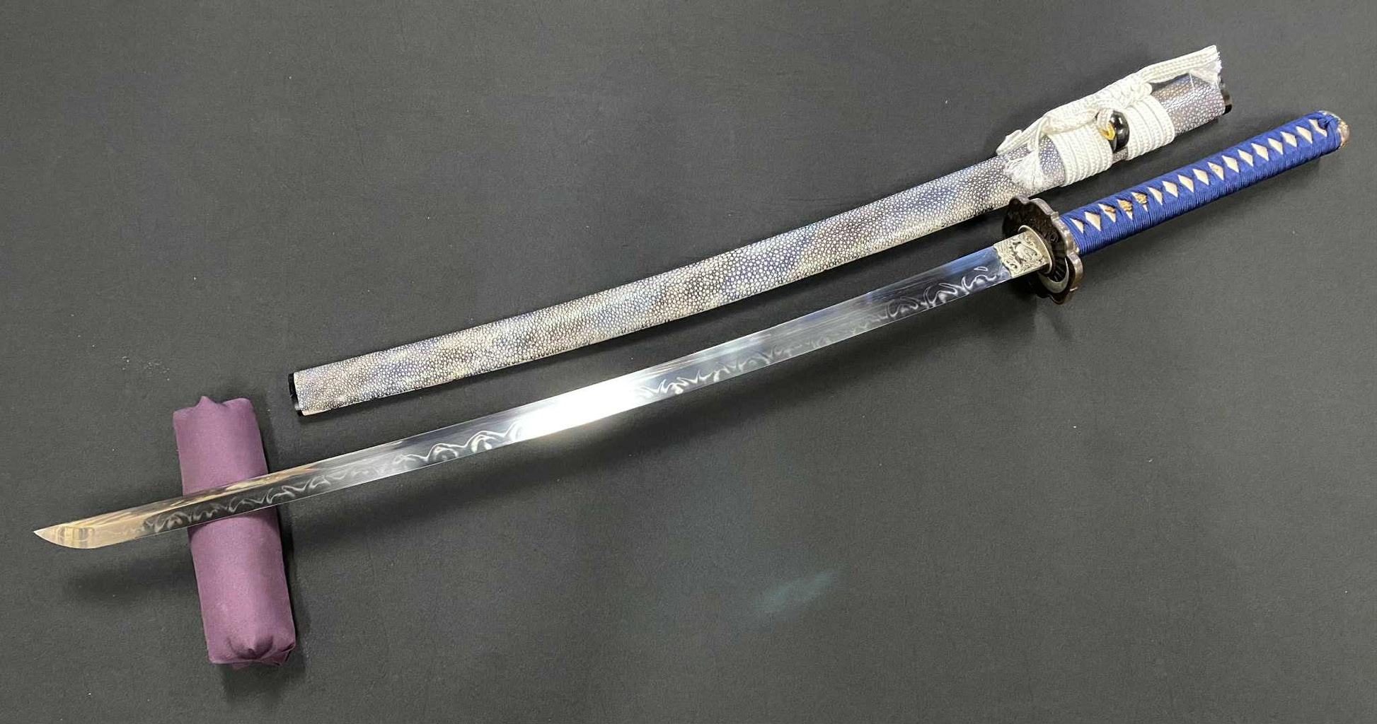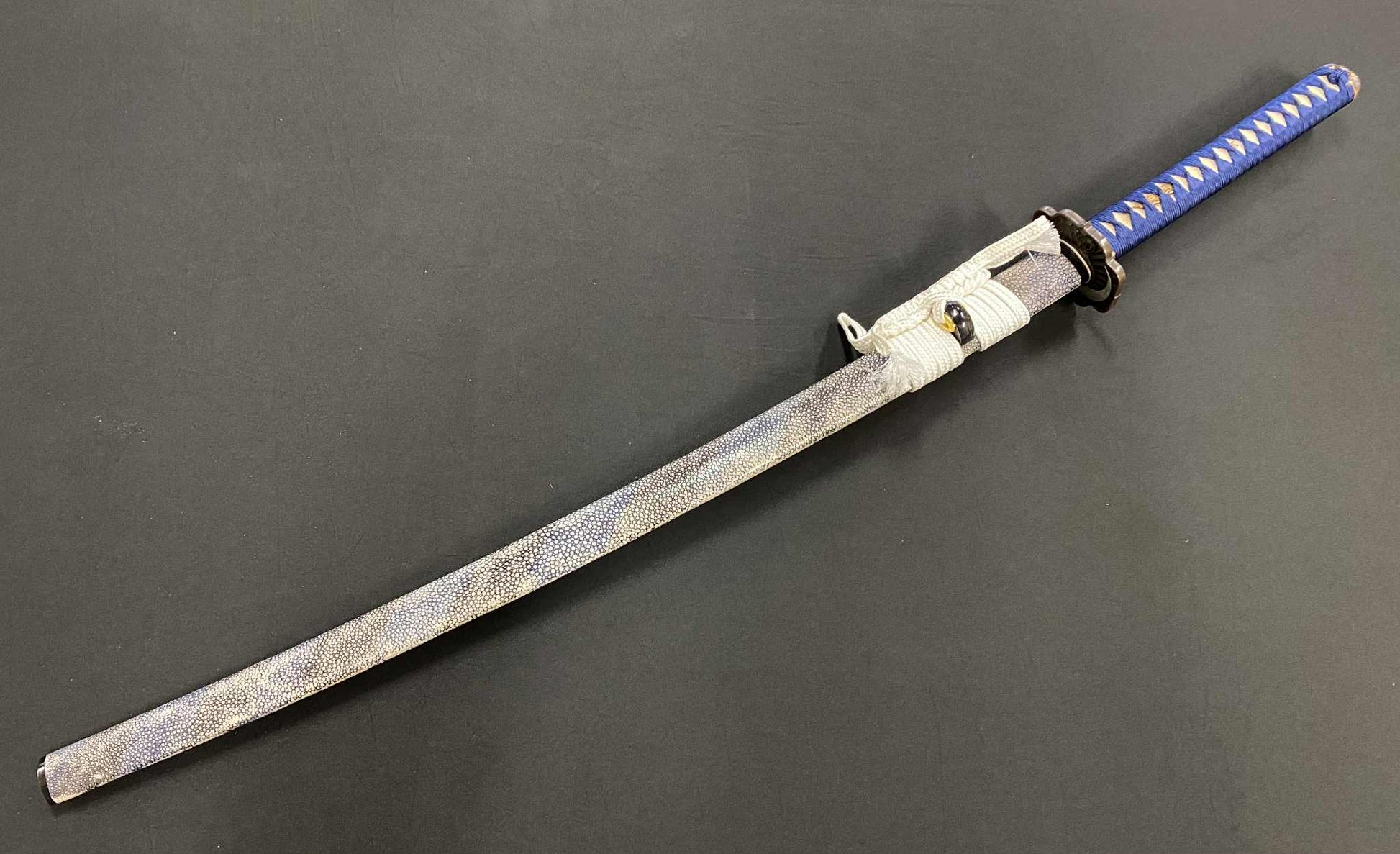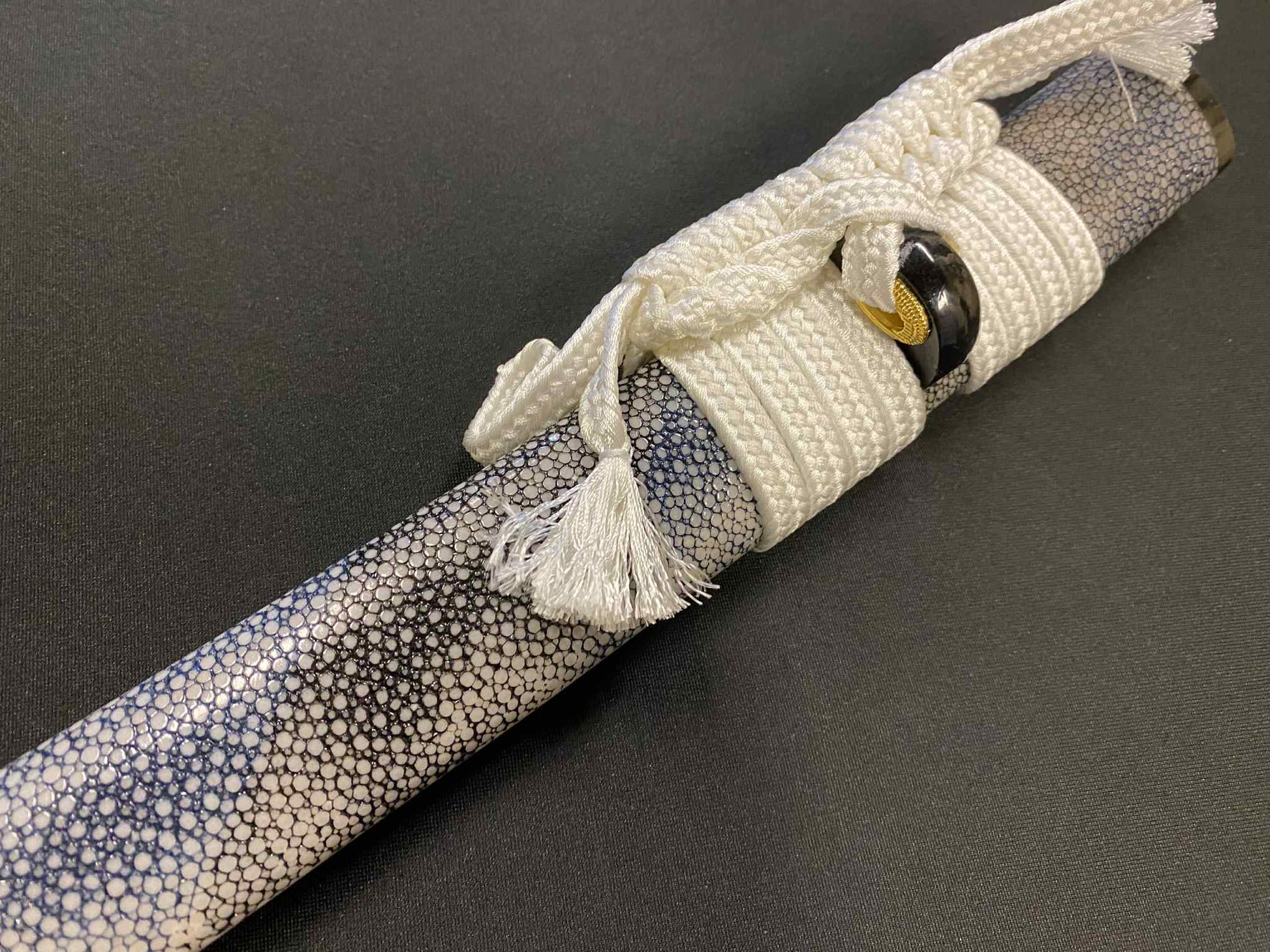 This version of the venerable Sun and Moon themed Katana from Phoenix Arms features a beautiful ray skin wrapped Saya.