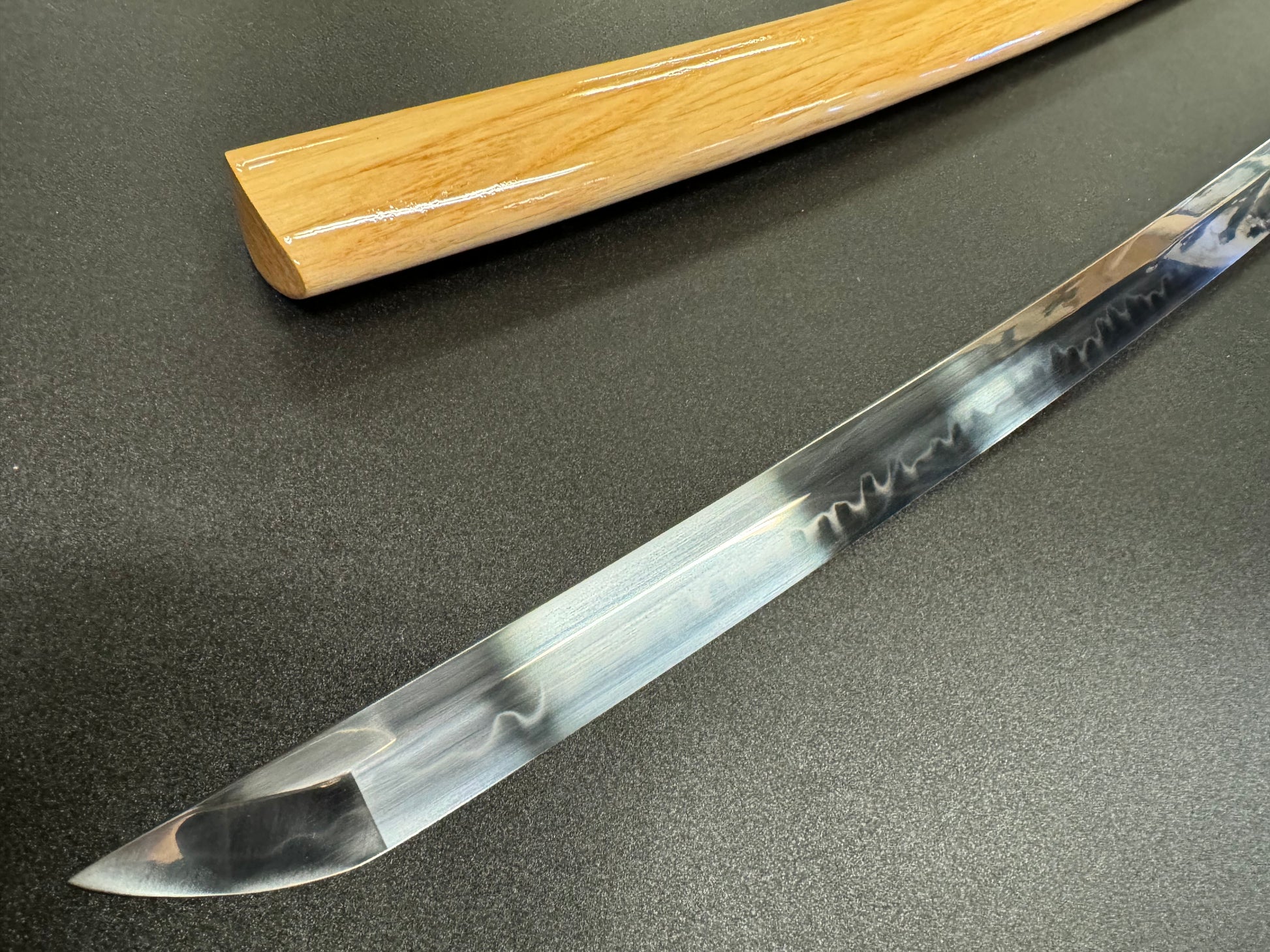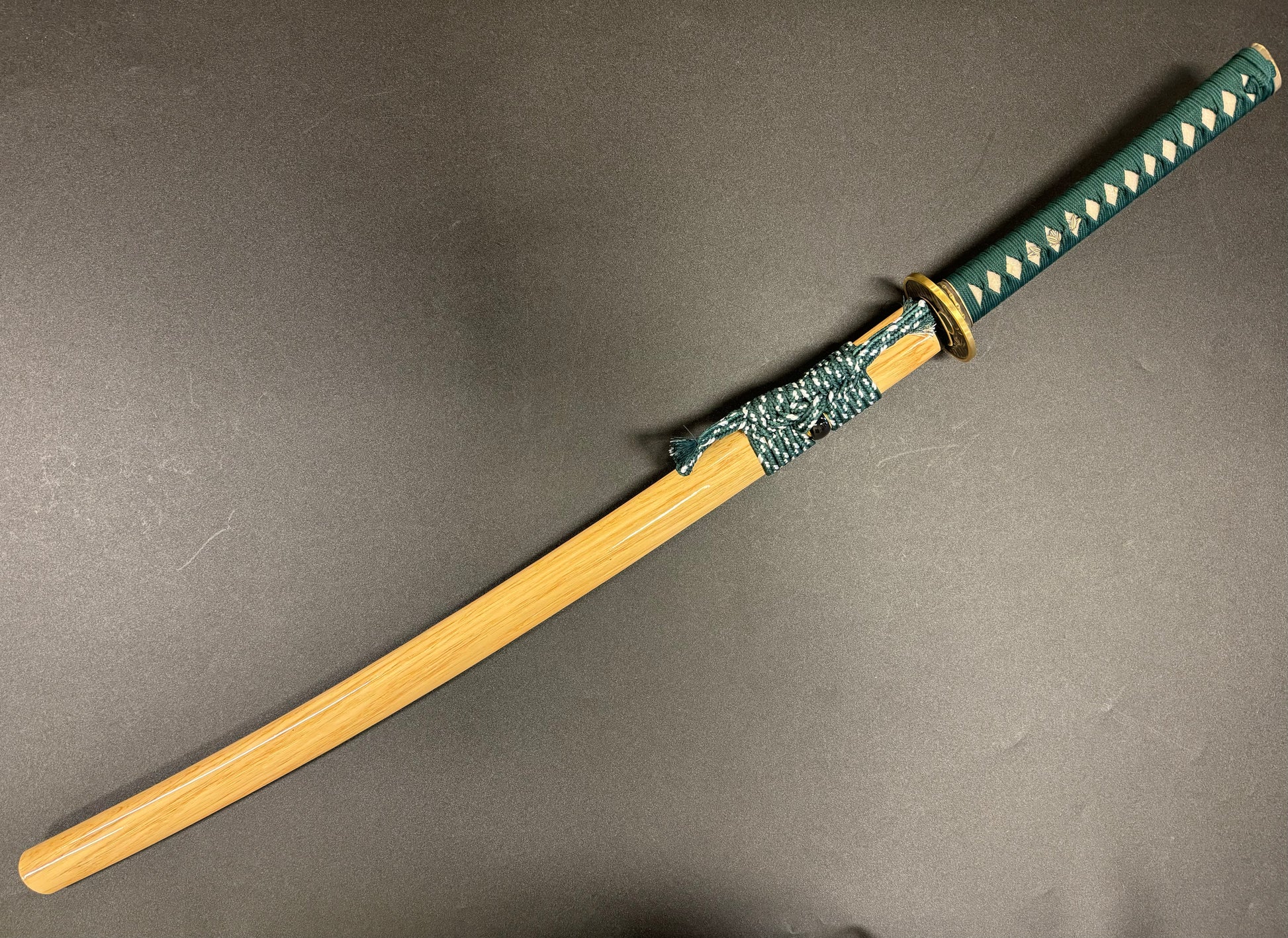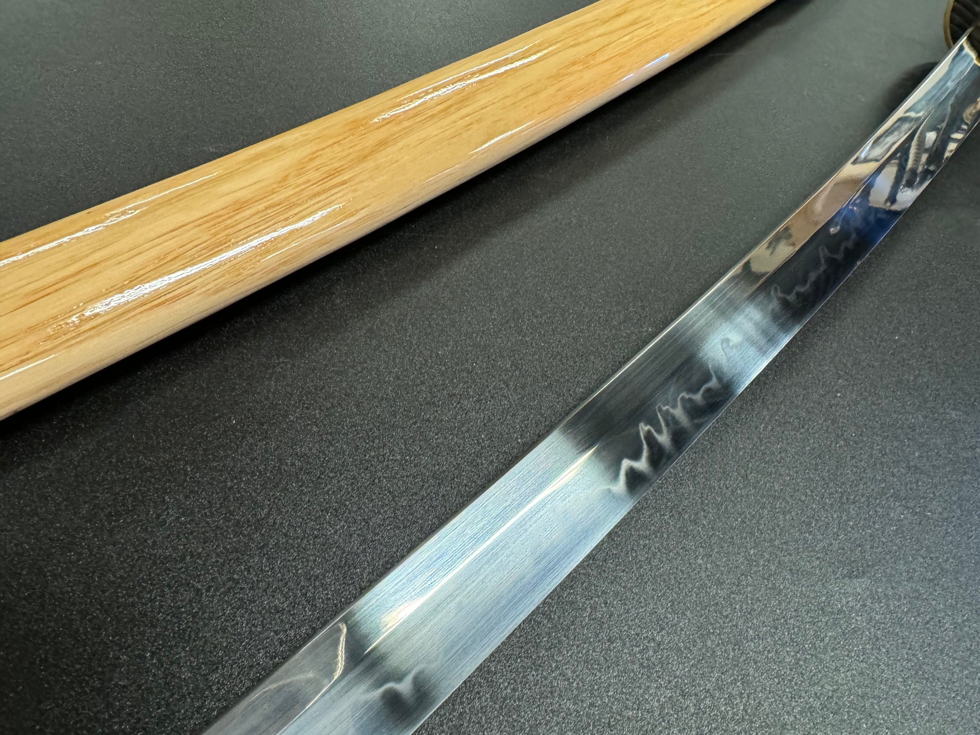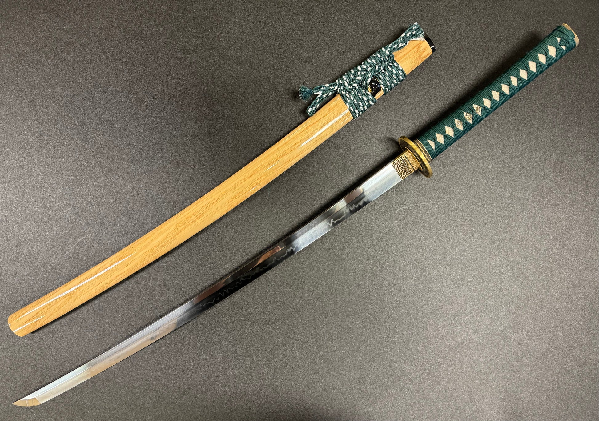 T10 steel with natural Hamon, brass furniture featuring a bamboo theme.