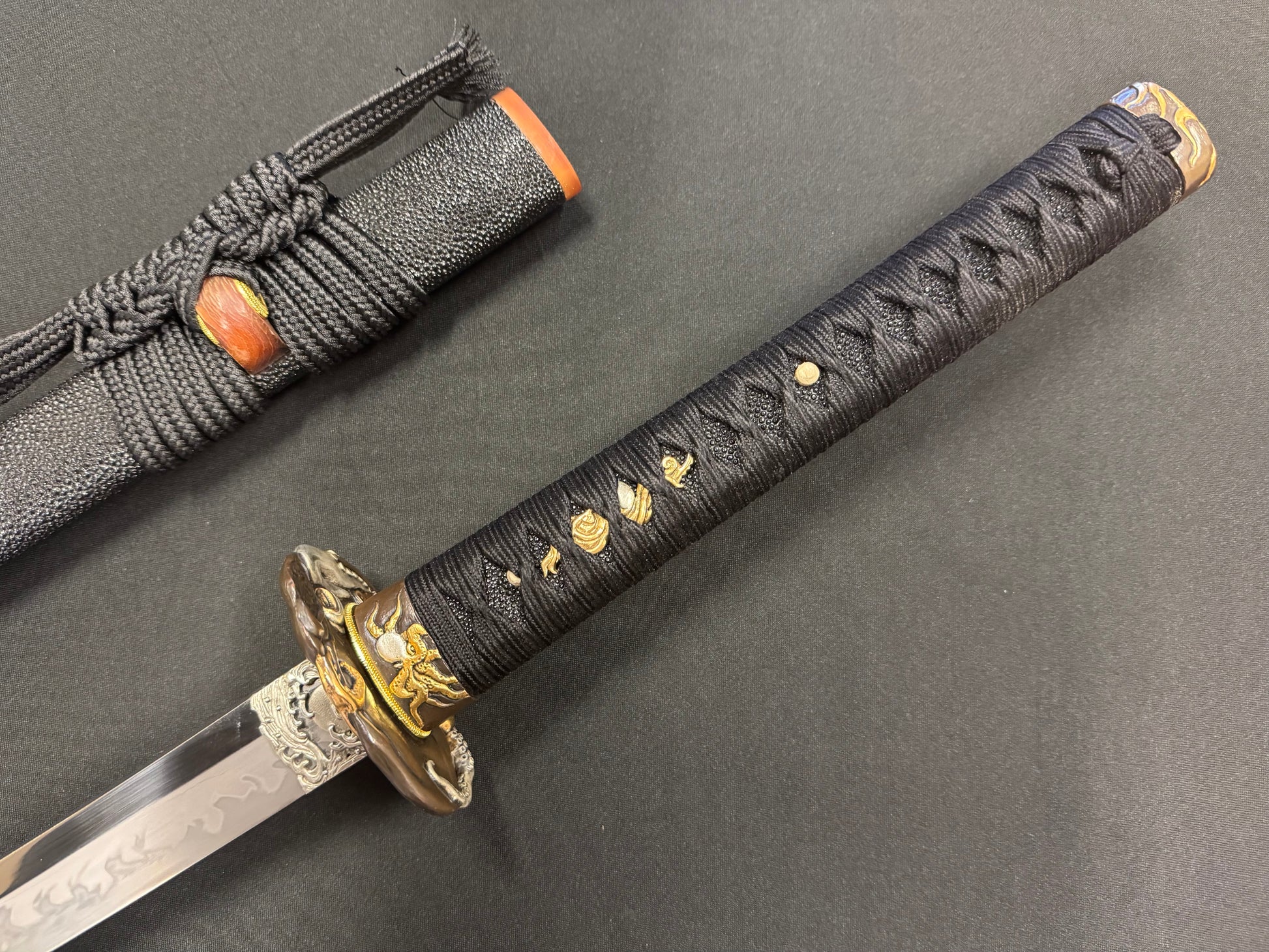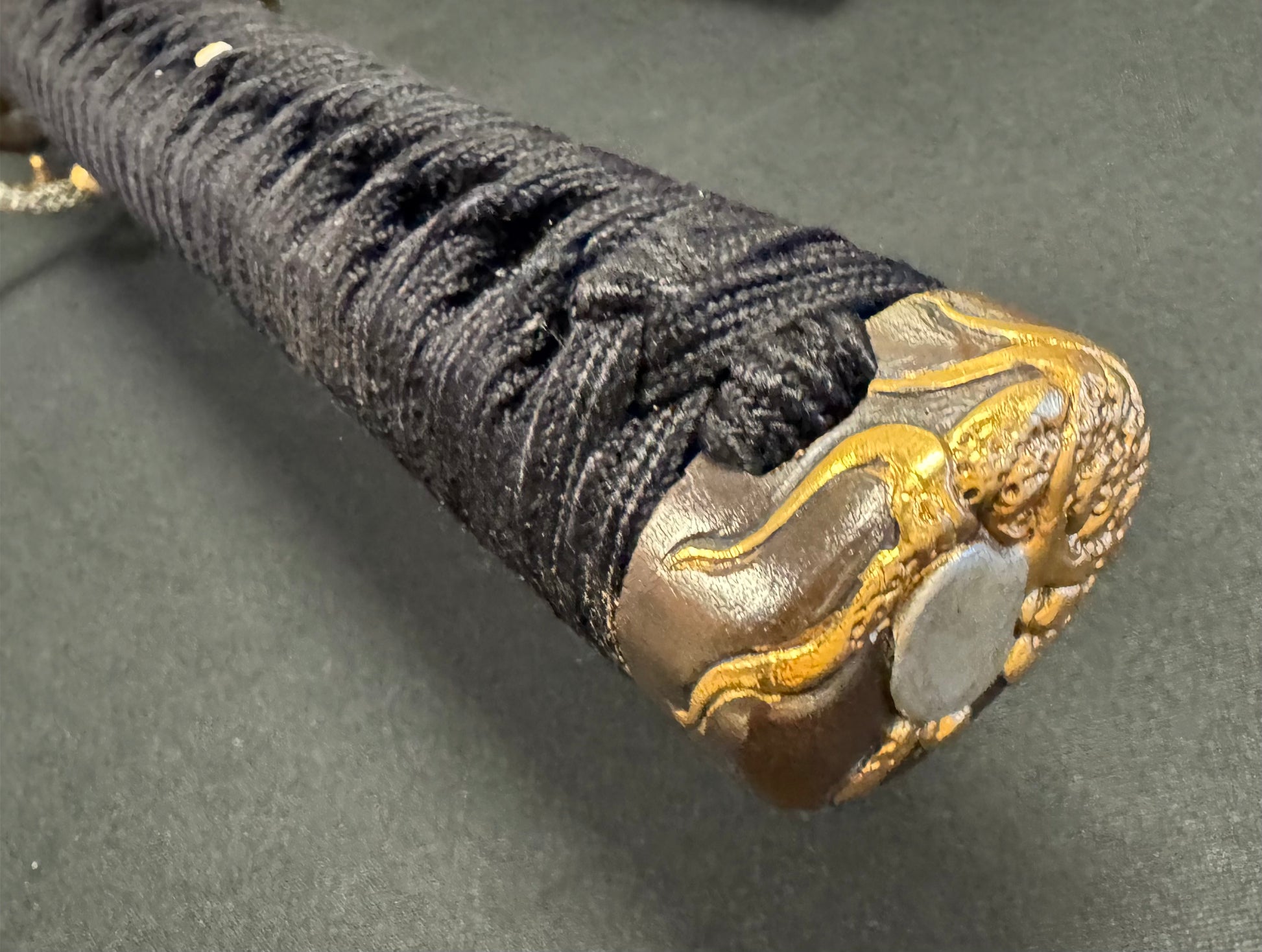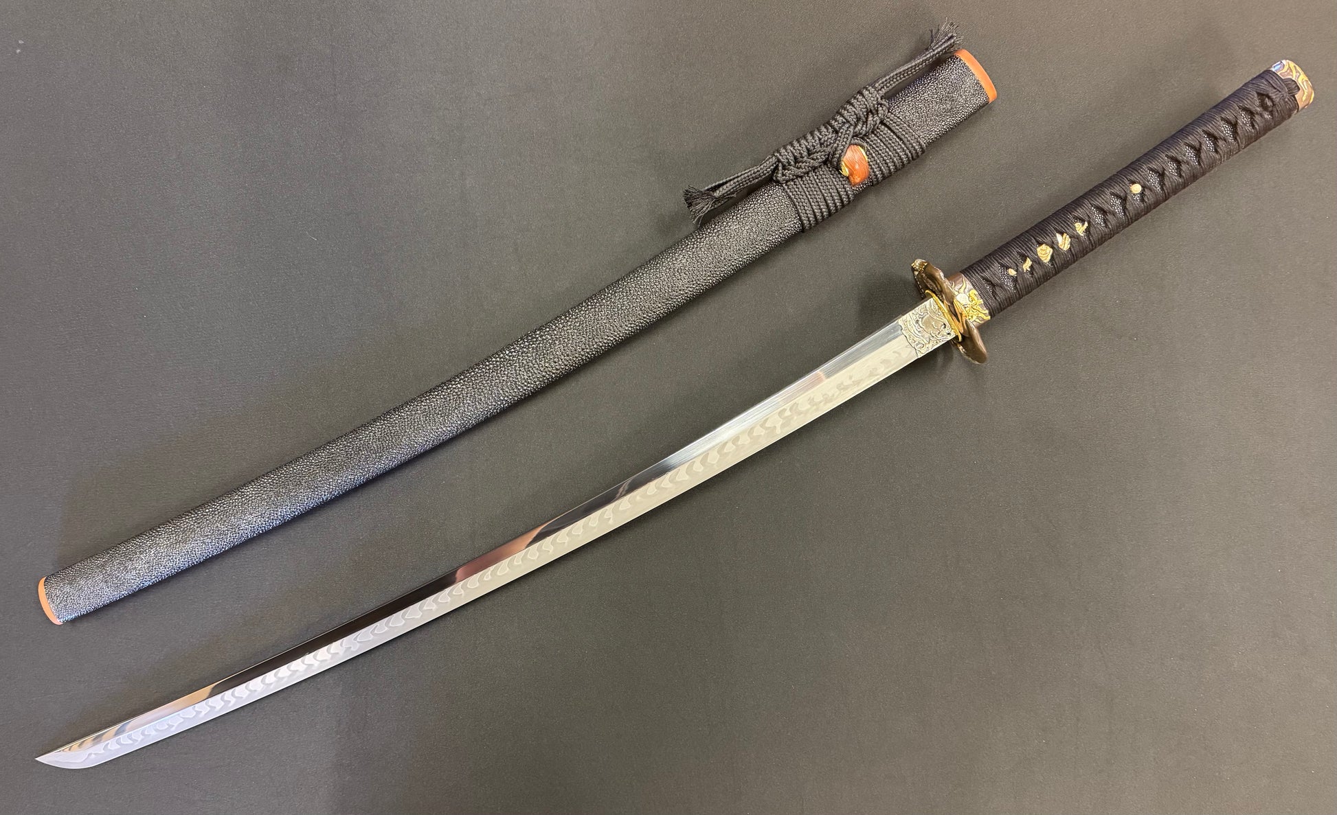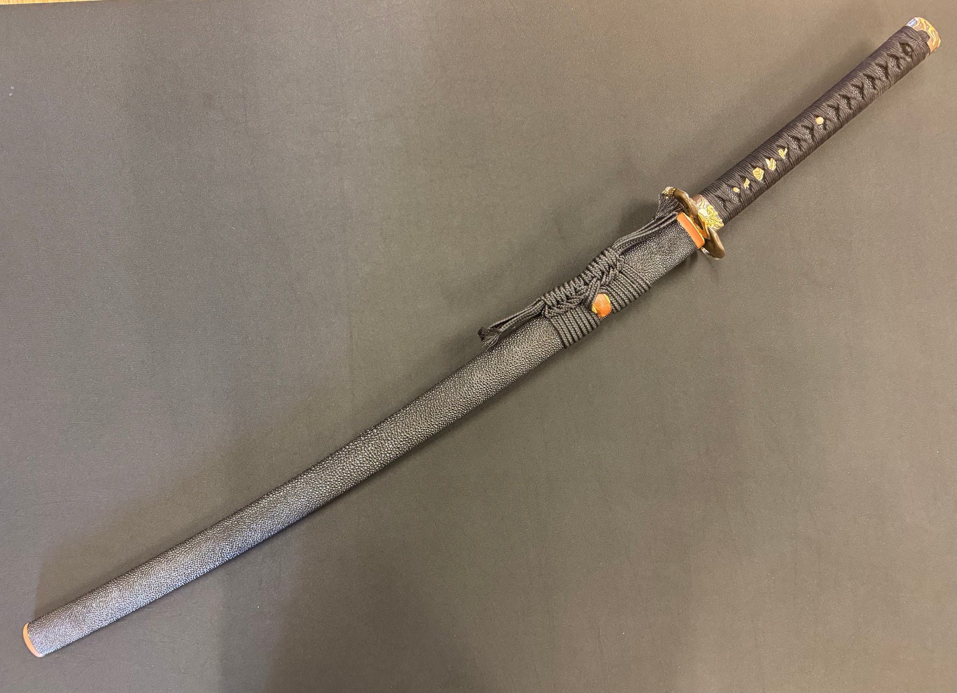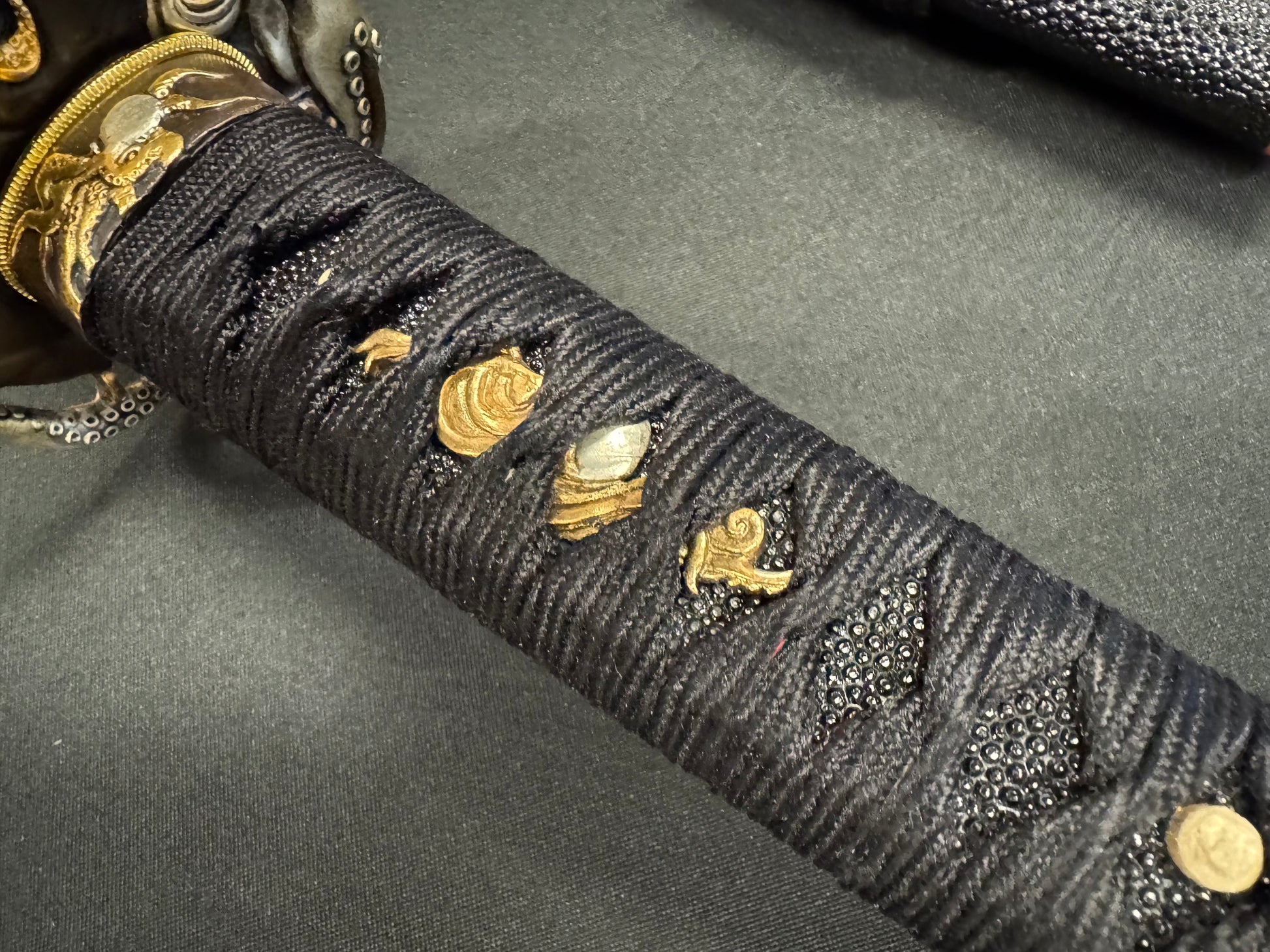 Handle material: Hardwood with genuine black rayskin, Japanese black silk Ito
