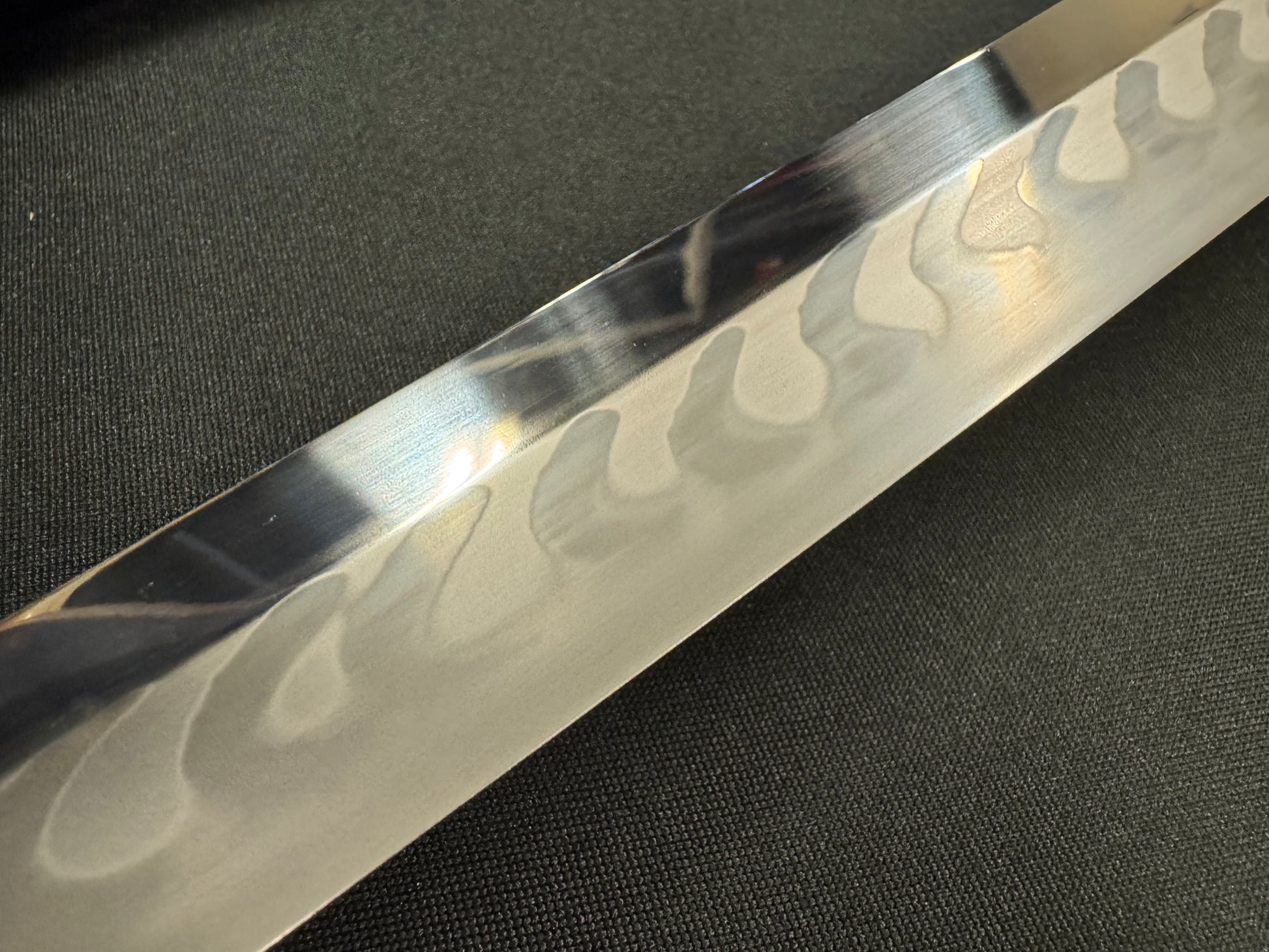 Blade Material: Clay-tempered T10 Steel with natural Hamon