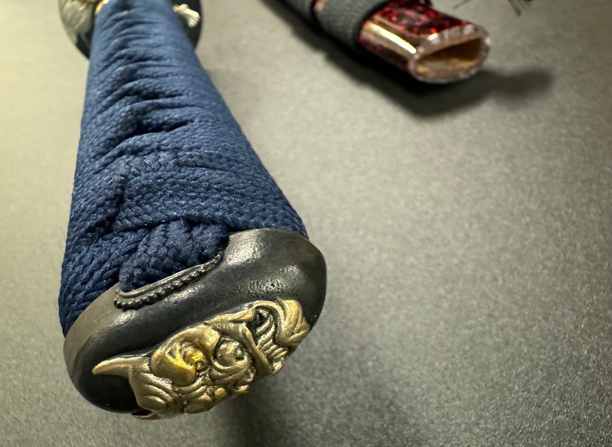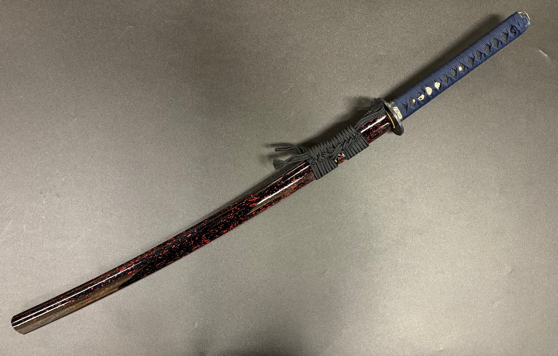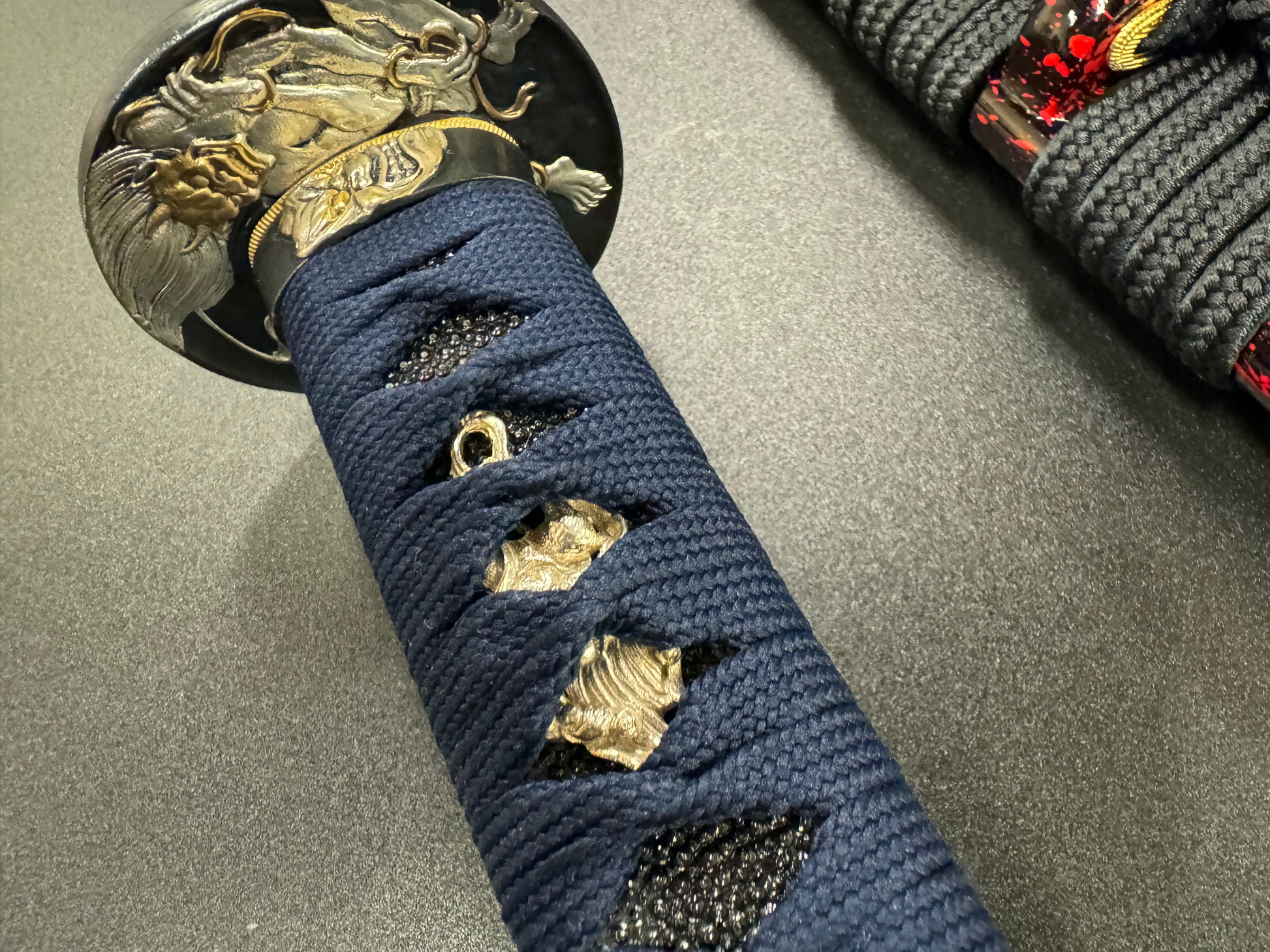 Handle material: Hardwood with genuine black rayskin, blue synthetic silk Ito