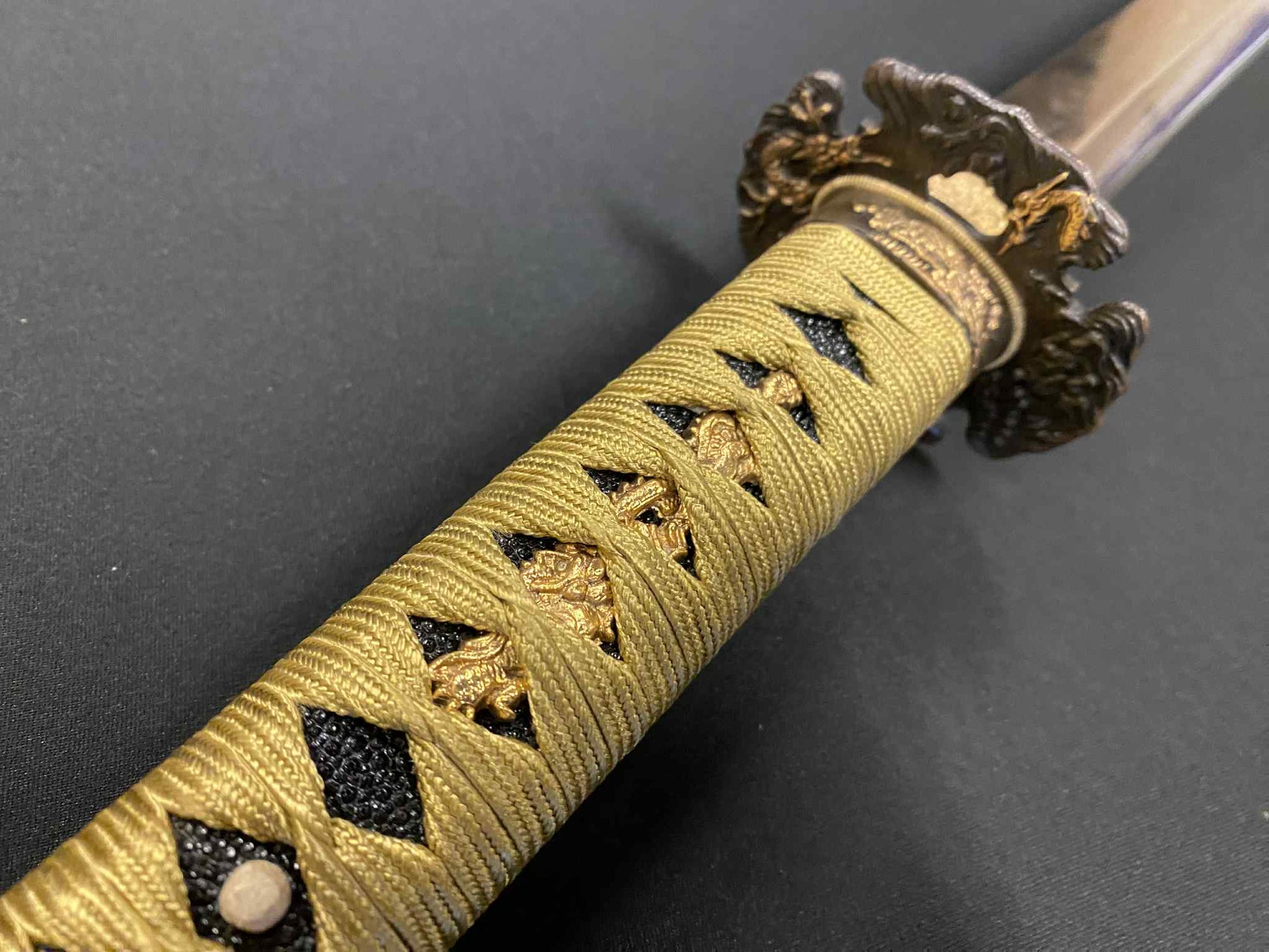 Handle material: Hardwood with genuine black rayskin, gold natural silk Ito