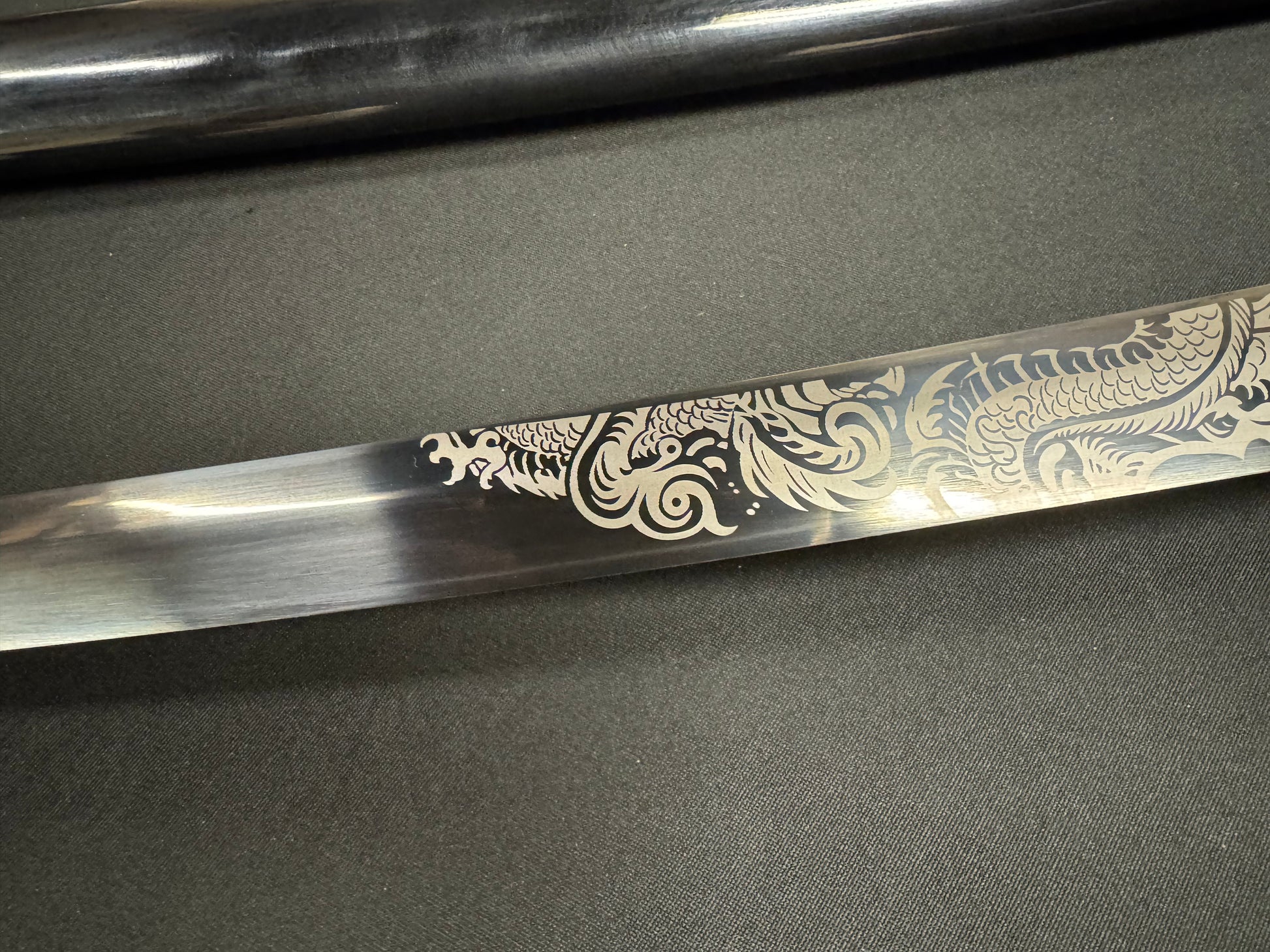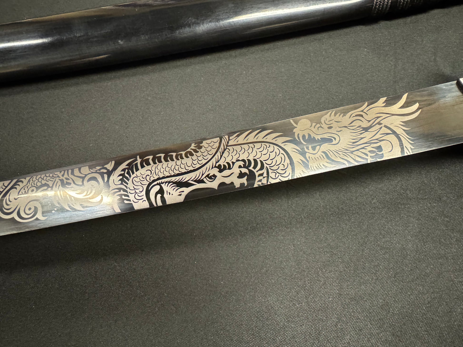 65Mn manganese spring steel blade with colored etched dragon design