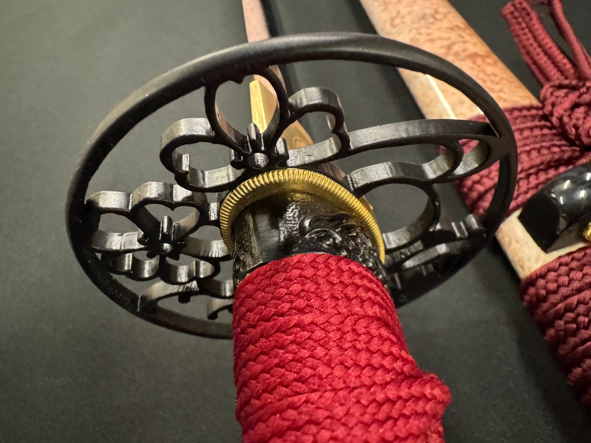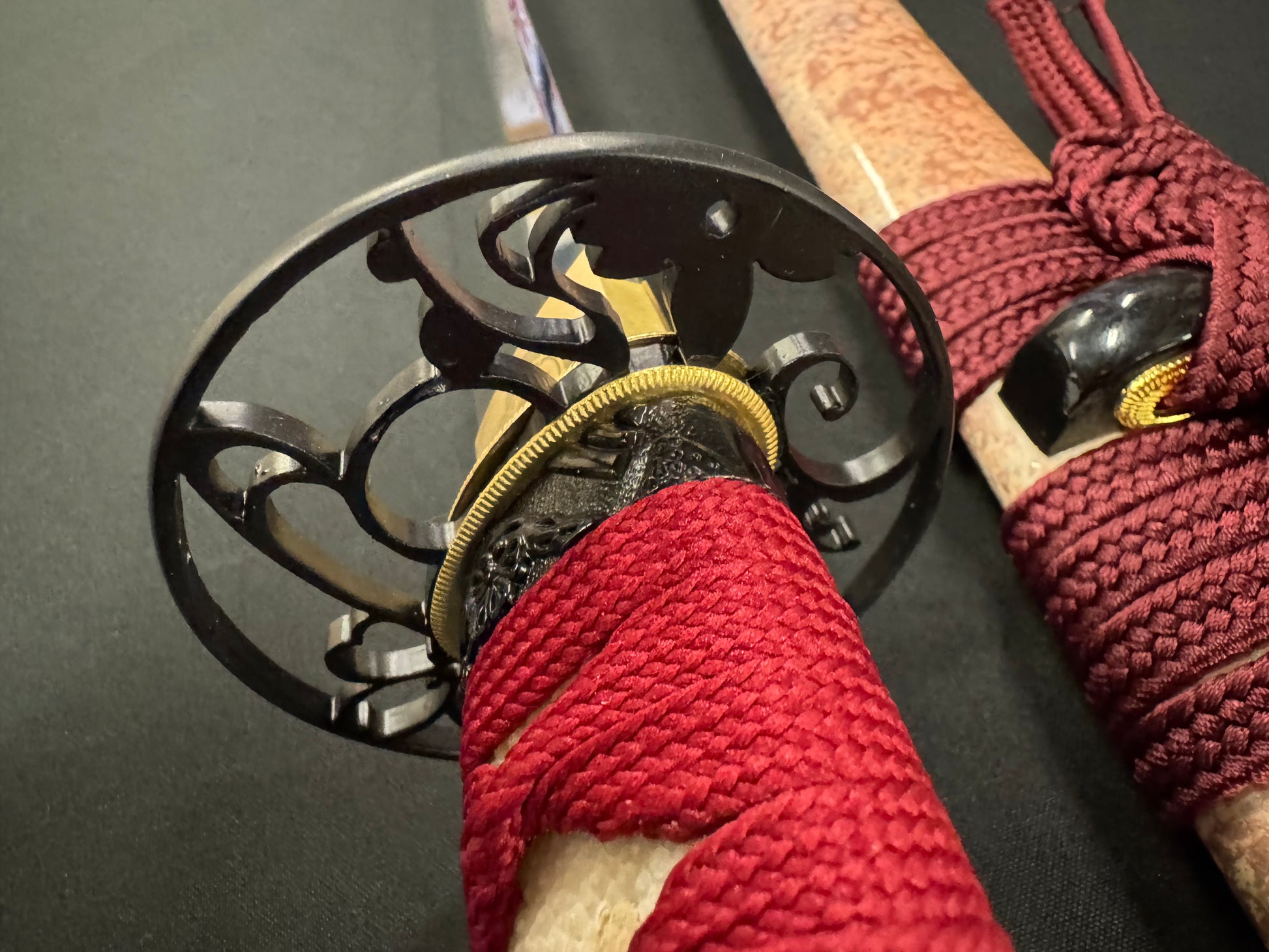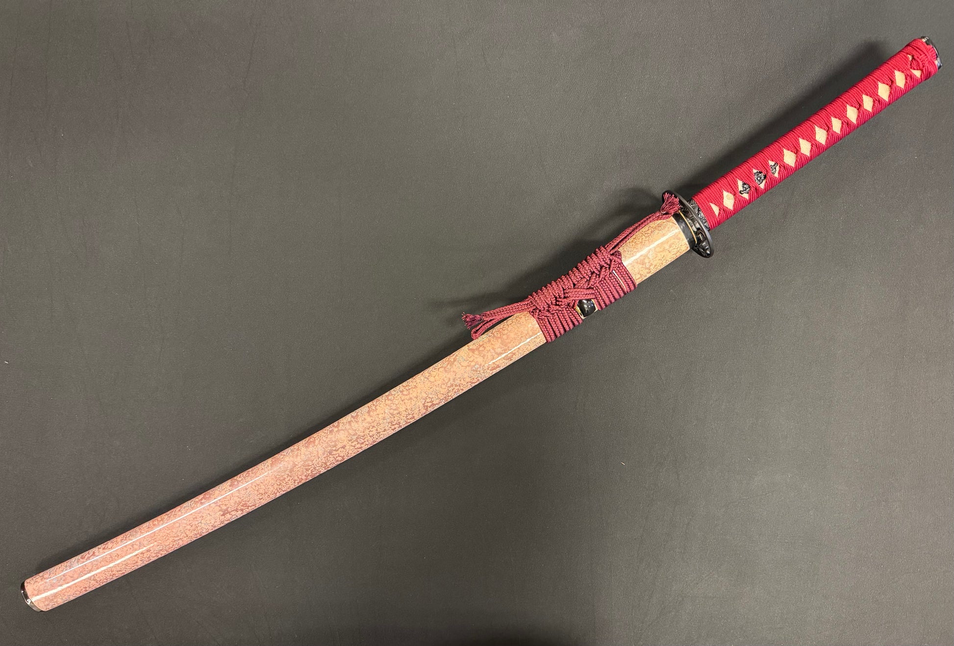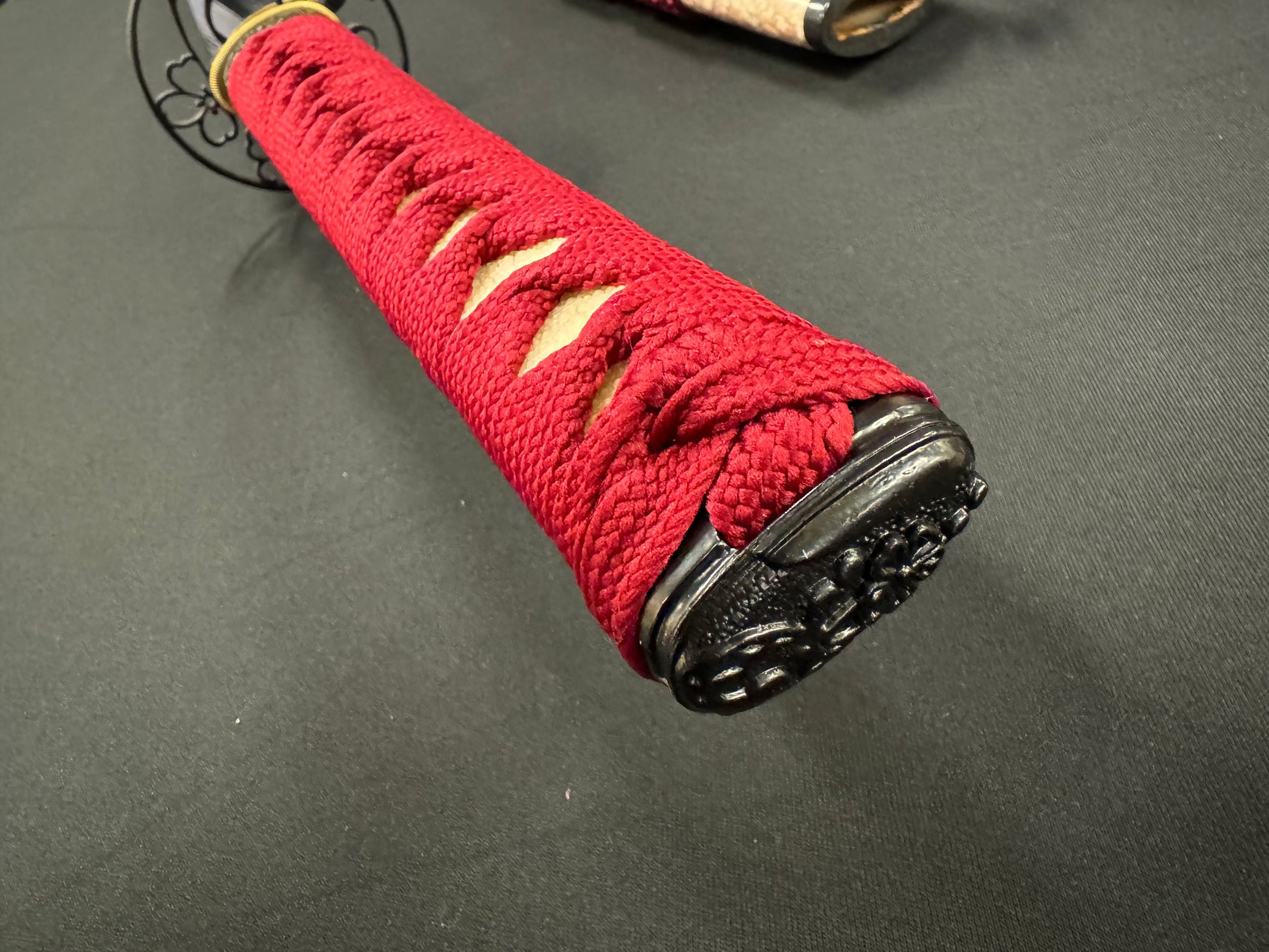Handle material: Hardwood with genuine white rayskin, red synthetic silk Ito