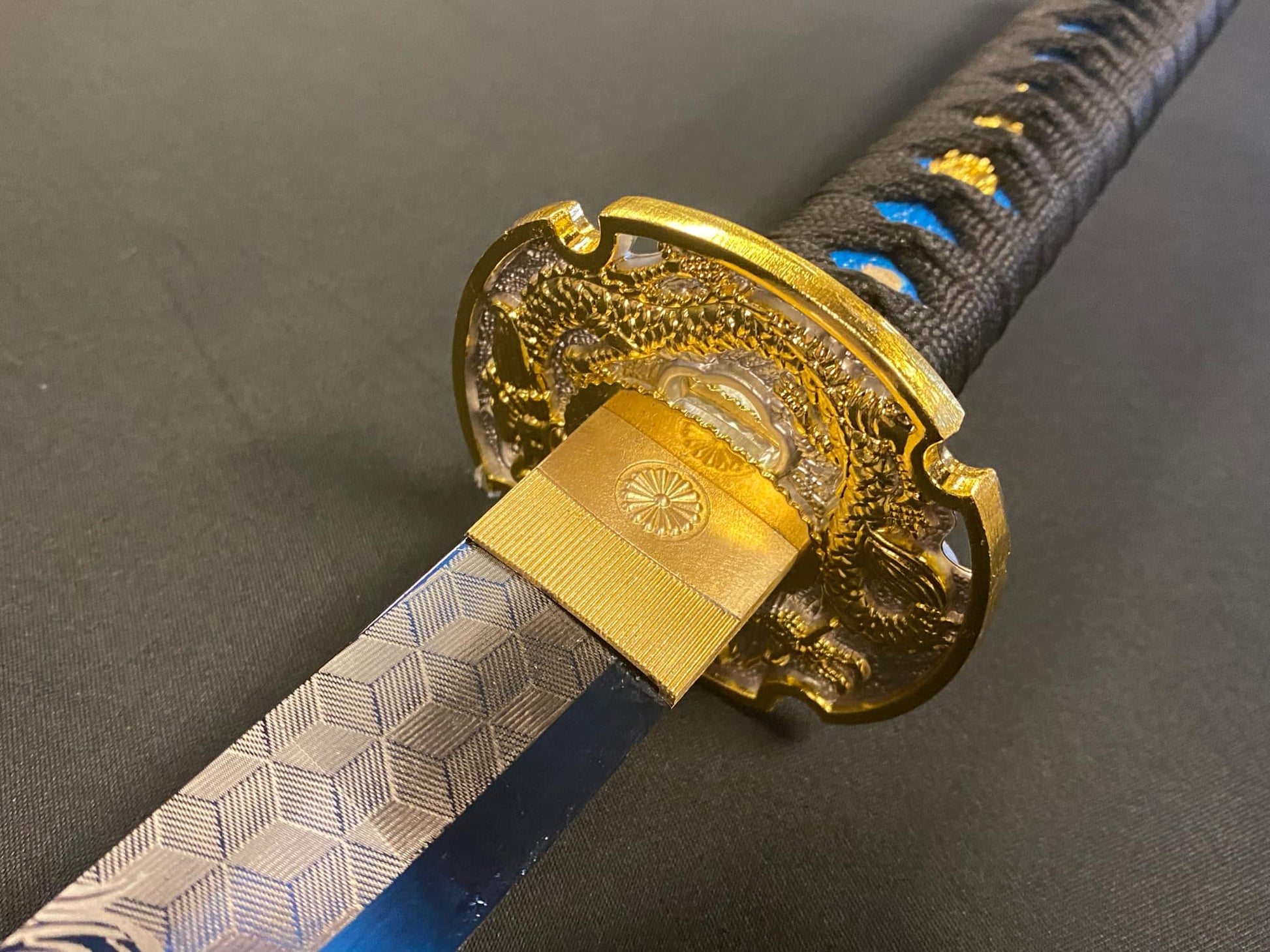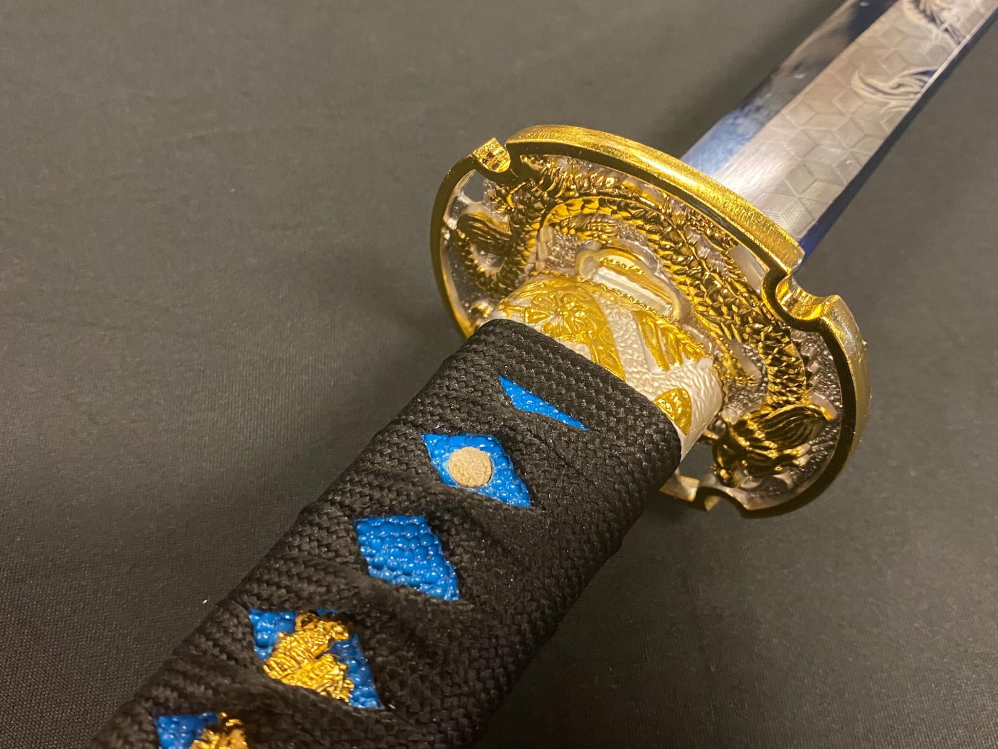 Blue synthetic silk tsukamaki